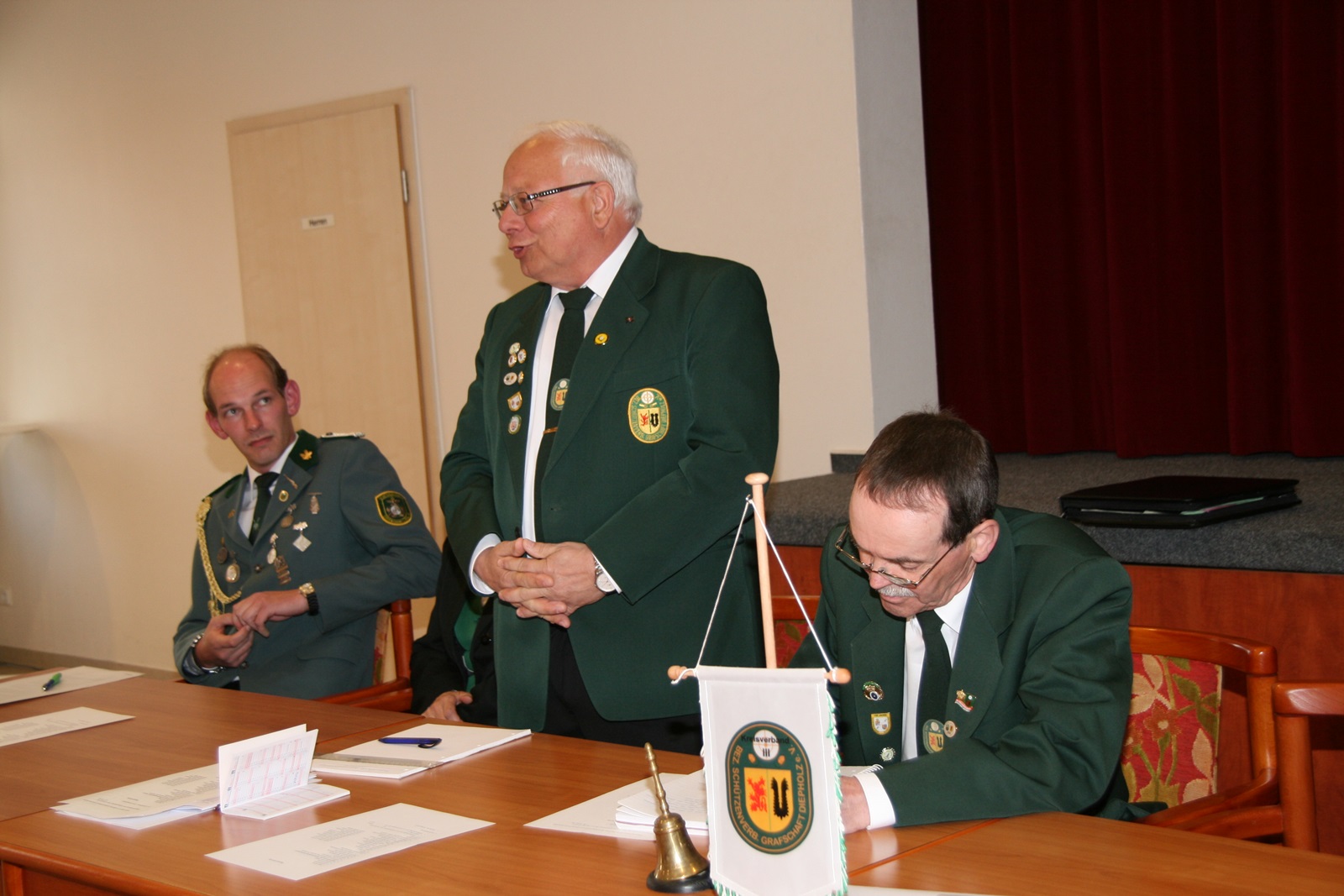 Stellvertretender Präsident Günter Herzig, Geschäftsführer Heino Labbus erging es nicht anders. Wiederwahl! Einen Stellvertreter für Geschäftsführer Heino Labbus gab es nicht, bleibt vorerst unbesetzt. Als Jugendsportleiter wurde Jonas Ehlers vom SV von 1848 Sulingen gewählt, ebenfalls einstimmig. Der Posten des Stellvertreters bleibt vorerst unbesetzt. Sabine Prochazka bleibt Damenschießsportleiterin, ihre Stellvertreterin wurde Marita Hillman vom SV von 1848 Sulingen. Schießsportleiter bei den Herren bleibt Udo Bolte, als Stellvertreter wurde aus der Versammlung Udo Jaschkowske vom SV Ehrenburg vorgeschlagen. So gab es eine geheime Stimmabgabe, Udo Jaschkowske erhielt 27 und Günther Prochazka 8 Stimmen. Dieter Lüdeke dankte Günther Prochazka für seine jahrelange ehrenamtliche Arbeit im KV-Vorstand, eine Ehrengabe erhält er nachträglich. Marianne Vallan als Pressewartin und Bärbel Müller als Stellvertreterin wurden in ihren Ämtern bestätigt.