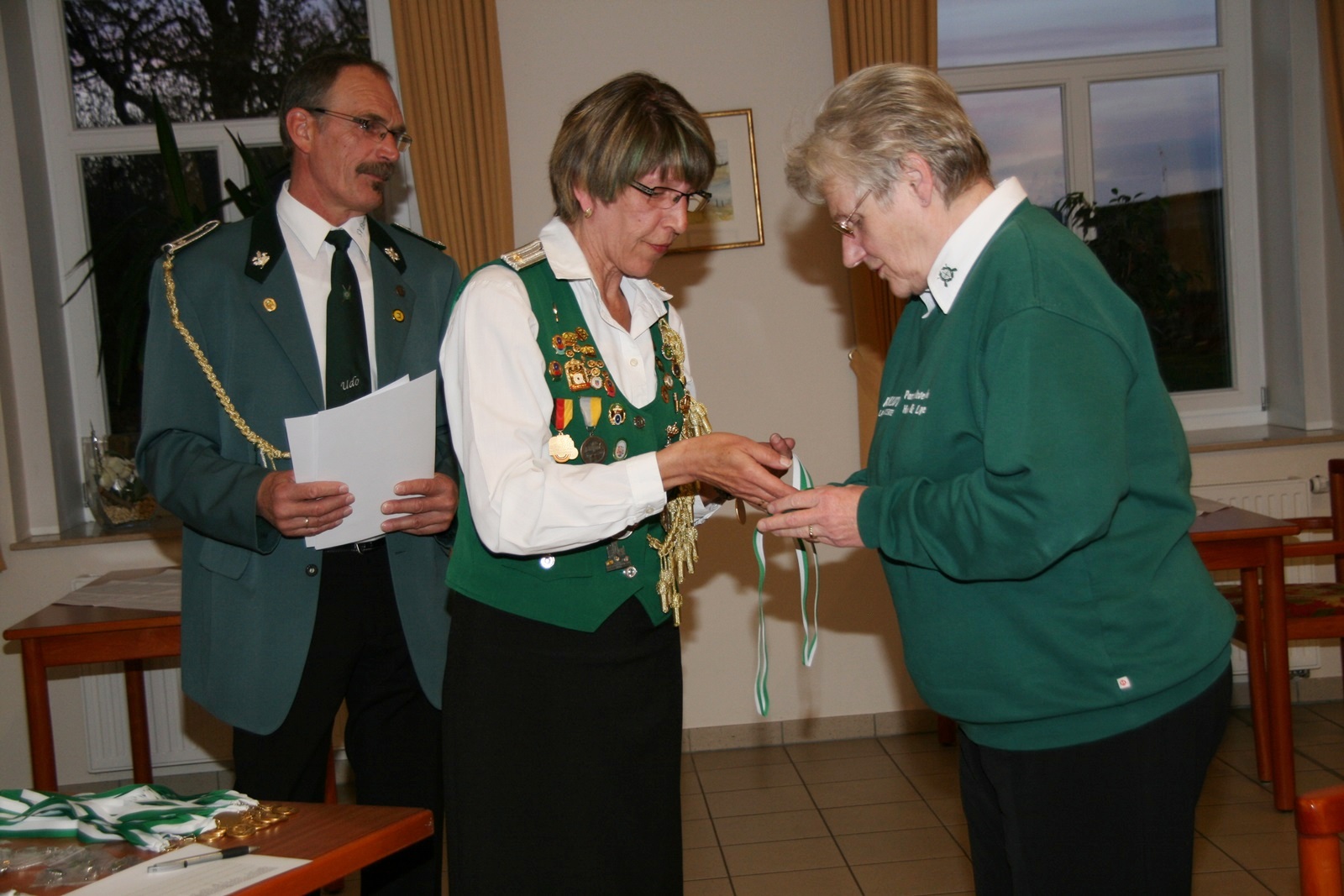 Die Siegerehrung verlief zügig, Udo Bolte verlas die Kreismeister und Rundenwettkampfgewinner, Udo Jaschkowske und Sabine Prochazka überreichten die Nadeln, Medaillen und Urkunden.