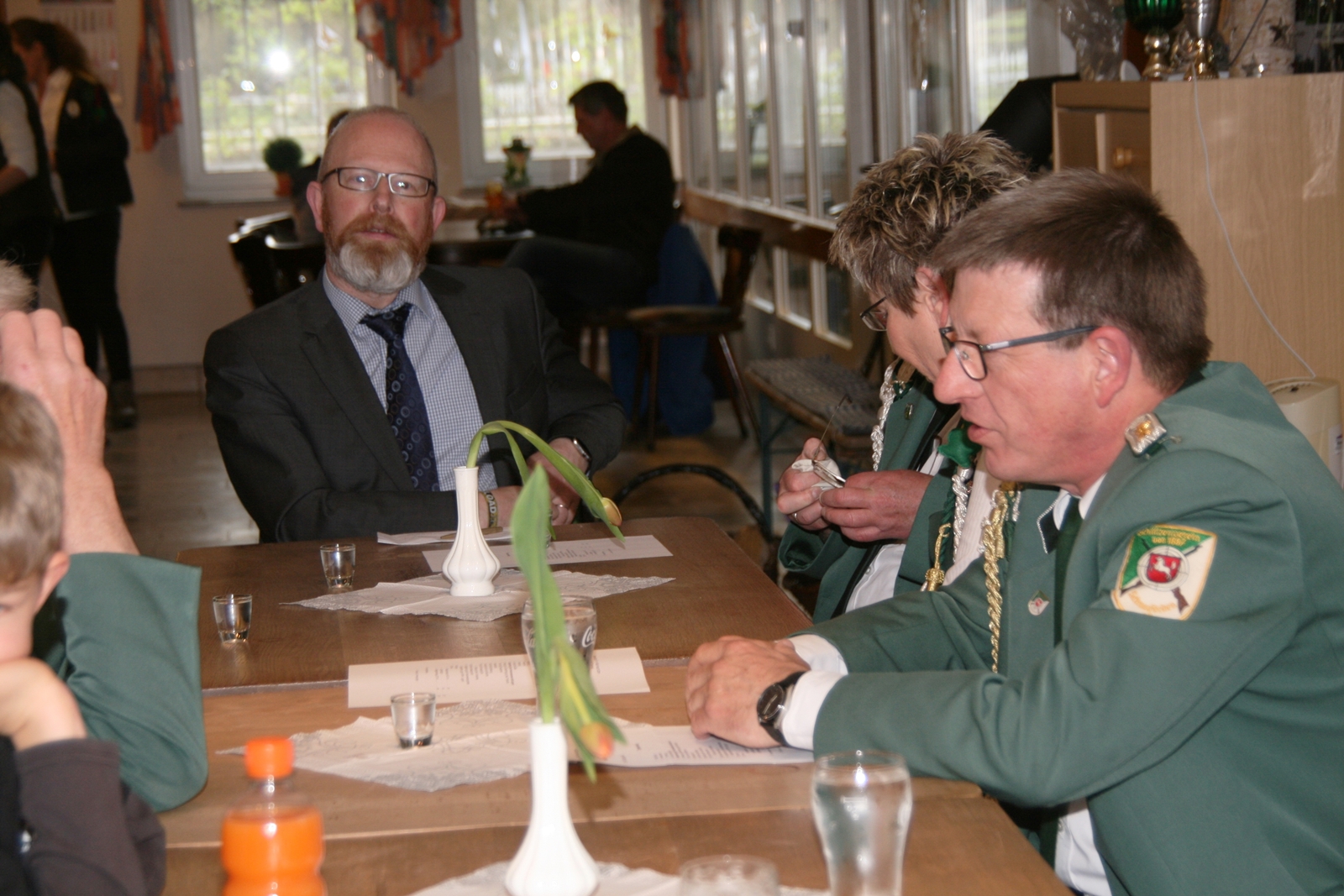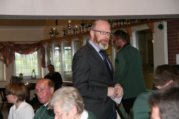 Bürgermeister Dierk Rauschkolb bedankte sich für die Einladung. Es sei für ihn ein Novum, denn er wäre heute zum ersten Mal auf einem Delegiertentag des Kreisverbandes III (KV III). Es freue ihn, dass die Versammlung hier stattfindet. Zum Schützenwesen im Allgemeinen sagte er, ein wichtiger Aspekt sei die Brauchtumspflege, die Tradition und natürlich das sportliche Schießen. Es sind Tätigkeiten, welche letztendlich dann da zu beitragen, dass die Kommunen gestärkt werden, dieses habe mit Qualität zu tun. Er wünschte der Versammlung einen guten Verlauf. Auf Präsident Lüdekes Bemerkung, dass im nächsten Jahr der Delegiertentag bei den 1848ern, also den „Ützen“ stattfindet, konterte Dirk Rauschkolb, dass er dann ja auch gut mit dem Fahrrad kommen könne.
