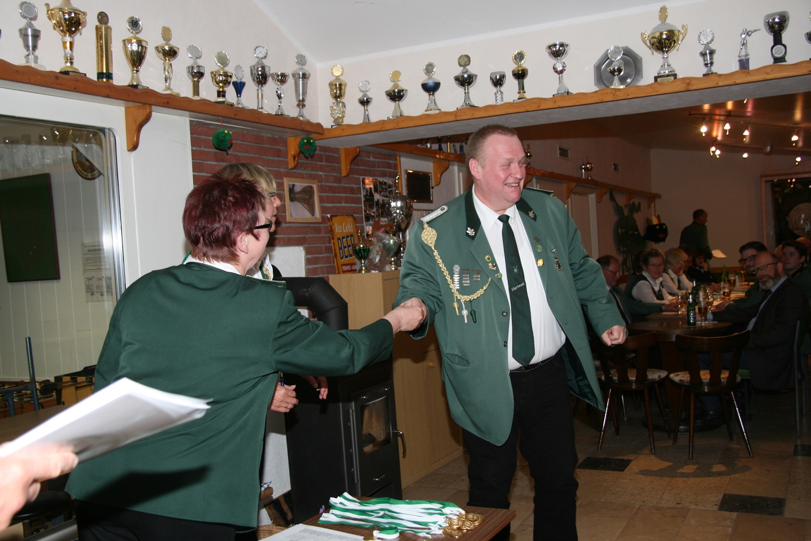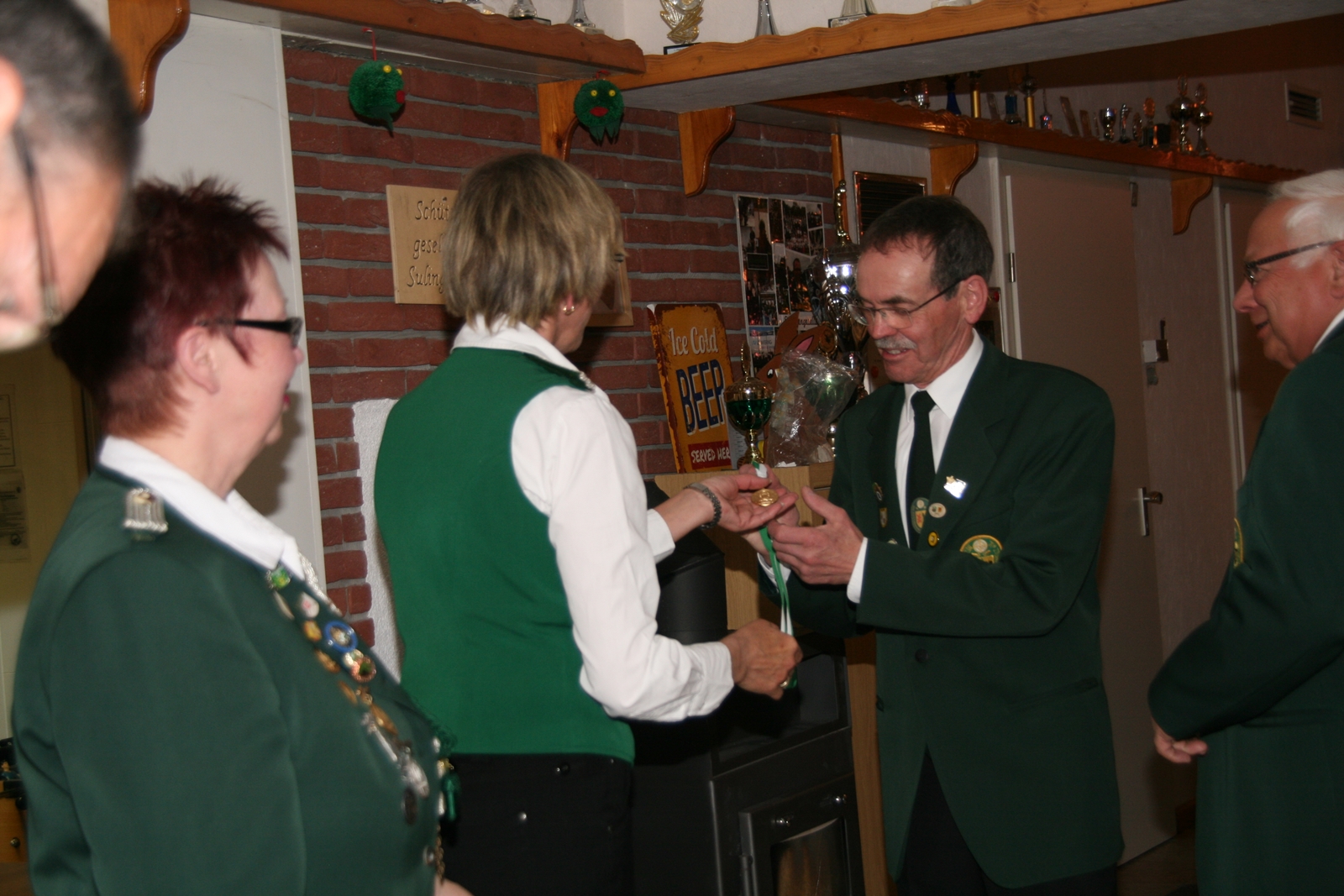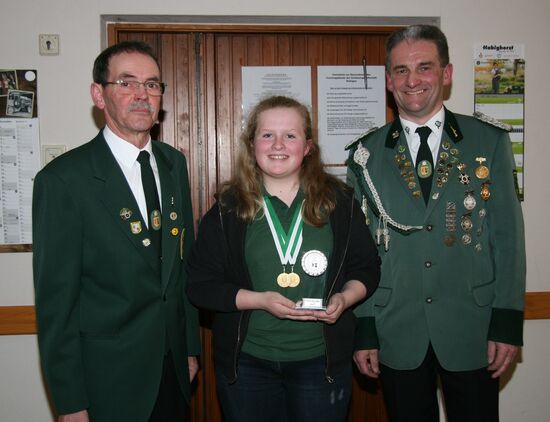 Lena Löhmann erhielt eine besondere Ehrung für ihre Teilnahme an der Deutschen Meisterschaft in München-Hochbrück. Sie erhielt von Präsident Lüdeke die Ehrengabe des Kreisverbandes, dieses wurde mit viel Beifall belohnt. Zu sagen ist, dass sie zum Pistolenkader des NWDSB gehört, sie hofft auch in diesem Jahr das Limit zur „Deutschen“ zu schaffen. Dieter Lüdeke gratulierte anschließend allen Siegern zu ihren Erfolgen.