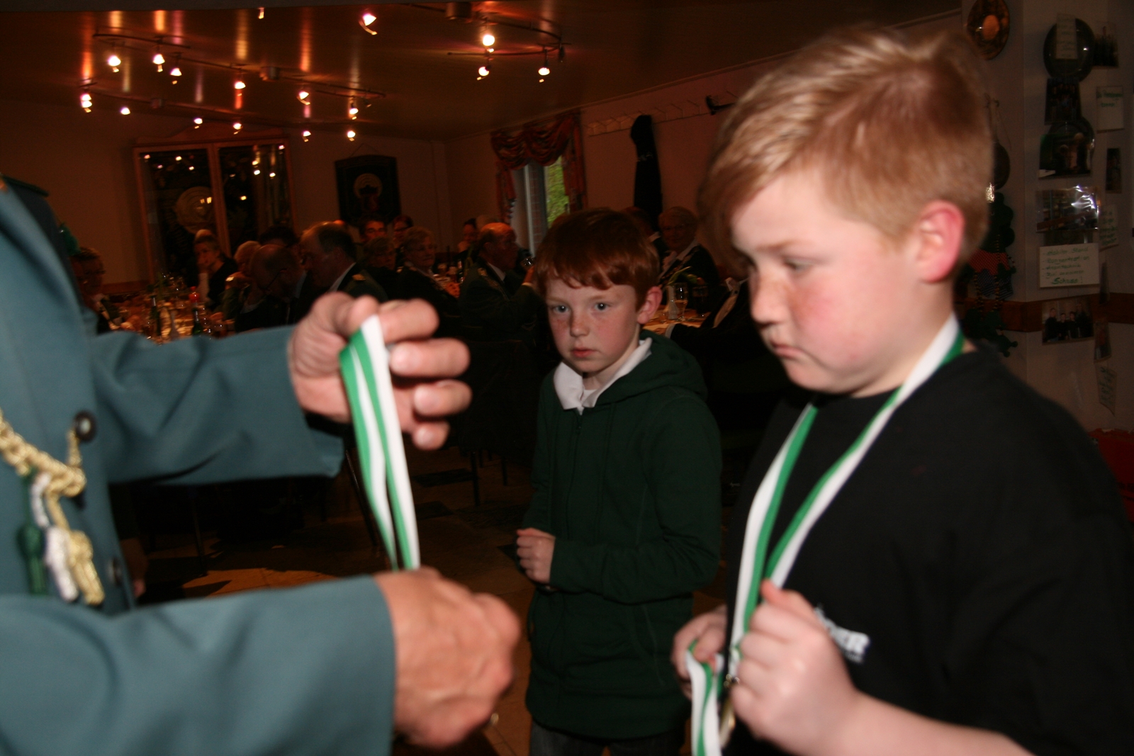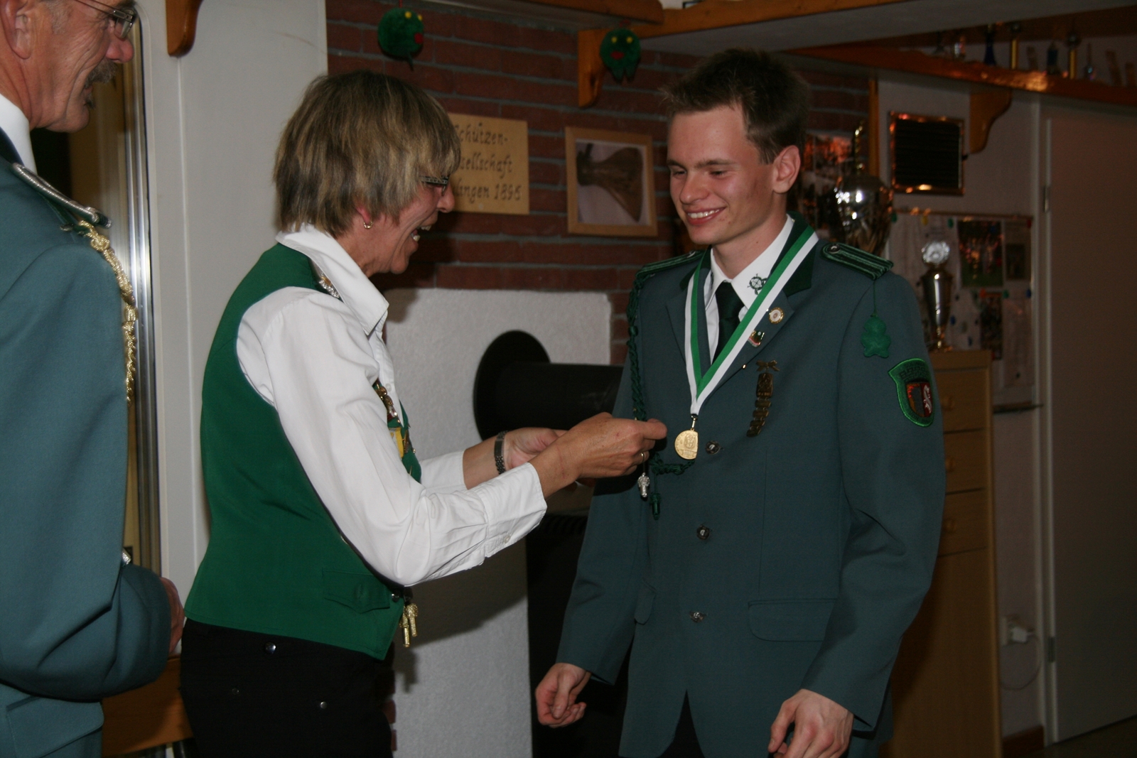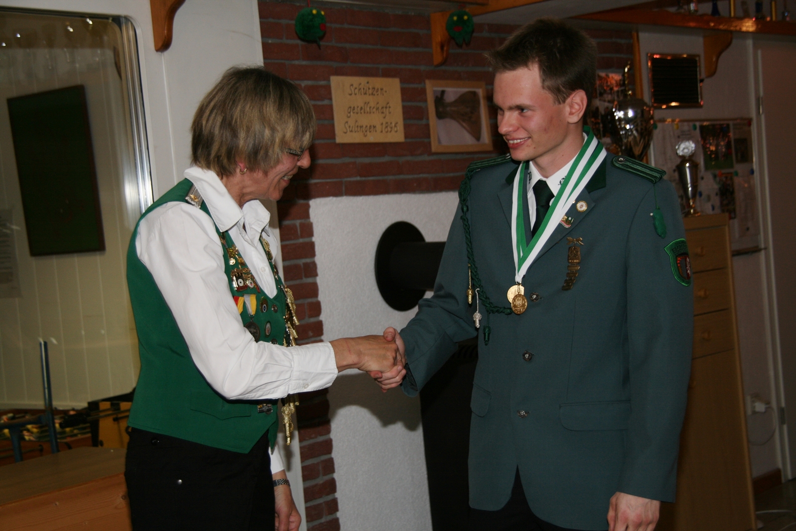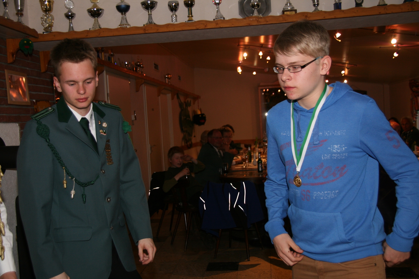 Die Siegerehrung der Jugendlichen wurde von der Sportleitung durchgeführt. Jonas Ehlers, Sabine Prochazka und Udo Jaschkowske vergaben an die von Udo Bolte verlesenen Sieger der Kreismeisterschaft und des Rundenwettkampfes Luftgewehr Auflage, Medaillen und Nadeln.