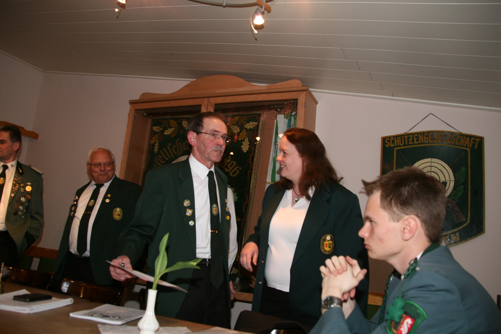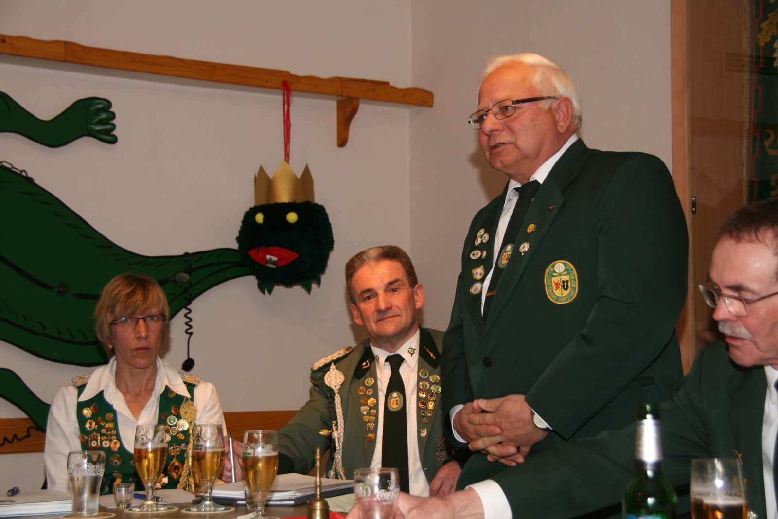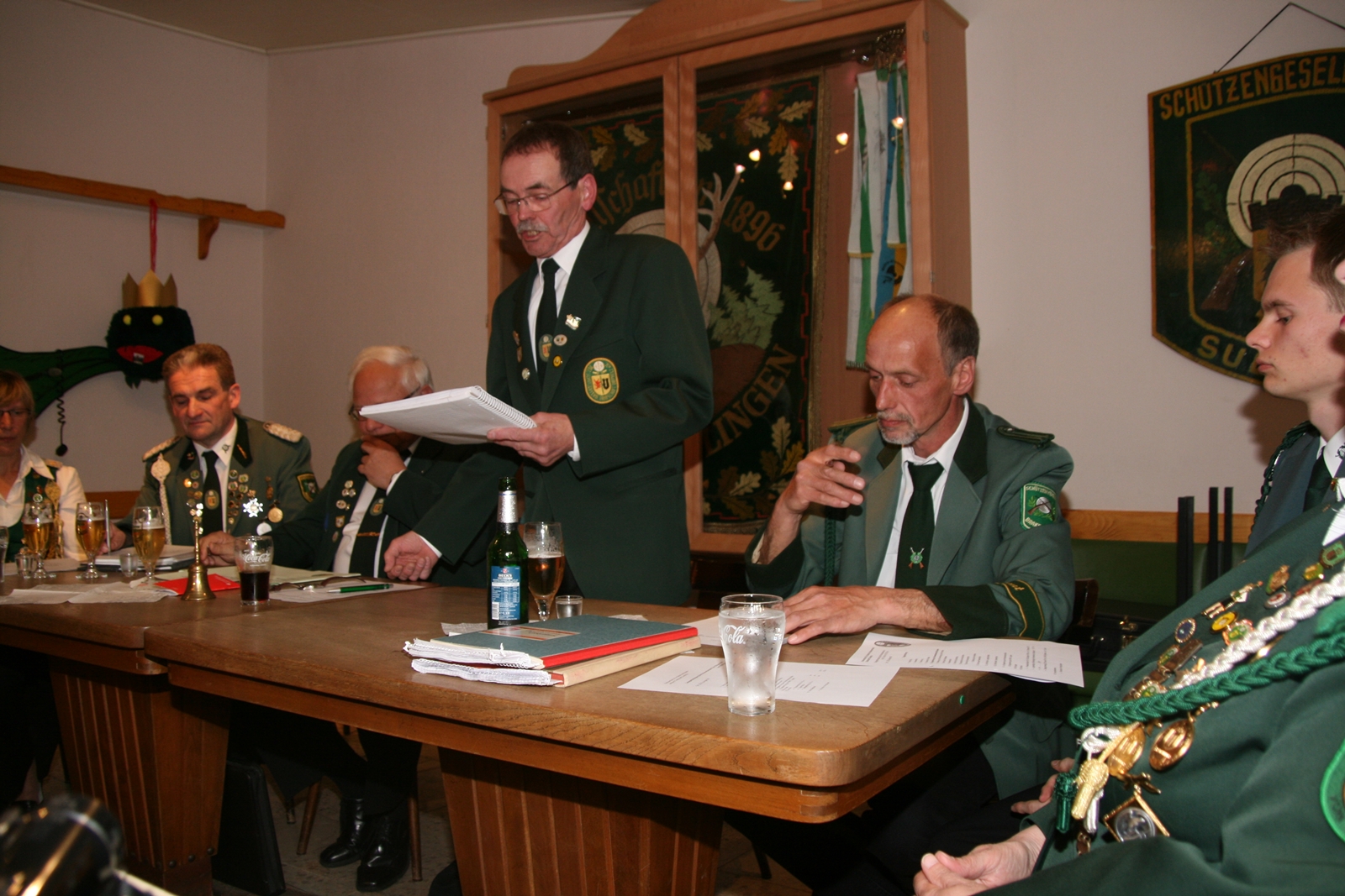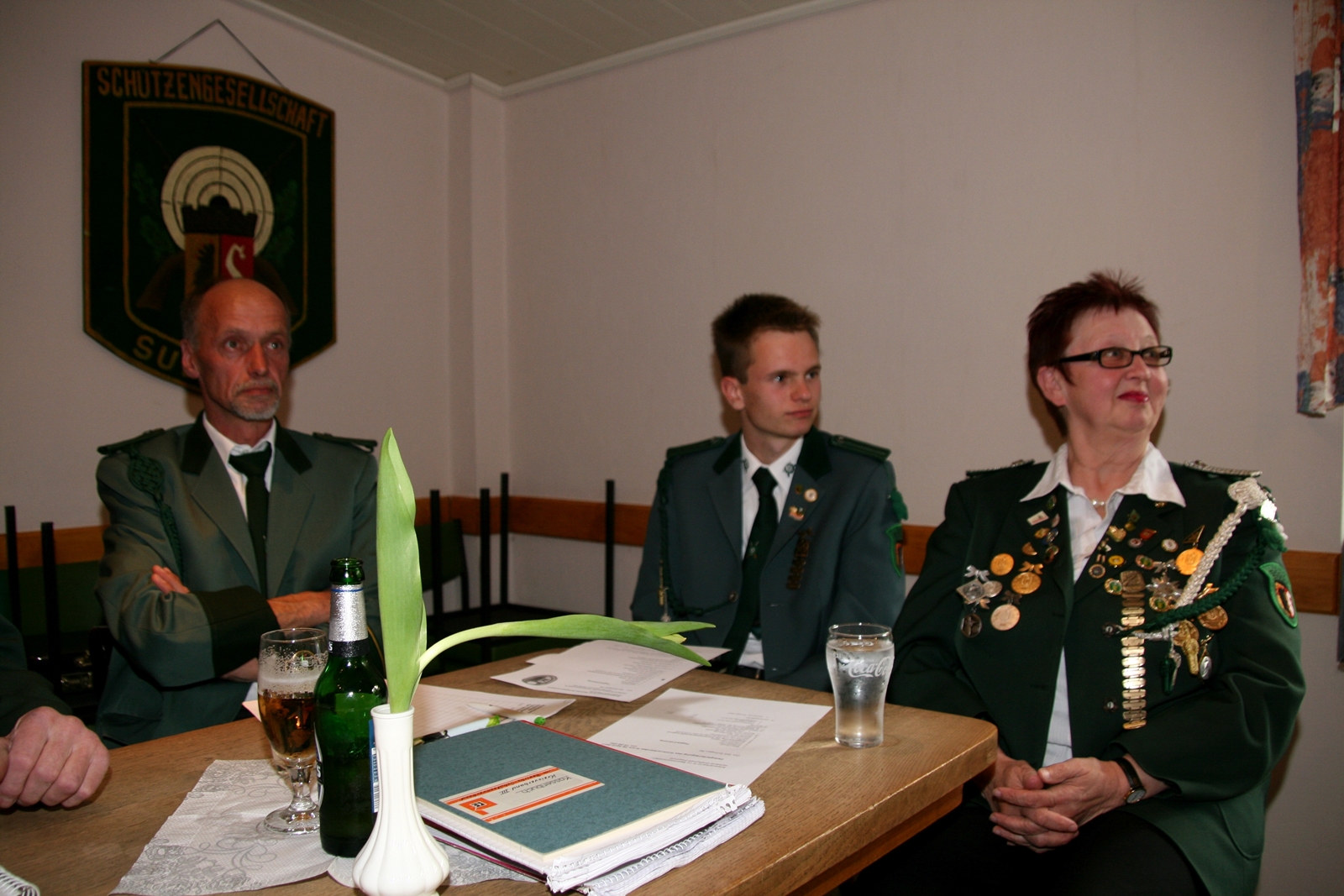 Präsident Dieter Lüdeke wies in seinem Bericht darauf hin, dass es ein ruhiges Jahr war, keine außergewöhnlichen Vorkommnisse. Beim Kreisverbandskönigsschießen auf dem Schwafördener Stand - jetzt mit Computertechnik – haben wir den König/in ausgeschossen. Gisela Schwenn vom SV Blockwinkel konnte sich durchsetzen. Beim Jugendtag in Blockwinkel wurde Paul Stein, ebenfalls vom SV Blockwinkel Kreisjugendkönig und Erik Heitmann vom SV von 1848 Sulingen Kreiskinderkönig.