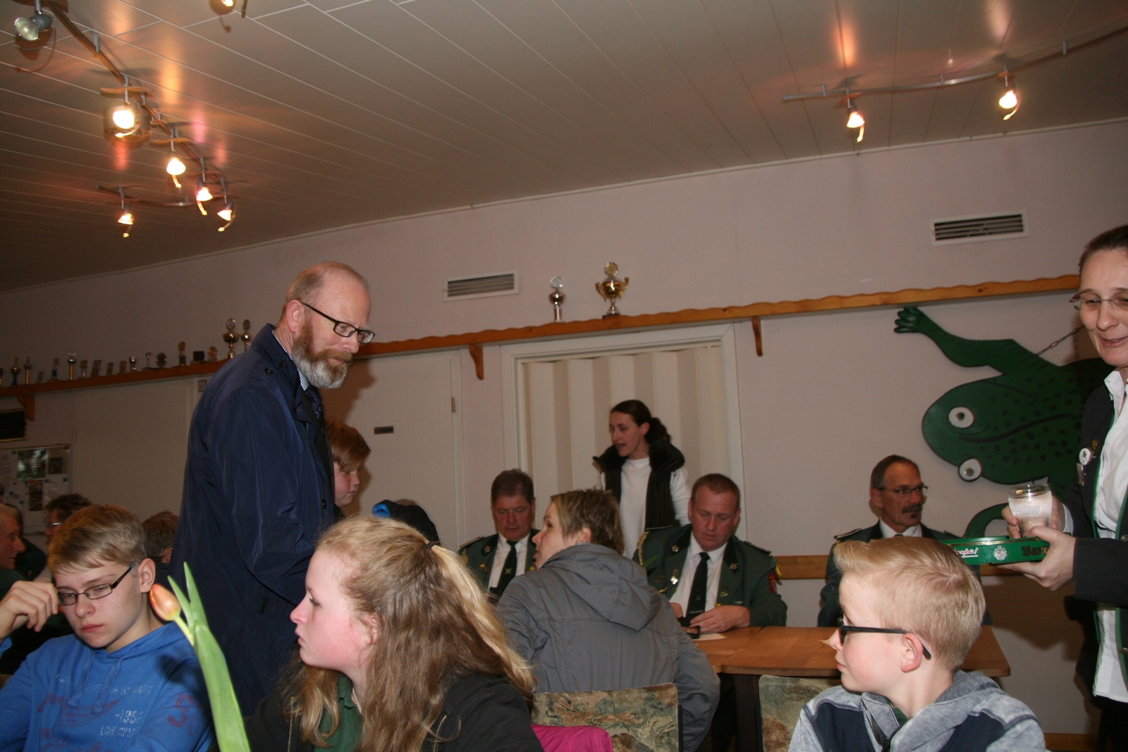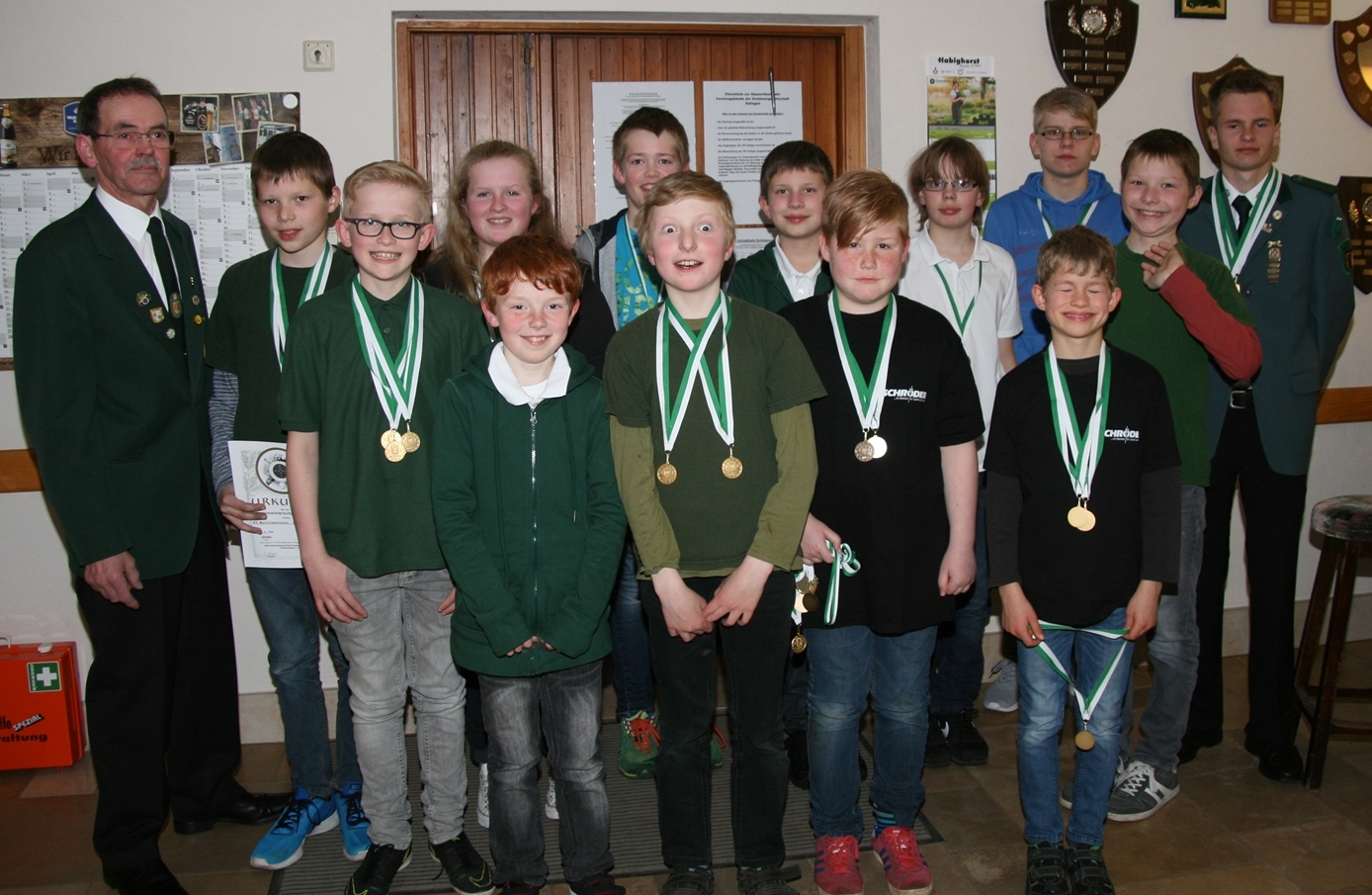 Sein Willkommensgruß galt Günter Herzig als Vizepräsident des Bezirks-Schützenverbandes Grafschaft Diepholz, Andreas Albers als Präsident des ausrichtenden Vereins mit seinem „Thekenteam“, Bezirksjugendleiterin Britta Löhmann, Kreisverbandskinderkönig Erik Heitmann vom Schützenverein von 1848 Sulingen, Dirk Rauschkolb, Bürgermeister der Stadt Sulingen, Pressewartin Marianne Vallan sowie alle anwesenden Majestäten. Ganz besonders begrüßte er aber die Kinder und Jugendlichen, die schon gespannt auf die Siegerehrung warteten.