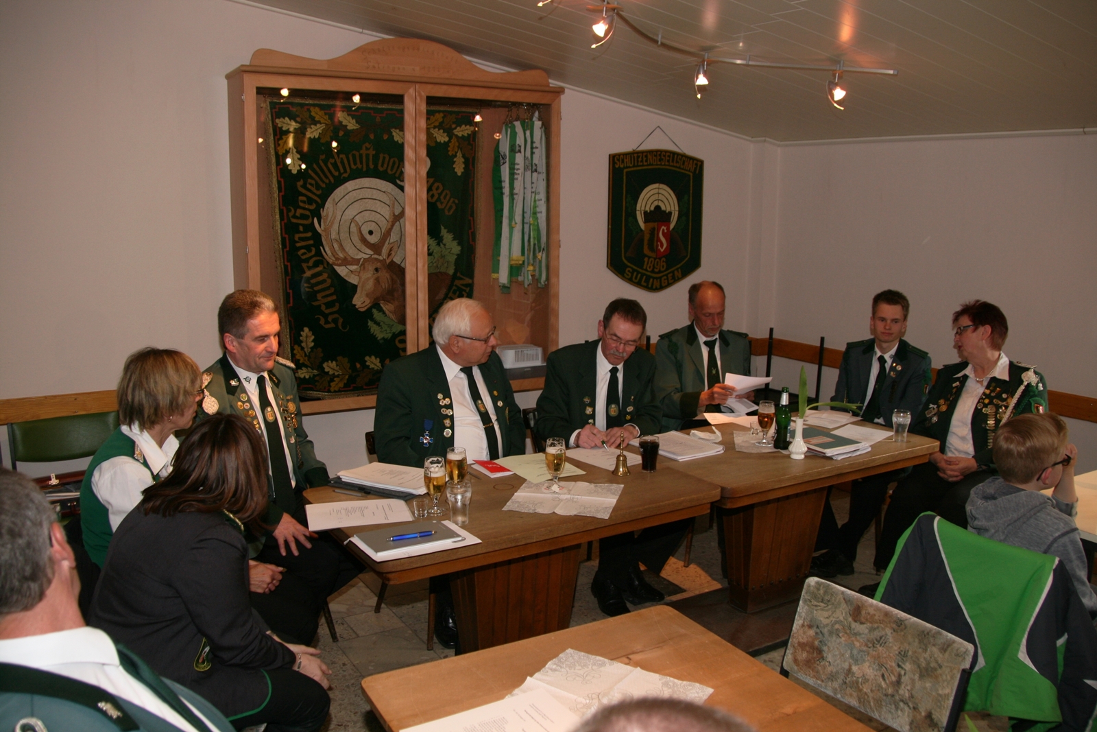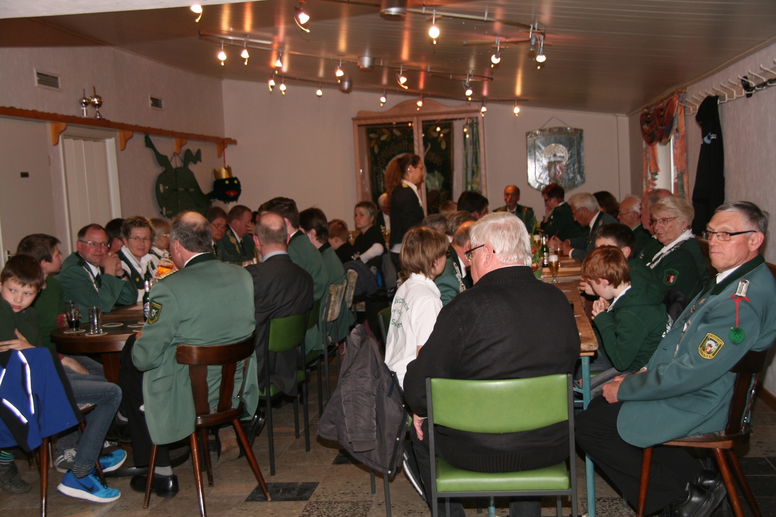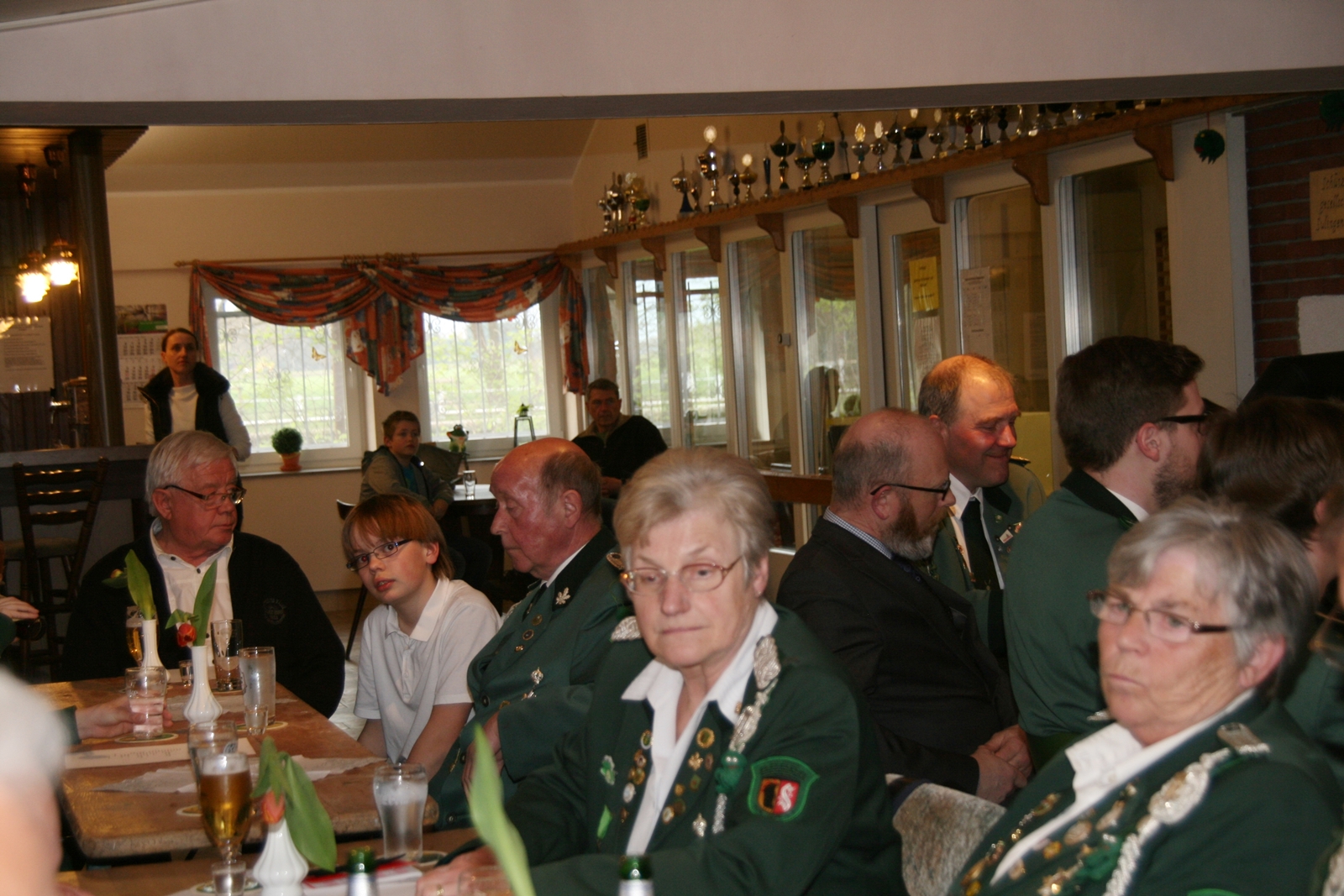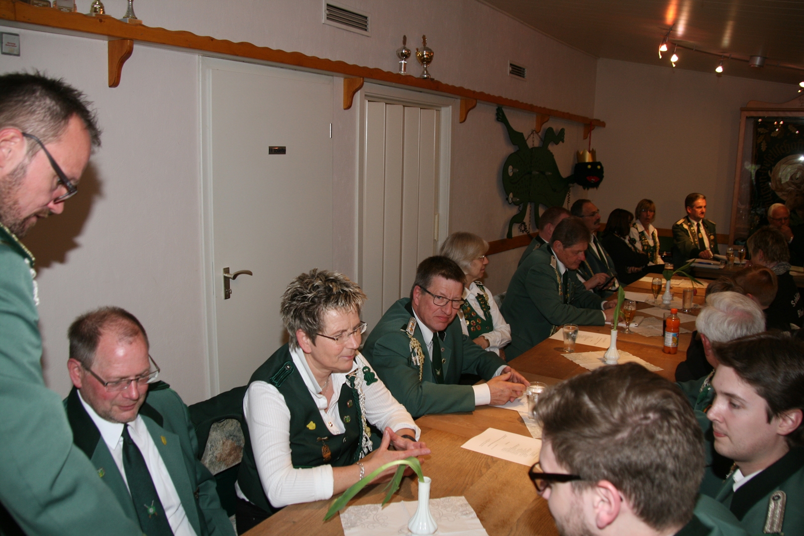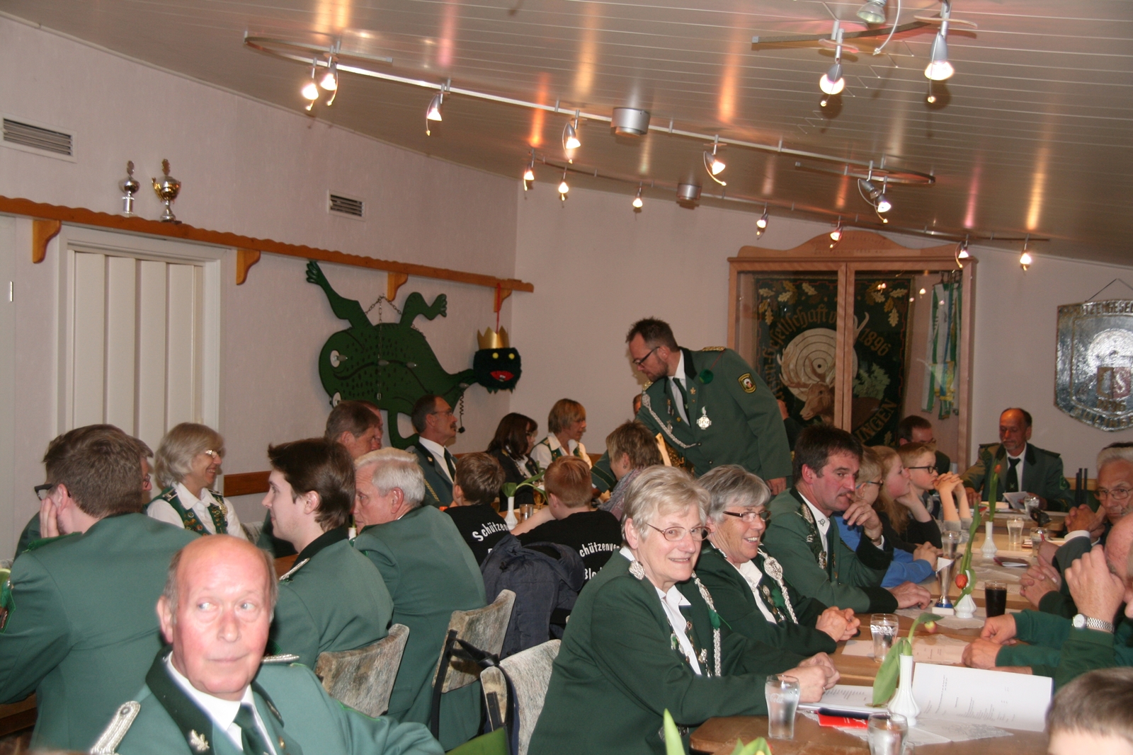 Zur Totenehrung hatten sich alle von den Plätzen erhoben, sie gedachten mit Präsident Lüdeke der im vergangenen Jahr verstorbenen Schützenschwestern und Schützenbrüder, man werde sie immer in guter Erinnerung behalten.