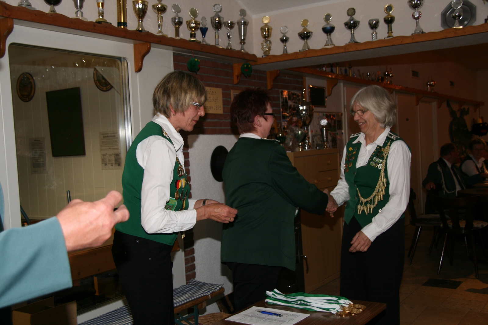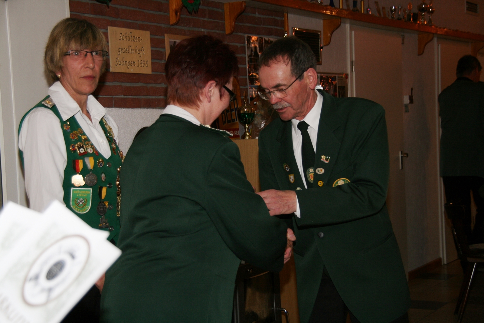 Damensportleiterin Sabine Prochazka sprach über verschiedene Veranstaltungen des vergangenen Jahres, an denen die Damen des Kreisverbandes teilgenommen haben. Marita Hillmann vom SV Schützenverein Sulingen 1848 hat am Endkampf des Landeskönigsschießen in Heidberg-Falkenberg teilgenommen. Bei den Landesverbandsmeisterschaften LG-Auflage, so wie KK-Auflage war man auch vertreten. Es gab zum Teil gute Platzierungen. Am Kleinkalber Liegendkampf in Vechta nahmen vier Damen aus unserem KV teil. - Sabine Prochazka – Karin Husmann, Ursel Vallan und Marianne Vallan haben überraschend den 3. Platz in der Mannschaftwertung belegt. Auch bei der Deutschen Meisterschaft waren unsere Damen mit vertreten. Marianne Vallan war in Dortmund am Start, in der Disziplin LG-Auflage. Rosemarie Wowries startete in Hannover, in der Disziplin KK-Auflage, es wurde am Ende ein 14 Platz. Das Bezirks-Damenvergleichsschießen fand in Drebber statt: "Wie schon im Jahr zuvor, haben wir die „Rote Laterne“ bekommen, aber dieses Jahr greifen wir erneut an, vielleicht können wir ja den Heimvorteil nutzen". - Sabine Prochazka bedankte sich bei den Damen, die sie tatkräftig unterstützt haben -