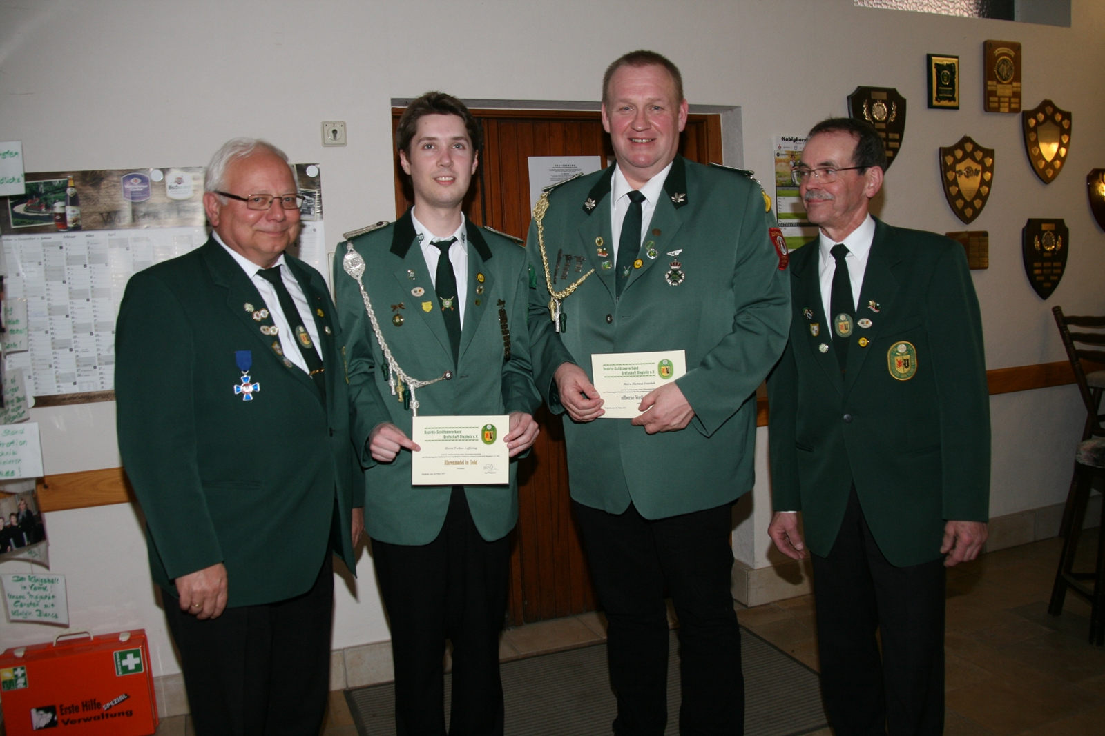 Weitere Ehrungen gab es vom Bezirksvizepräsdenten Günter Herzig, für am Bezirksdelegiertentag nicht anwesende Schützen. Die Ehrennadel des Bezirks in Gold, erhielt Torben Leffering vom SV von 1848 Sulingen, über die Silberne Verdienstnadel des Bezirks freute sich Hartmut Osterloh vom SV Ehrenburg.