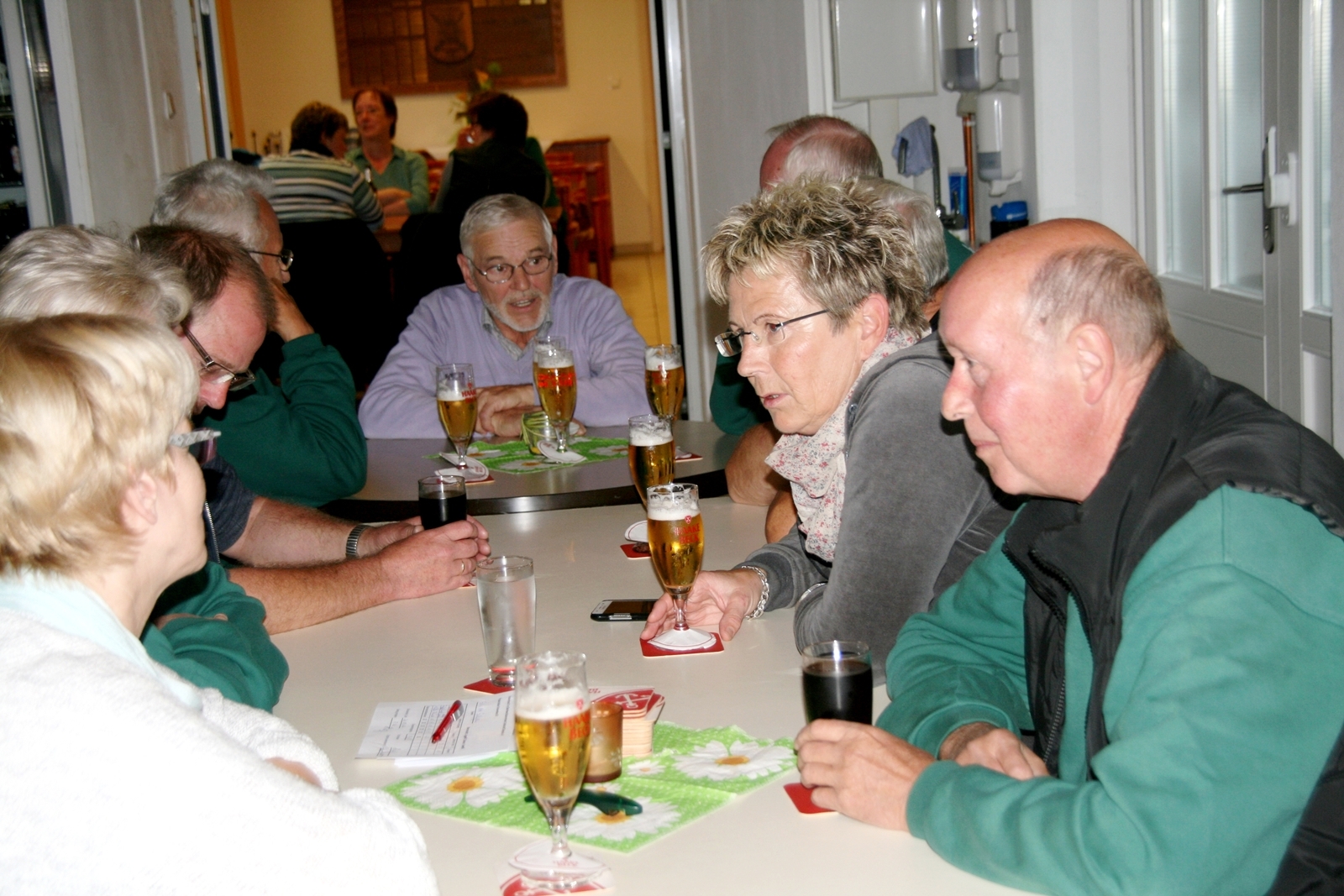 von links: Vizepräsident Günter Herzig, Sportleiterin Sabine Prochazka, Andrea Grote, „Hausherr“ Gerhard Schulz, neue Kreisverbandskönigin Gisela Schwenn, Stellvertretender Sportleiter Udo Jaschkowske, Rosemarie Wowries, Werner Thiele, Sportleiter Udo Bolte und Präsident Dieter Lüdeke