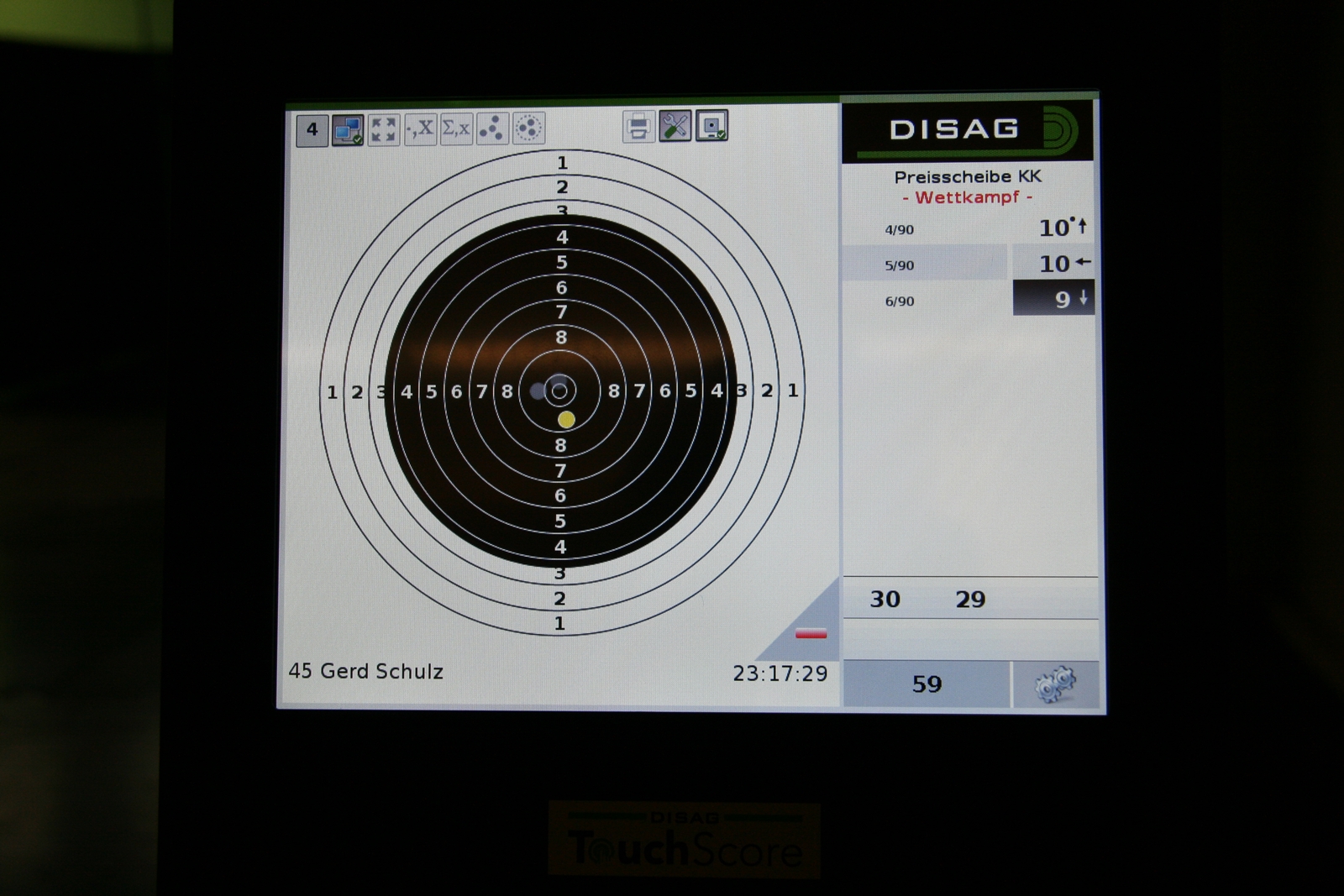 Geschossen wurde auf drei elektronischen DISAG-Anlagen, nach einer kurzen Einführung konnten die Betreuer die Anlage per „Fingerdruck“ auf dem Monitor selbständig von „Preis“- auf „Pokal“ umstellen.