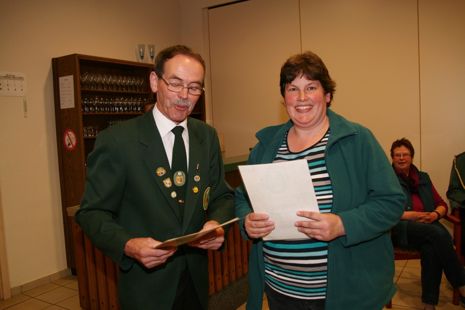 Das Königsschießen entschied Gisela Schwenn vom SV Blockwinkel mit 98 Ringen für sich, dicht auf den Fersen lagen ihr Gaby Gronemeyer vom SV Ehrenburg ebenfalls 98 Ringe, Andrea Grote SV Schwaförden mit 95, Bianca Lüllmann von der Schützengesellschaft von 1896 Sulingen mit 93 sowie Norbert Belke vom SV Mallinghausen mit 93 Ringen. Dem Schützenkönig vom SV von 1848 Sulingen Roland Zornow wünschte Präsident Dieter Lüdeke gute Besserung.