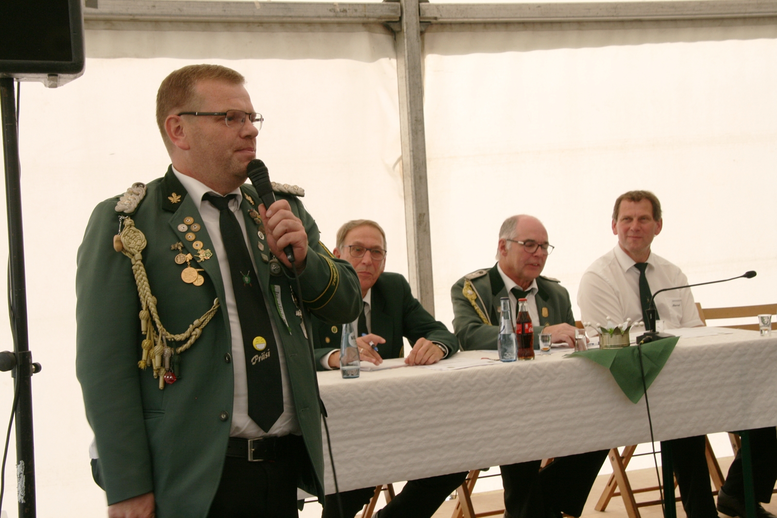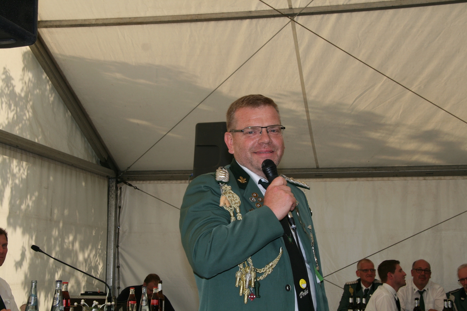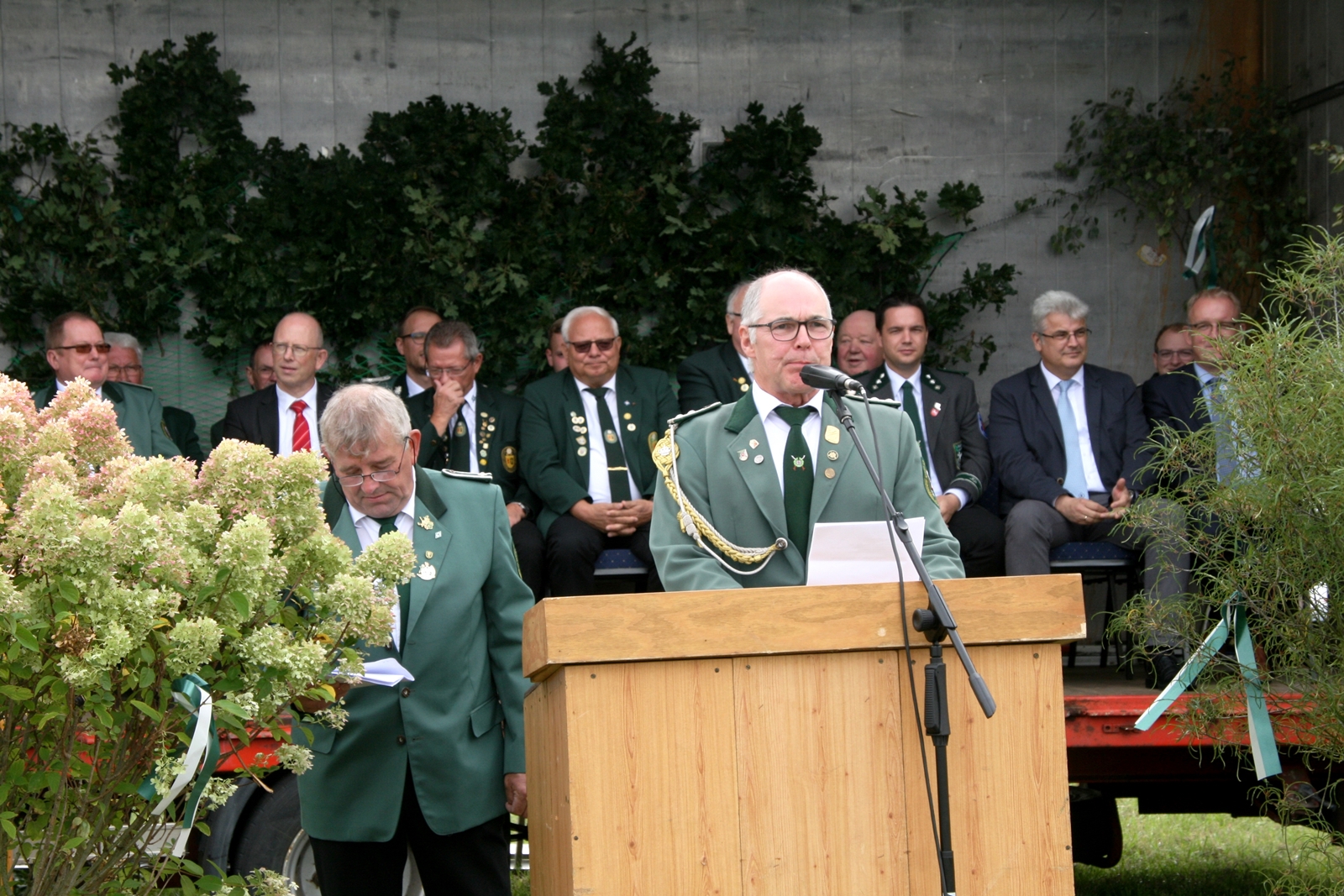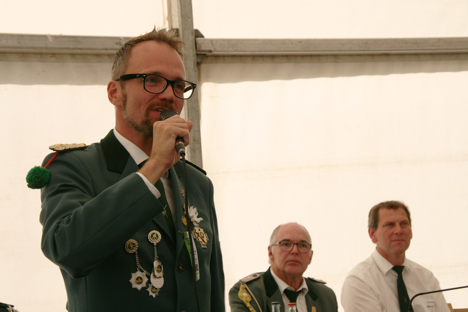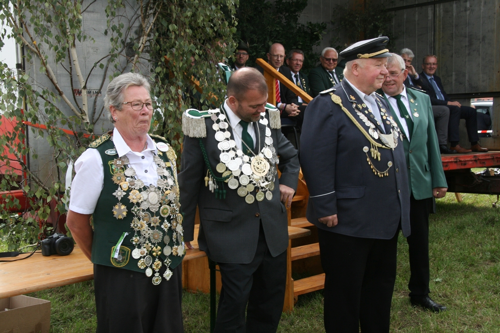 Präsident Wilhelm Mohrmann begrüßte alle Schützen und Gäste recht herzlich. Das 60. Kreiskönigstreffen (KKT) im Altkreis Diepholz ausrichten zu können, habe ihm und seinen Helfern viel Spaß gemacht. Zur Erinnerung: das 1. KKT habe 1959 beim Schützenverein von 1848 Sulingen stattgefunden - mit 18 Vereinen samt Königen (noch ohne Schießwettbewerbe, die fanden erst beim 2. KKT in Barnstorf ihren Anfang). Sein besonderer Dank ging an alle die unterstützt und geholfen haben dieses Fest auszurichten. Bei seinen Grußworten lobte Ortsbürgermeister Erich Schlamann die funktionierenden Gemeinschaft, die vielen Helfer aus den Ortschaften/Vereinen der Gemeinde Lindern. "Wir sind stolz Gastgeber dieser Veranstaltung zu sein und wünsche allen Anwesenden einen schönen Tag in Lindern". Dirk Rauschkolb, Bürgermeister der Stadt Sulingen faste seine Grußworte in "Lindern kann Kreiskönigstreffen" zusammen. Die Glückwünsche des Landkreises überbrachte der stellvertretende Landrat Volker Meyer, dabei lobte er das ehrenamtliche Engagement der Vereine. Seinen Respekt sprach MdB Axel Knöerig der kleinen Ortschaft Lindern aus, der Einwohnerzahl von 550 stehe an diesem Tag die Gästezahl von über 2500 gegenüber. MdL Marcel Scharrelmann, auch Schütze, erinnerte daran, das die Schützenvereine das Leben auf dem Lande prägen, dazu Geselligkeit, Gemeinschaft und Tradition pflegen. Bezirkspräsident Karl-Friedrich Scharrelmann überbrachte die besten Grüße des Bezirks-Schützenverbandes Grafschaft Diepholz, "ich freue mich, dass ich hier sein darf. Lade eure Majestäten zum Bezirkskönigsball am 19. Oktober nach Varrel ins Gasthaus Hartje ein - feiert schön - Dankeschön". Seine kurzen Grußworte wurden mit großem Applaus bedacht. Wilhelm Mohrmann danke allen für die Wortbeiträge.