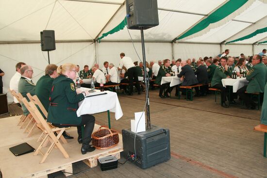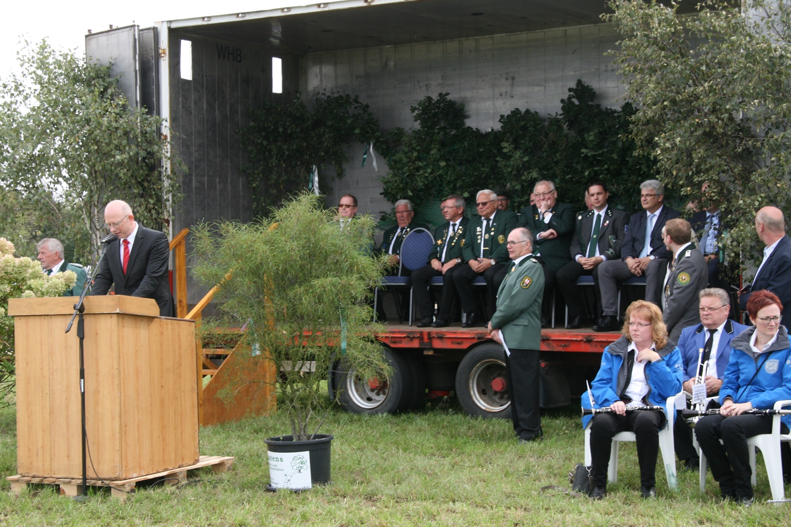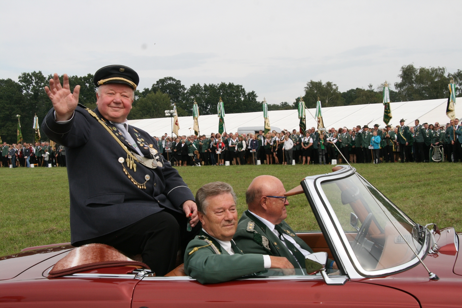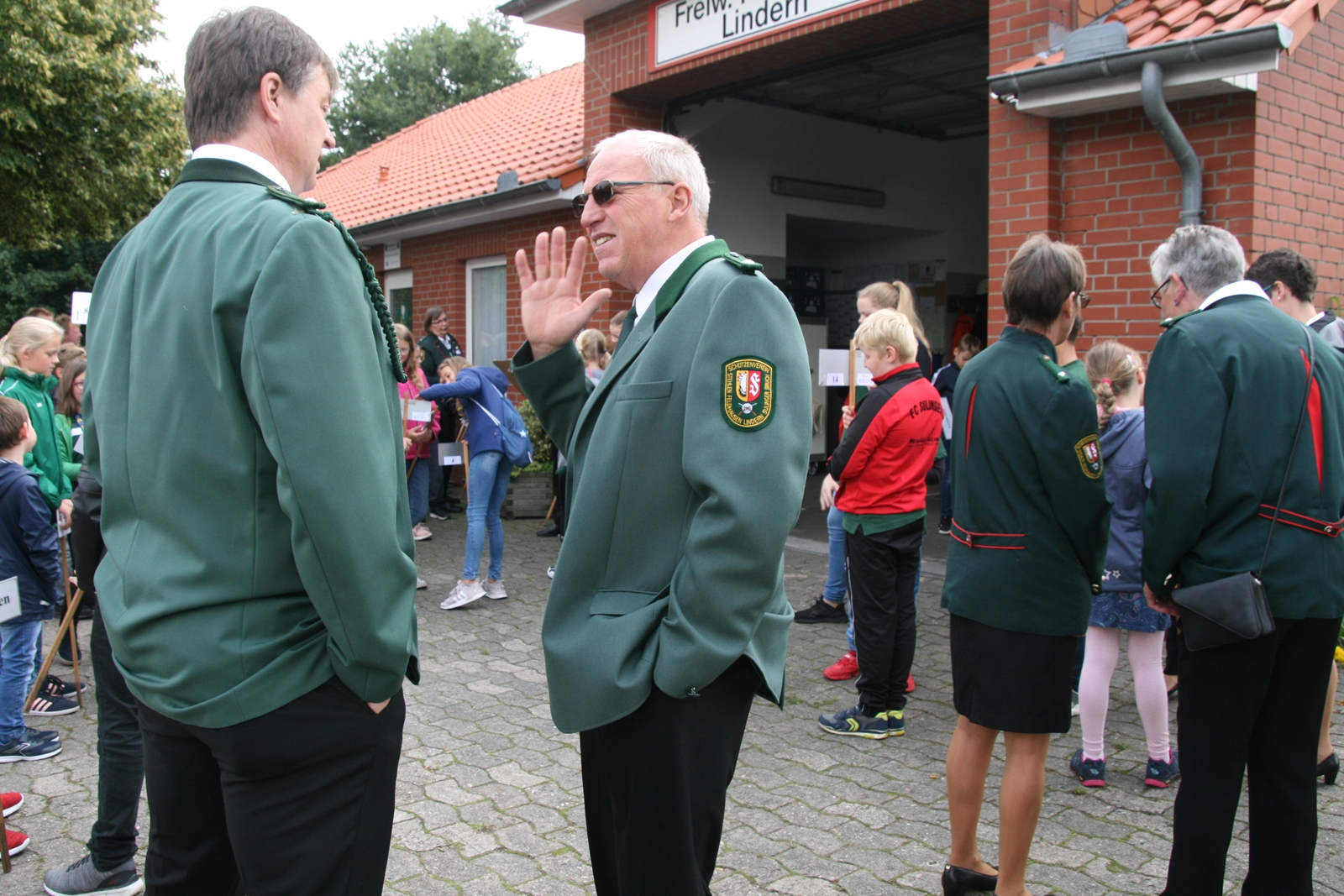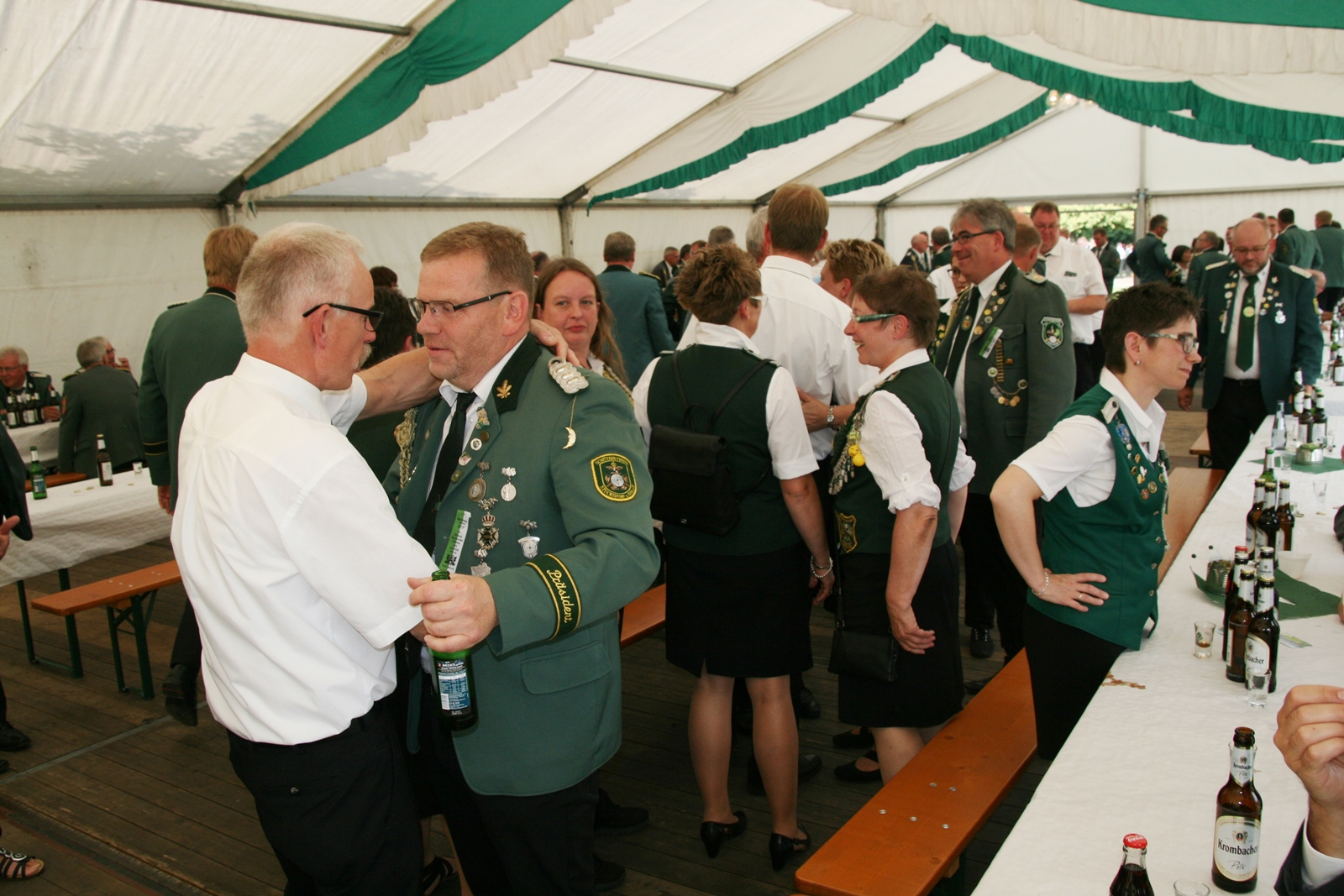 Präsident Wilhelm Mohrmann begrüßte alle Schützen und Gäste recht herzlich. Das 60. Kreiskönigstreffen (KKT) im Altkreis Diepholz ausrichten zu können, habe ihm und seinen Helfern viel Spaß gemacht. Zur Erinnerung: das 1. KKT habe 1959 beim Schützenverein von 1848 Sulingen stattgefunden - mit 18 Vereinen samt Königen (noch ohne Schießwettbewerbe, die fanden erst beim 2. KKT in Barnstorf ihren Anfang). Sein besonderer Dank ging an alle die unterstützt und geholfen haben dieses Fest auszurichten. Bei seinen Grußworten lobte Ortsbürgermeister Erich Schlamann die funktionierenden Gemeinschaft, die vielen Helfer aus den Ortschaften/Vereinen der Gemeinde Lindern. "Wir sind stolz Gastgeber dieser Veranstaltung zu sein und wünsche allen Anwesenden einen schönen Tag in Lindern". Dirk Rauschkolb, Bürgermeister der Stadt Sulingen faste seine Grußworte in "Lindern kann Kreiskönigstreffen" zusammen. Die Glückwünsche des Landkreises überbrachte der stellvertretende Landrat Volker Meyer, dabei lobte er das ehrenamtliche Engagement der Vereine. Seinen Respekt sprach MdB Axel Knöerig der kleinen Ortschaft Lindern aus, der Einwohnerzahl von 550 stehe an diesem Tag die Gästezahl von über 2500 gegenüber. MdL Marcel Scharrelmann, auch Schütze, erinnerte daran, das die Schützenvereine das Leben auf dem Lande prägen, dazu Geselligkeit, Gemeinschaft und Tradition pflegen. Bezirkspräsident Karl-Friedrich Scharrelmann überbrachte die besten Grüße des Bezirks-Schützenverbandes Grafschaft Diepholz, "ich freue mich, dass ich hier sein darf. Lade eure Majestäten zum Bezirkskönigsball am 19. Oktober nach Varrel ins Gasthaus Hartje ein - feiert schön - Dankeschön". Seine kurzen Grußworte wurden mit großem Applaus bedacht. Wilhelm Mohrmann danke allen für die Wortbeiträge.