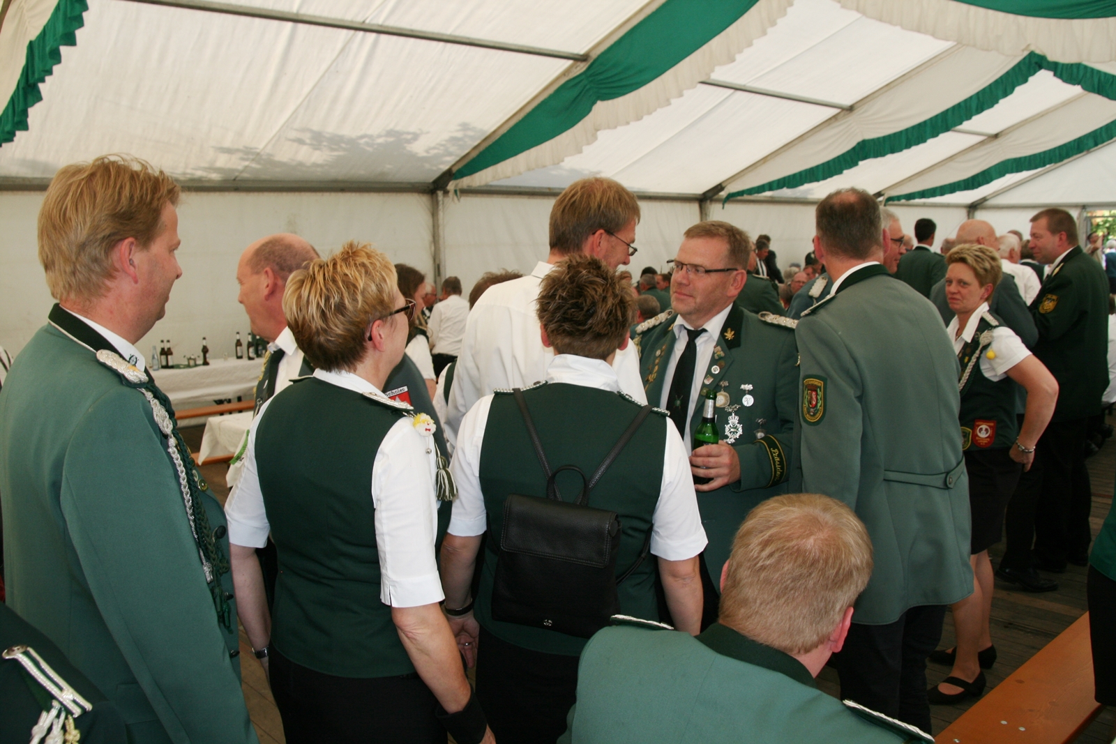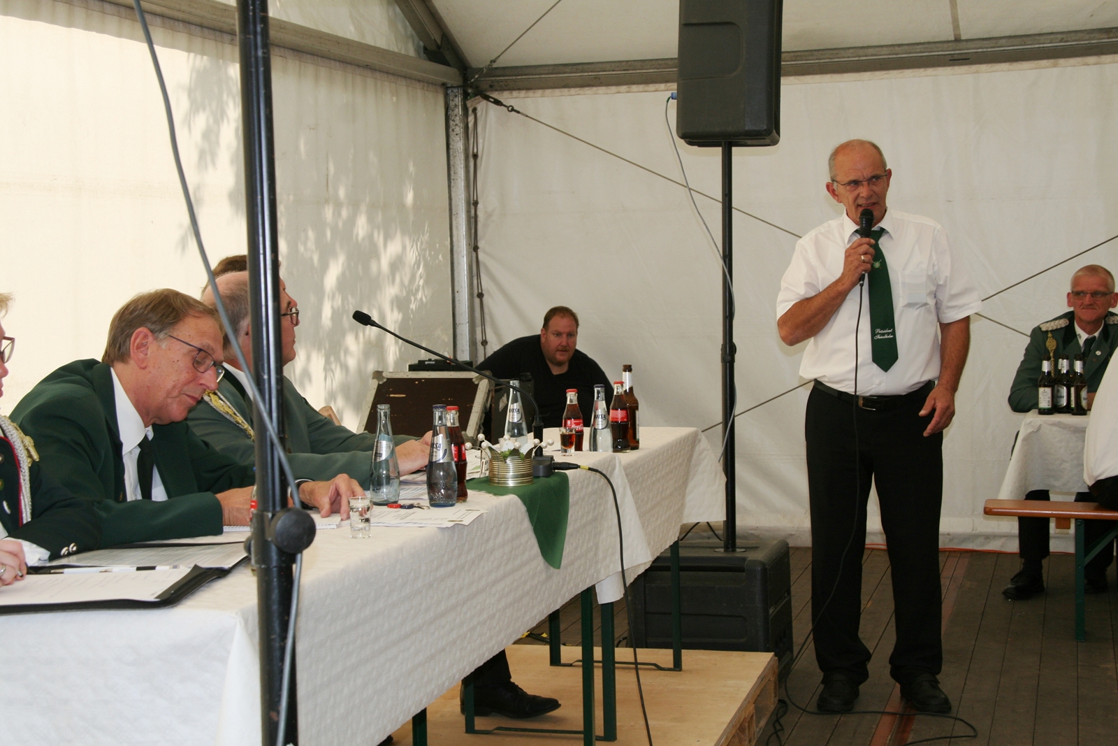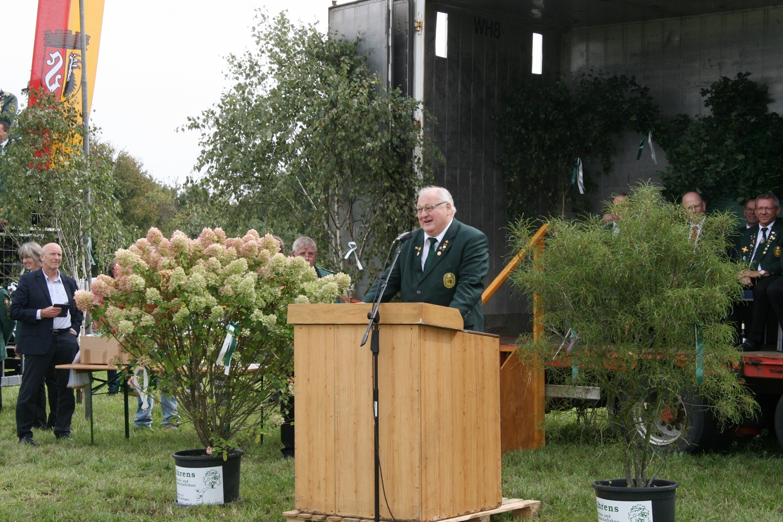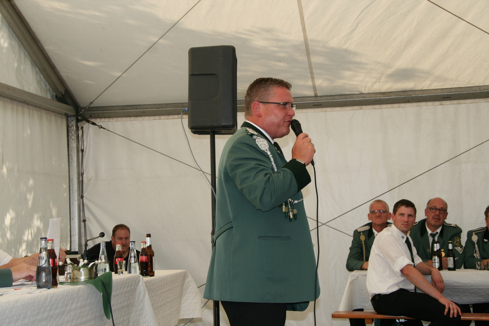 Präsident Wilhelm Mohrmann begrüßte alle Schützen und Gäste recht herzlich. Das 60. Kreiskönigstreffen (KKT) im Altkreis Diepholz ausrichten zu können, habe ihm und seinen Helfern viel Spaß gemacht. Zur Erinnerung: das 1. KKT habe 1959 beim Schützenverein von 1848 Sulingen stattgefunden - mit 18 Vereinen samt Königen (noch ohne Schießwettbewerbe, die fanden erst beim 2. KKT in Barnstorf ihren Anfang). Sein besonderer Dank ging an alle die unterstützt und geholfen haben dieses Fest auszurichten. Bei seinen Grußworten lobte Ortsbürgermeister Erich Schlamann die funktionierenden Gemeinschaft, die vielen Helfer aus den Ortschaften/Vereinen der Gemeinde Lindern. "Wir sind stolz Gastgeber dieser Veranstaltung zu sein und wünsche allen Anwesenden einen schönen Tag in Lindern". Dirk Rauschkolb, Bürgermeister der Stadt Sulingen faste seine Grußworte in "Lindern kann Kreiskönigstreffen" zusammen. Die Glückwünsche des Landkreises überbrachte der stellvertretende Landrat Volker Meyer, dabei lobte er das ehrenamtliche Engagement der Vereine. Seinen Respekt sprach MdB Axel Knöerig der kleinen Ortschaft Lindern aus, der Einwohnerzahl von 550 stehe an diesem Tag die Gästezahl von über 2500 gegenüber. MdL Marcel Scharrelmann, auch Schütze, erinnerte daran, das die Schützenvereine das Leben auf dem Lande prägen, dazu Geselligkeit, Gemeinschaft und Tradition pflegen. Bezirkspräsident Karl-Friedrich Scharrelmann überbrachte die besten Grüße des Bezirks-Schützenverbandes Grafschaft Diepholz, "ich freue mich, dass ich hier sein darf. Lade eure Majestäten zum Bezirkskönigsball am 19. Oktober nach Varrel ins Gasthaus Hartje ein - feiert schön - Dankeschön". Seine kurzen Grußworte wurden mit großem Applaus bedacht. Wilhelm Mohrmann danke allen für die Wortbeiträge.