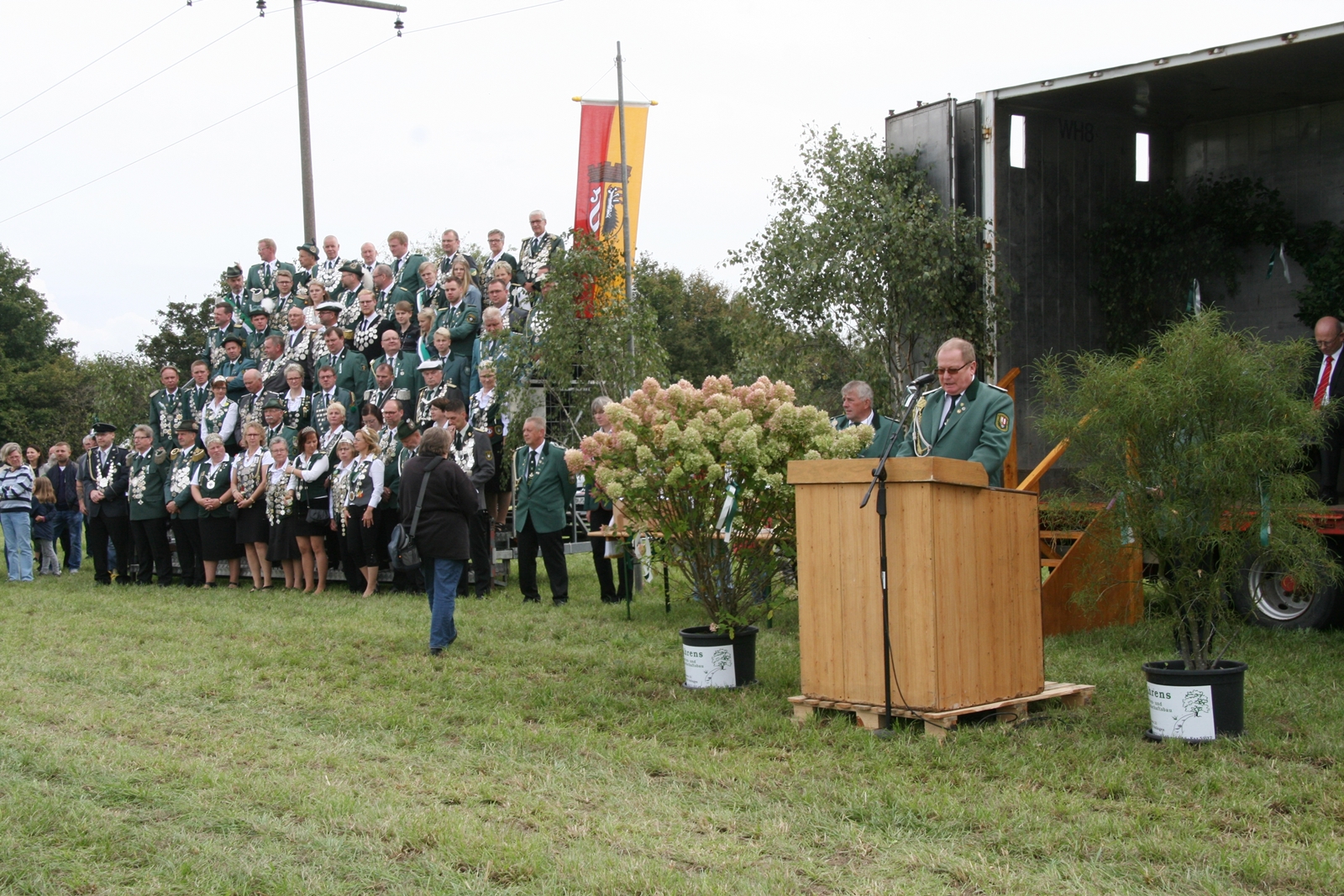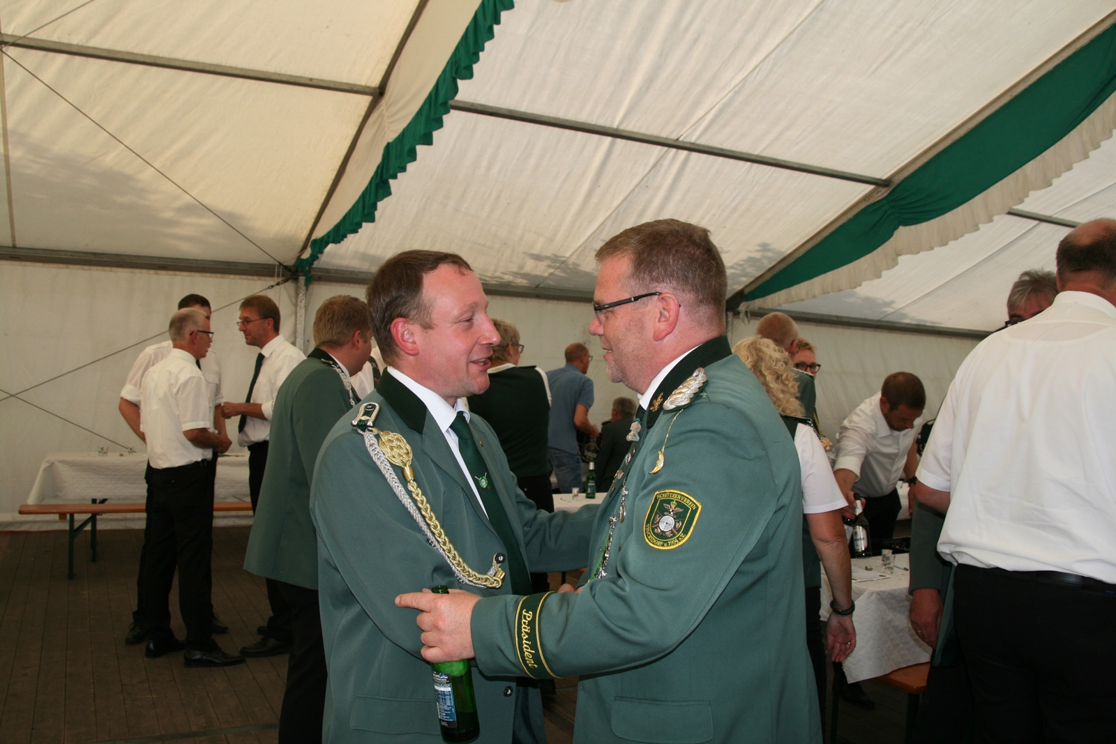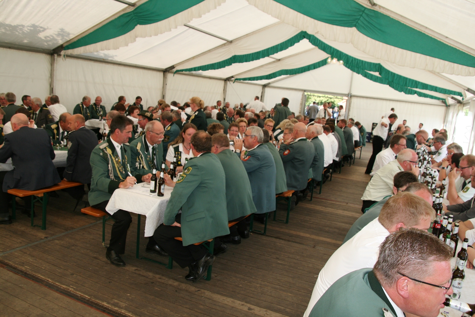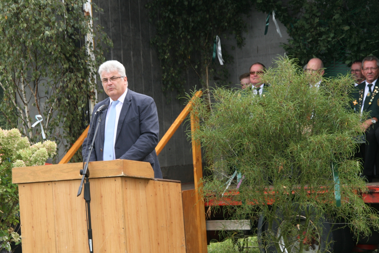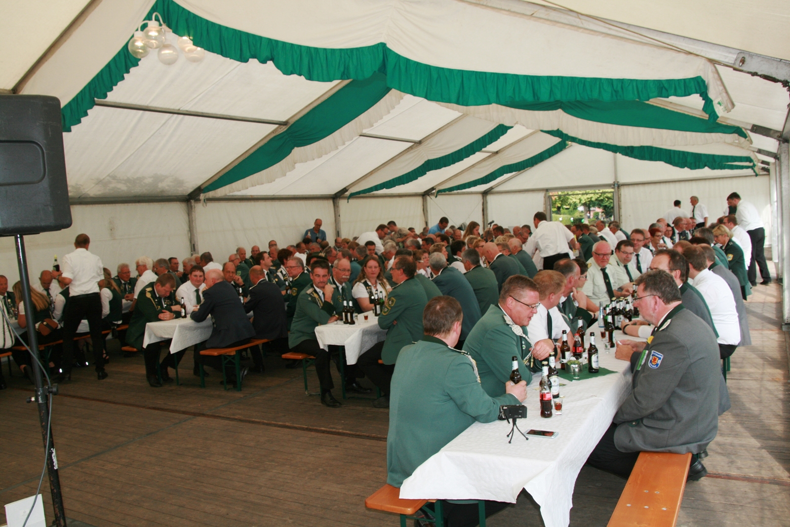 Präsident Wilhelm Mohrmann begrüßte alle Schützen und Gäste recht herzlich. Das 60. Kreiskönigstreffen (KKT) im Altkreis Diepholz ausrichten zu können, habe ihm und seinen Helfern viel Spaß gemacht. Zur Erinnerung: das 1. KKT habe 1959 beim Schützenverein von 1848 Sulingen stattgefunden - mit 18 Vereinen samt Königen (noch ohne Schießwettbewerbe, die fanden erst beim 2. KKT in Barnstorf ihren Anfang). Sein besonderer Dank ging an alle die unterstützt und geholfen haben dieses Fest auszurichten. Bei seinen Grußworten lobte Ortsbürgermeister Erich Schlamann die funktionierenden Gemeinschaft, die vielen Helfer aus den Ortschaften/Vereinen der Gemeinde Lindern. "Wir sind stolz Gastgeber dieser Veranstaltung zu sein und wünsche allen Anwesenden einen schönen Tag in Lindern". Dirk Rauschkolb, Bürgermeister der Stadt Sulingen faste seine Grußworte in "Lindern kann Kreiskönigstreffen" zusammen. Die Glückwünsche des Landkreises überbrachte der stellvertretende Landrat Volker Meyer, dabei lobte er das ehrenamtliche Engagement der Vereine. Seinen Respekt sprach MdB Axel Knöerig der kleinen Ortschaft Lindern aus, der Einwohnerzahl von 550 stehe an diesem Tag die Gästezahl von über 2500 gegenüber. MdL Marcel Scharrelmann, auch Schütze, erinnerte daran, das die Schützenvereine das Leben auf dem Lande prägen, dazu Geselligkeit, Gemeinschaft und Tradition pflegen. Bezirkspräsident Karl-Friedrich Scharrelmann überbrachte die besten Grüße des Bezirks-Schützenverbandes Grafschaft Diepholz, "ich freue mich, dass ich hier sein darf. Lade eure Majestäten zum Bezirkskönigsball am 19. Oktober nach Varrel ins Gasthaus Hartje ein - feiert schön - Dankeschön". Seine kurzen Grußworte wurden mit großem Applaus bedacht. Wilhelm Mohrmann danke allen für die Wortbeiträge.