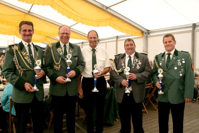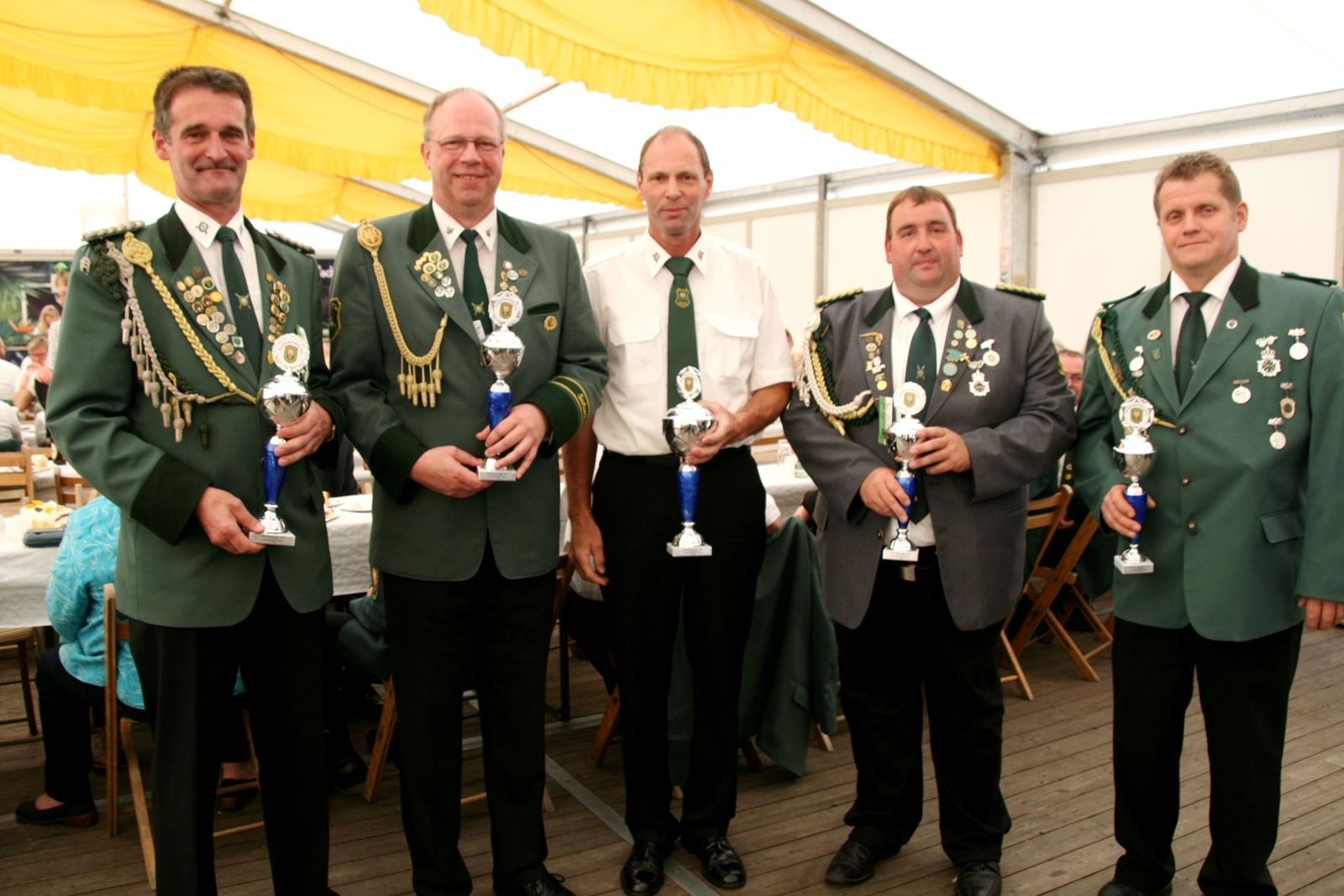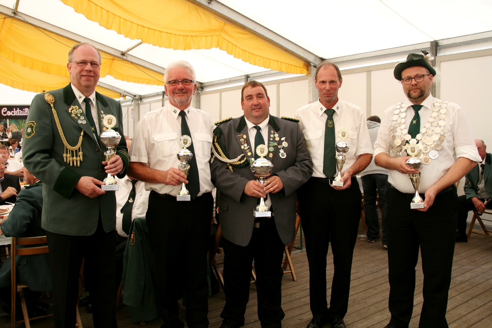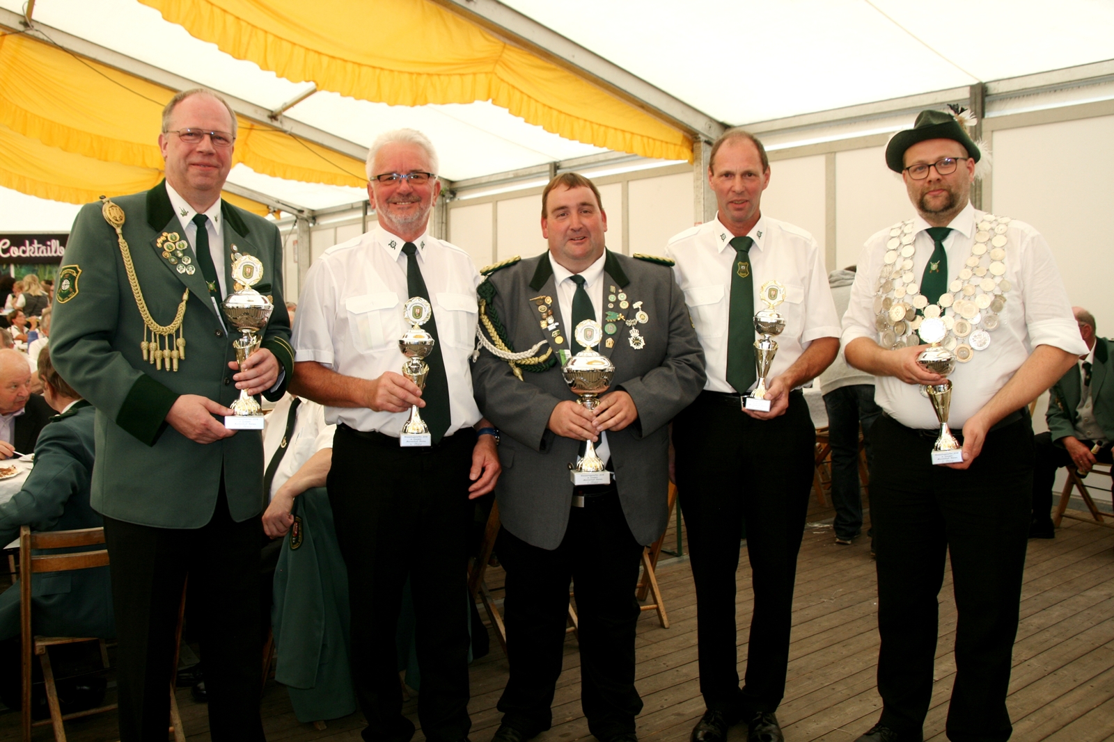 Heiner Schumacher vom SV Wesenstedt-Harmhausen war nicht zu schlagen, er wurde bester Einzelschütze bei den Herren. Ihm folgten Bernd Bolte SV Mallinghausen, Thomas Langhorst SV Rehden u. Frank Maschmann vom SV Stocksdorf. Von links: Bernd Bolte, Thomas Langhorst, Heiner Schumcher, Stefan Stuwe, Frank Maschmann.