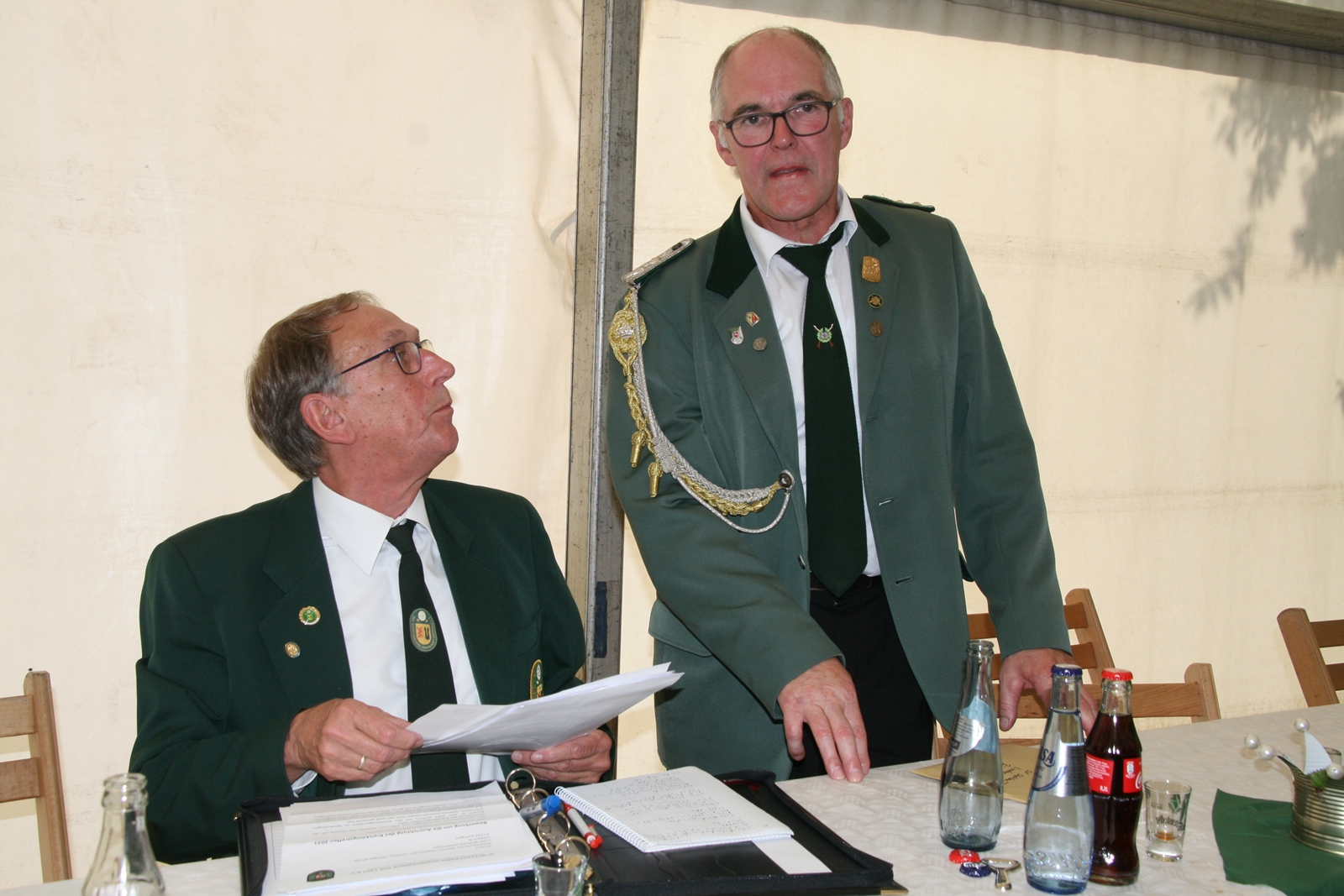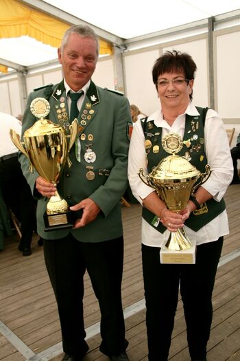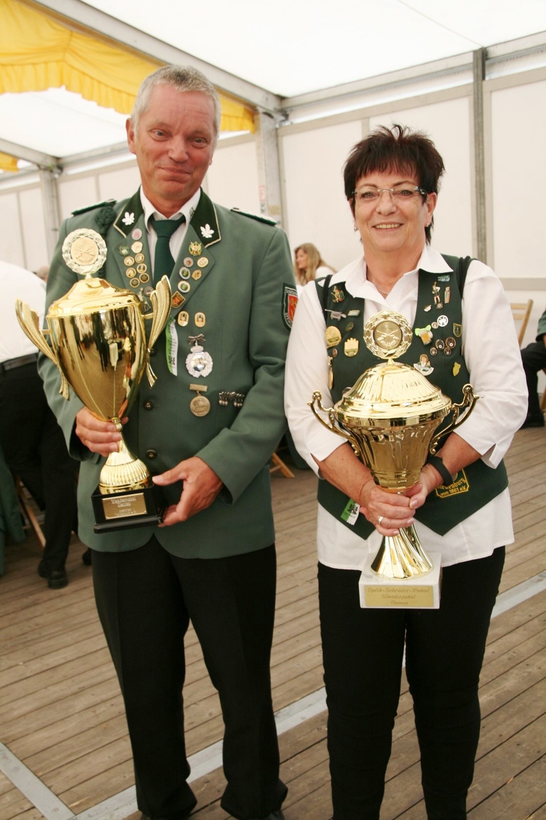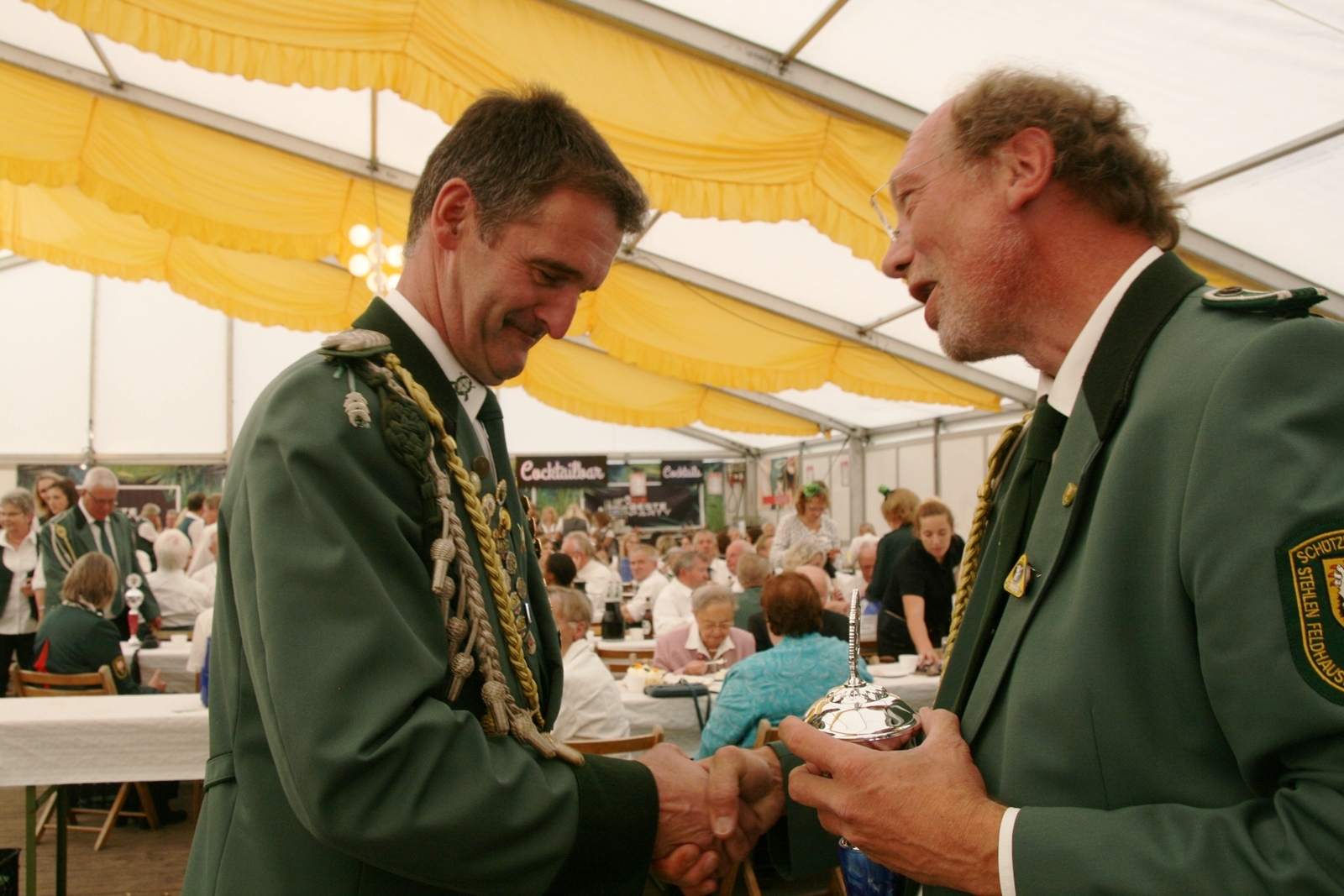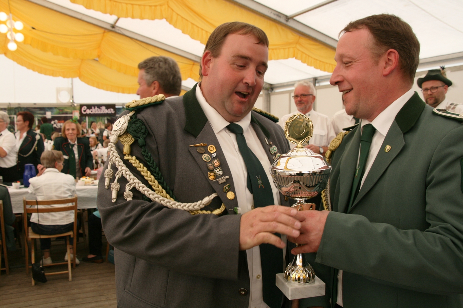 Den neuen Wanderpokal der ehemaligen Kreiskönige errang Helmut Riedemann von SV Blockwinkel (rechts), Rüdiger Jahn vom SV Rehden ( links) erhielt den vorherigen Pokal, da er diesen am häufigsten Gewonnen hatte.