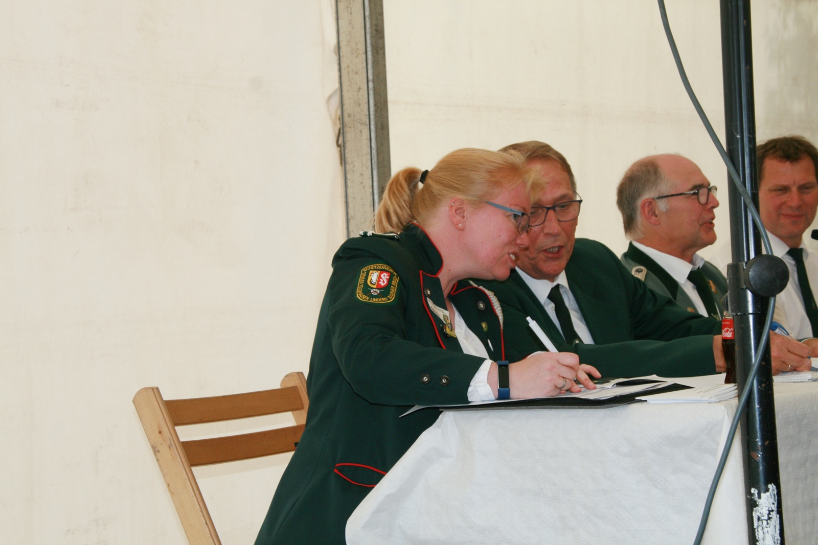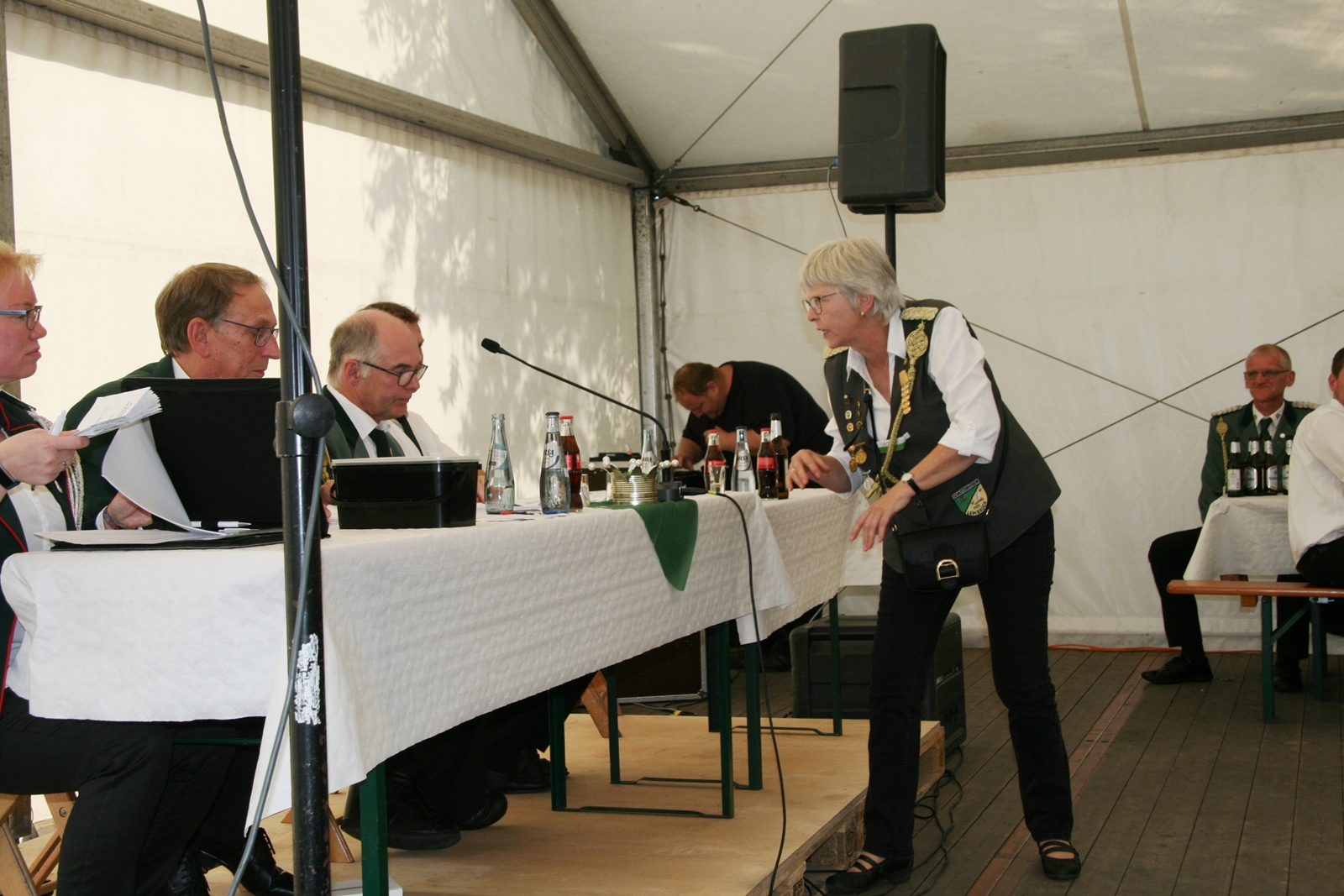 Wie seit vielen Jahren, war um 16:00 Uhr der Delegiertentag angesagt, vom Hauptzelt ein kurzer Weg (160m) zum kleinen Zelt. Präsident Wilhelm Mohrmann begrüßte herzlich 150 Schützinnen u. Schützen zum Delegiertentag 2019. Seine Helfer waren Schriftführerin Nicole Kosinna und Kassenwart Bernd Cordes sowie Stellvertretender Geschäftsführer des Bezirks-Schützenverbandes Grafschaft Diepholz Dietrich Lampe, als Protokollführer. Anträge lagen bis Dato nicht vor, Gerd Harzmeier vom SV Kirchdorf beantragte, dass für die Jugendlichen bei den Wettbewerben des Kreiskönigstreffen keine Adleraugen eingesetzt werden sollen, dem wurde mehrheitlich zugestimmt. Friedrich Winkelmann vom SV Aschen regte an, den Delegiertentag statt um 16.00 Uhr, schon 15:30 Uhr zu beginnen, da dann das Feiern für alle Delitag-Teilnehmer "zügiger" ablaufen würde - dem wurde ebenfalls zugestimmt. Also im nächsten Jahr in Lembruch um 15:30 Uhr. Für die KKT-Vergabe für das Jahr 2021, lagen fünf Bewerbungen vor: SV Kirchdorf, SV Maasen, SV Nordsulingen, SV Stocksdorf und die SG von 1896 Sulingen. Da Kirchdorf, Maasen u. Nordsulingen schon das KKT ausgerichtet hatten, zogen sie ihre Anträge zurück, zu Gunsten von Stocksdorf u. der SG 1896 Sulingen. Die geheime Abstimmung erbrachte dieses Resultat: für den SV Stocksdorf 47- und für die SG von 1896 Sulingen 10 Stimmen, somit wird im Jahre 2021 das KKT in Stocksdorf stattfinden. Präsident Torsten Schulz nahm viele Glückwünsche entgegen, Präsident Andreas Albers gratulierte und wird sich natürlich wieder bewerben, das KKT in den Sulinger Raum zu holen. (Natürlich gab es zwischendurch ein paar Runden "Feuerwasser") Präsidentin Irmgard Binder lud bei dieser Gelegenheit alle herzlich zum Kreiskönigstreffen in 2020 nach Lembruch ein.