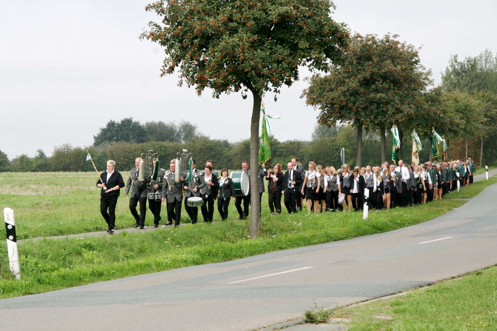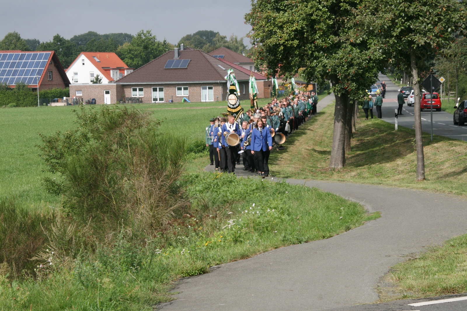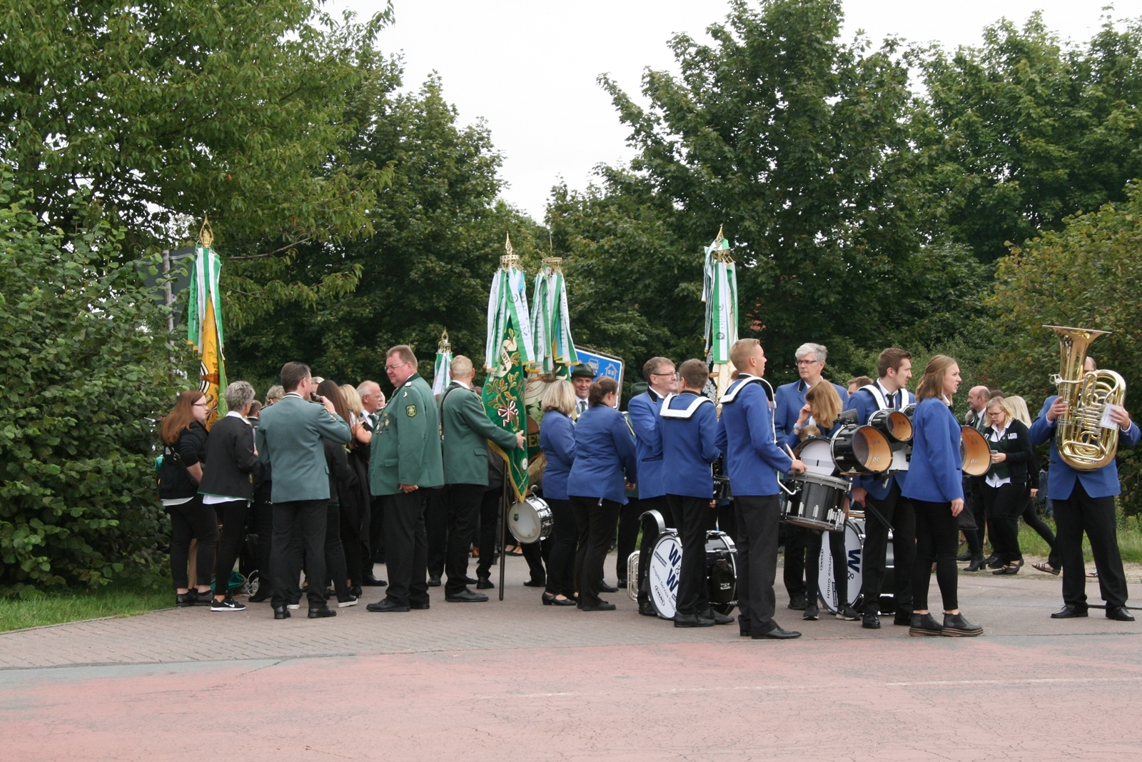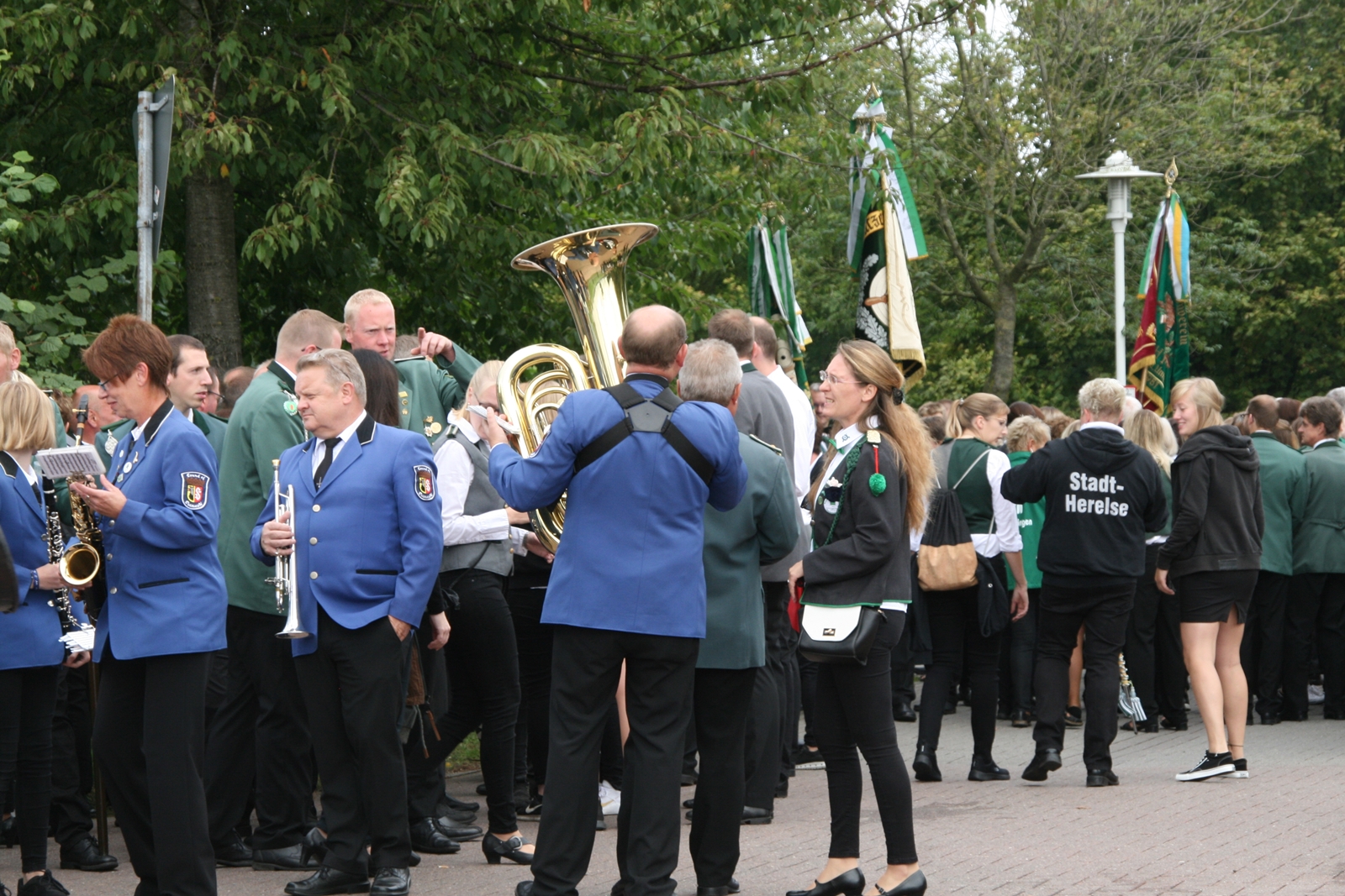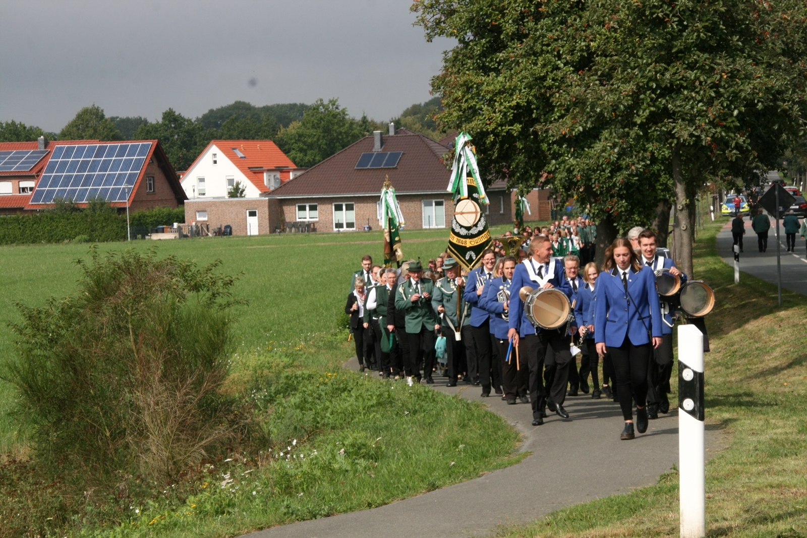 Zuvor waren alle Vereine musikalisch von der Marchingband Sound of Sulingen, die Spielmannszüge Stadt-Herelse, Hagewede-Marl, Kirchdorf, Varrel, Brockum, Wehrbleck und vom Bläserchor Varrel zum Antreteplatz geleitet worden.