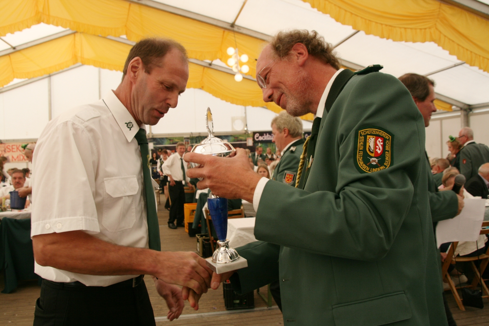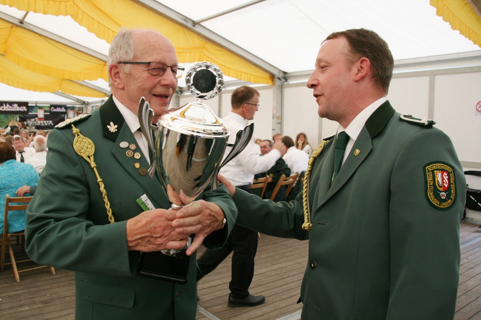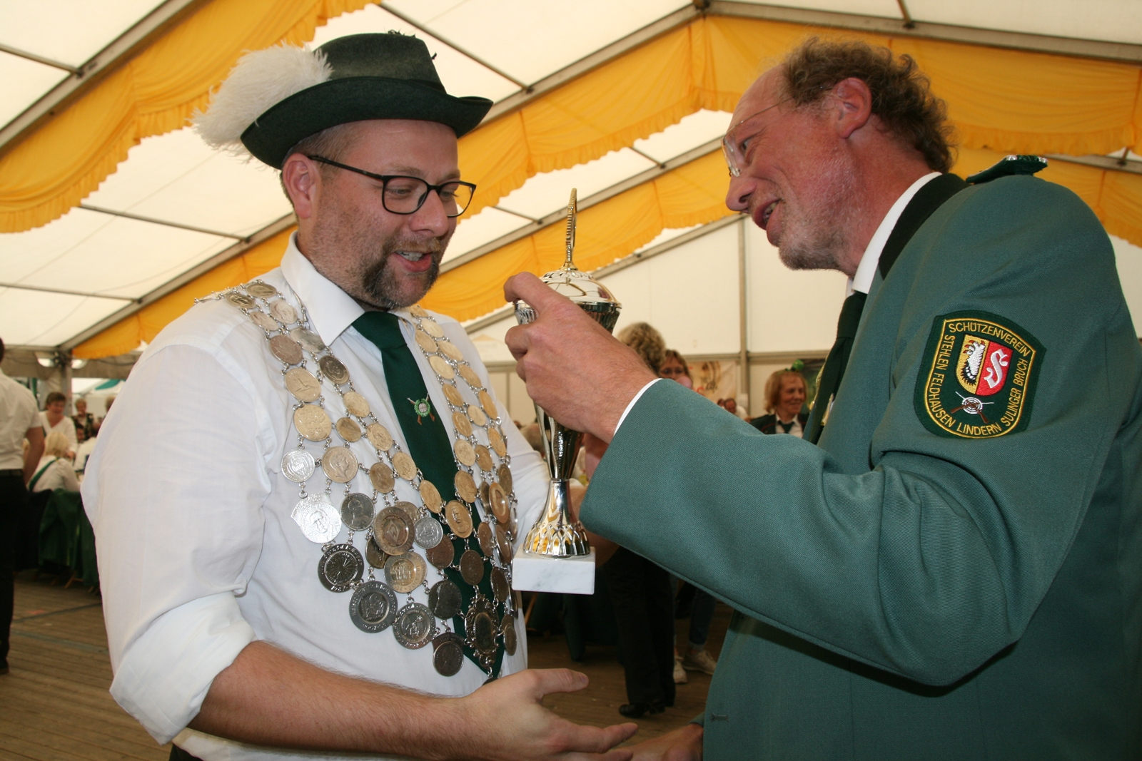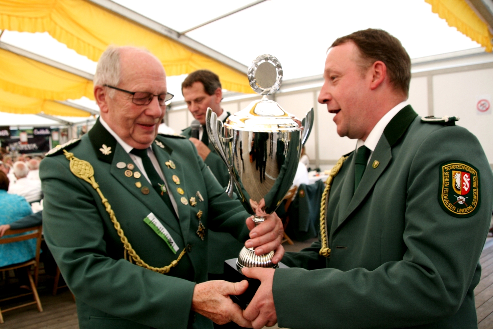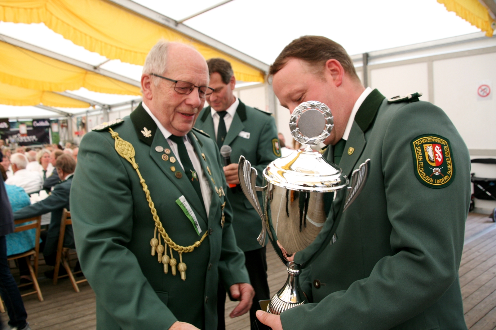 Den Wanderpokal der Herren (ausgelaufen), nahm Fred Kastens von der Maifeier Sankt Hülfe-Heede in Empfang, Linderns Präsident Wilhelm Mohrmann gratulierte herzlich.