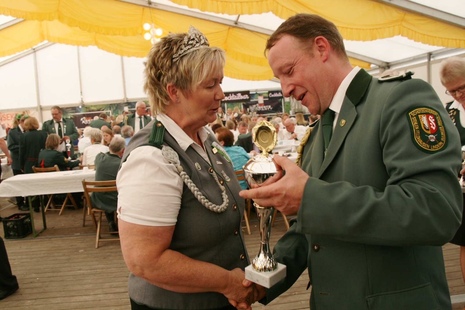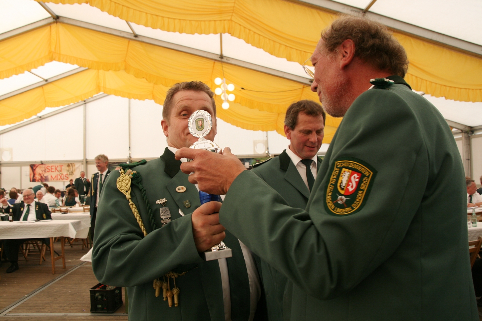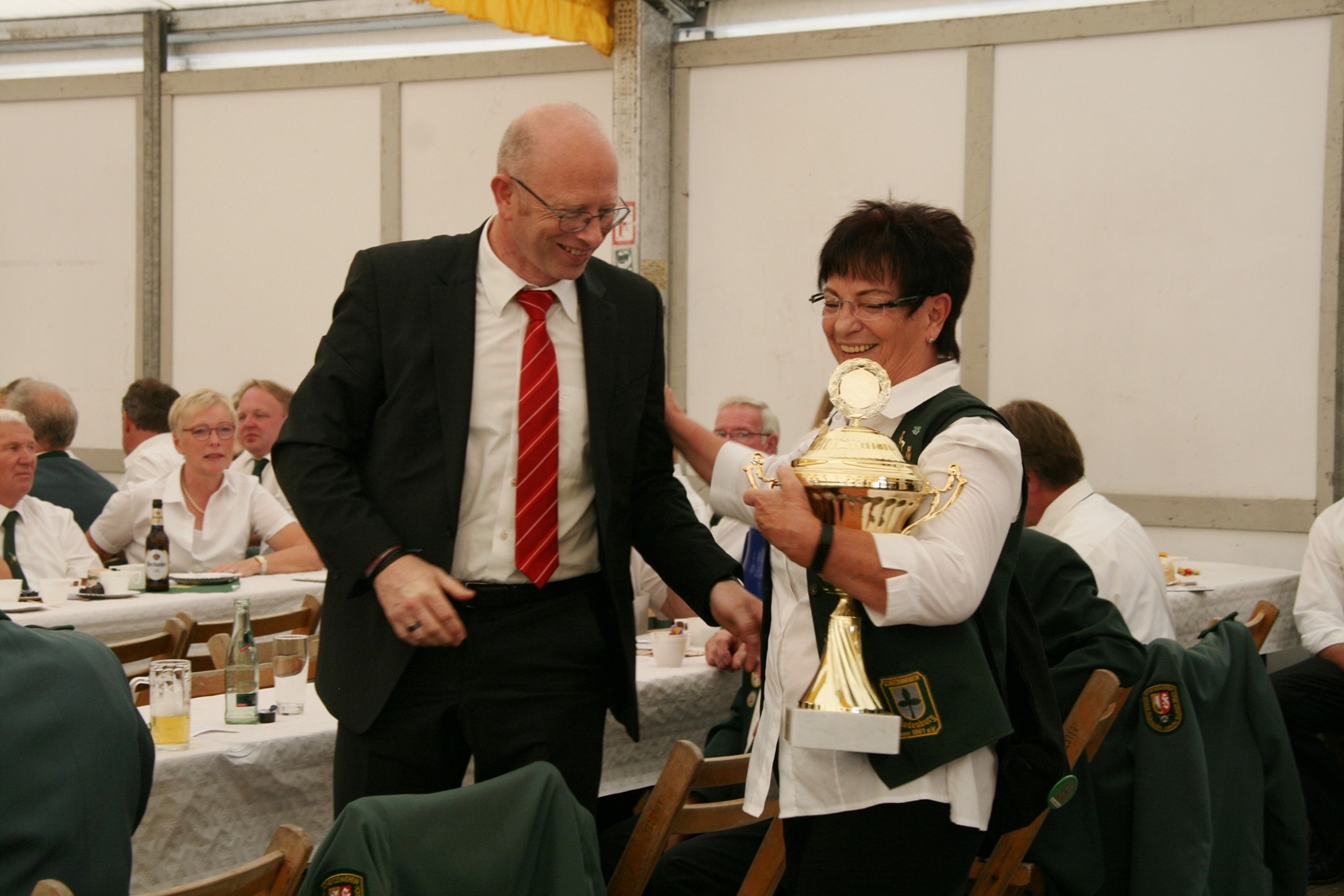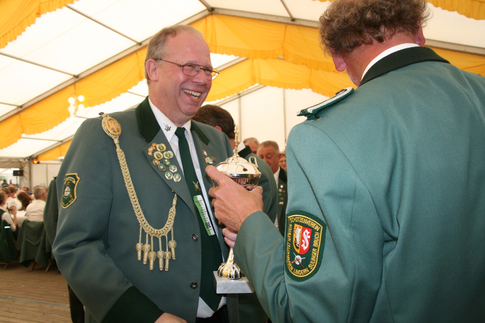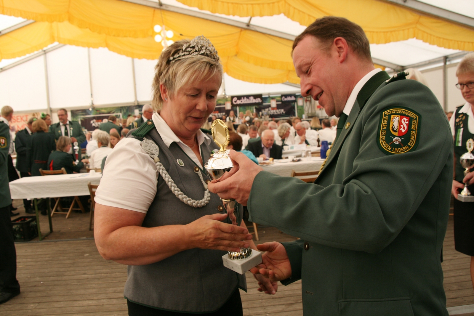 Den Wanderpokal der Herren (ausgelaufen), nahm Fred Kastens von der Maifeier Sankt Hülfe-Heede in Empfang, Linderns Präsident Wilhelm Mohrmann gratulierte herzlich.