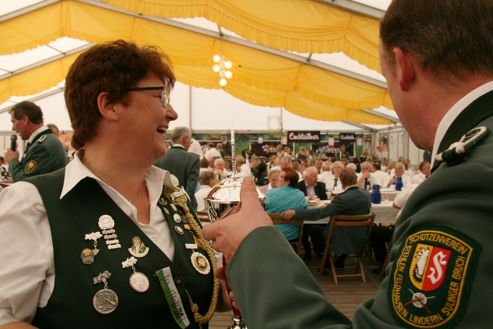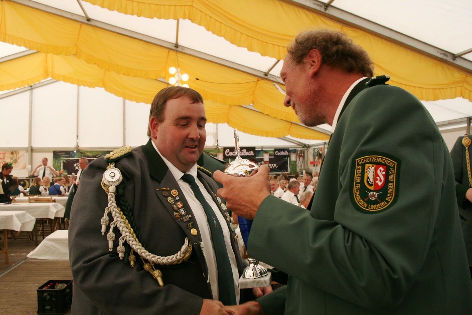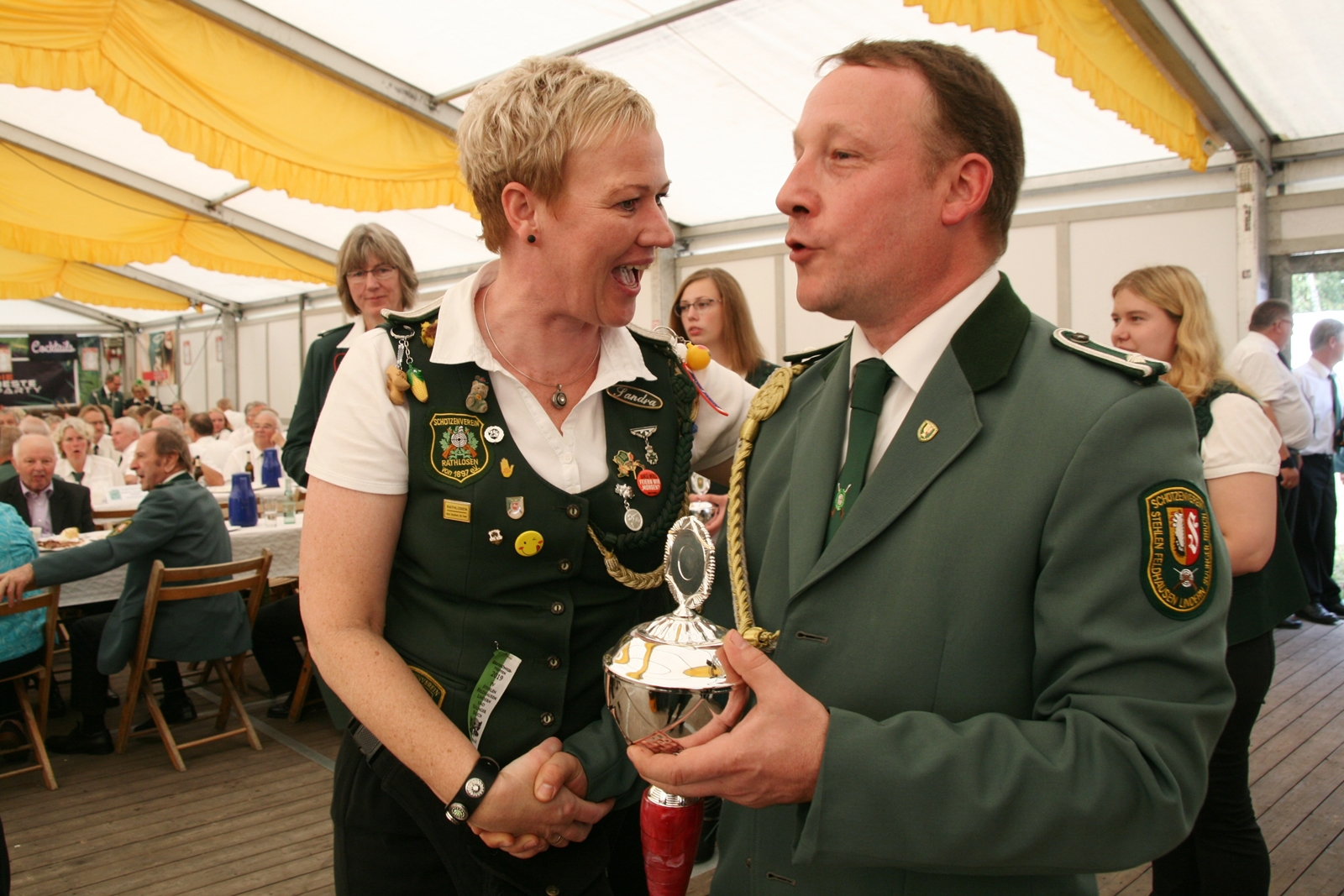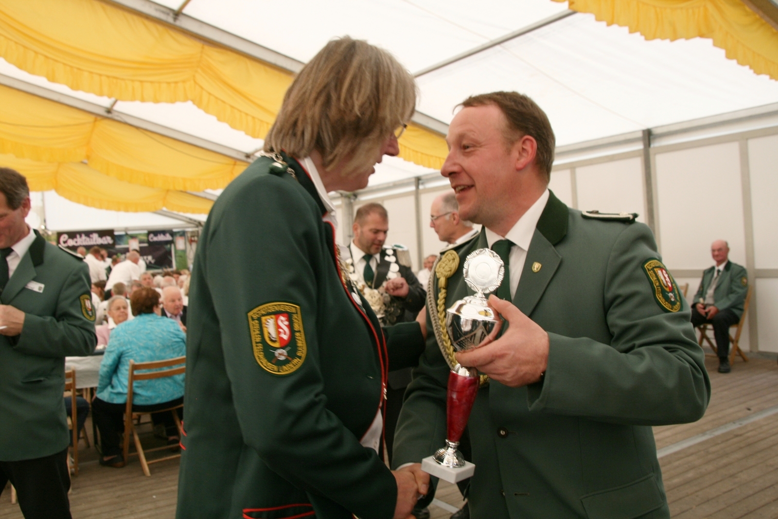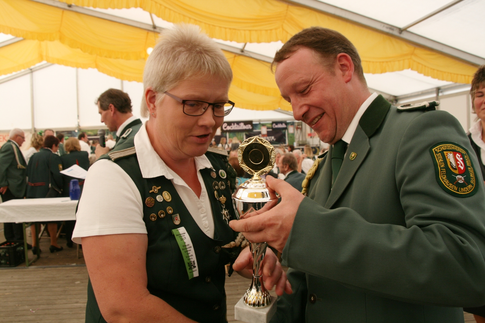 Den Wanderpokal der Herren (ausgelaufen), nahm Fred Kastens von der Maifeier Sankt Hülfe-Heede in Empfang, Linderns Präsident Wilhelm Mohrmann gratulierte herzlich.