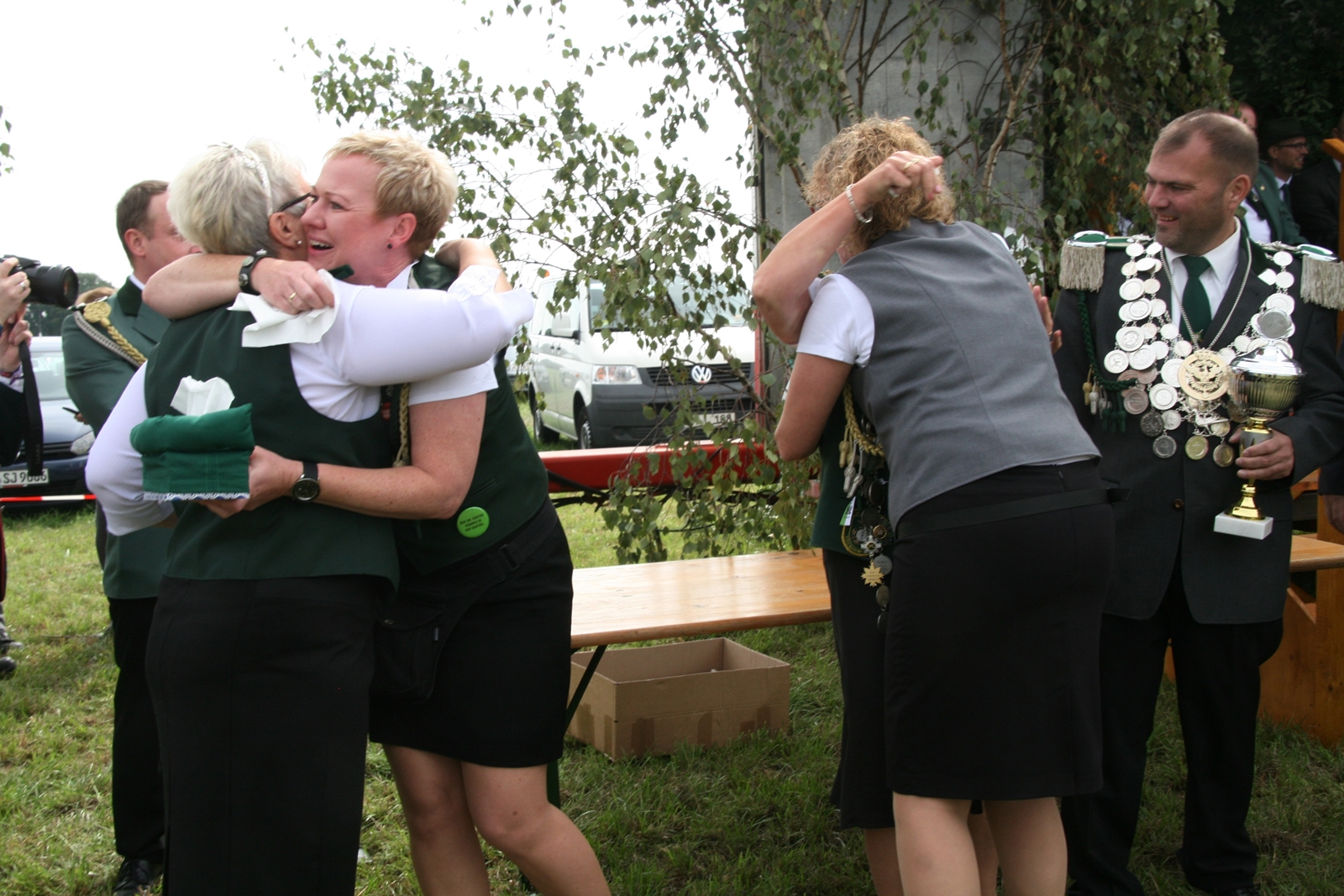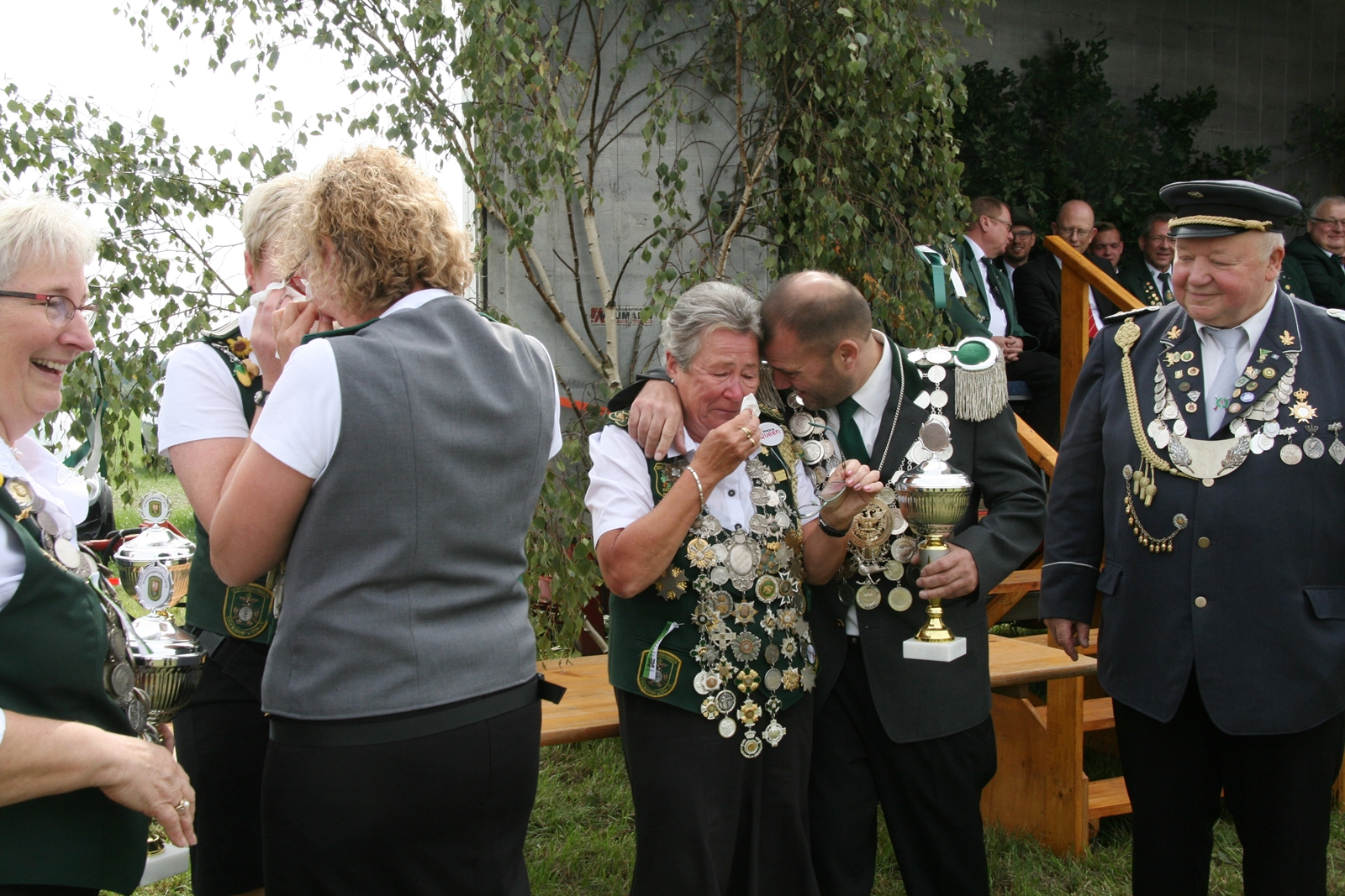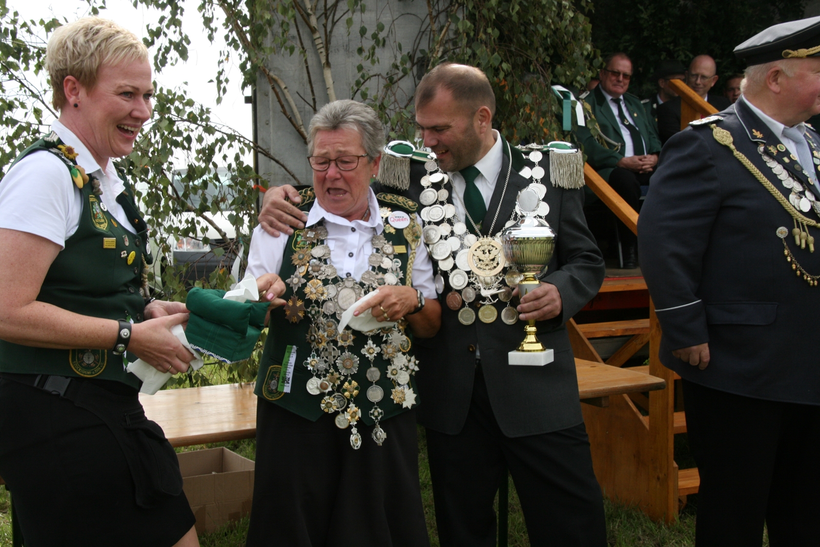 Ganz Rathlosen steht "Kopf", Erika Kunst hat mit 40 Ringen u. einem Teiler von 38,1 weitere 4 Anwärter weit hinter sich gelassen, ihre Freudentränen wollten nicht Enden. 46 Vereinskönige hatten um diesen Titel gekämpft.