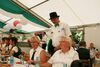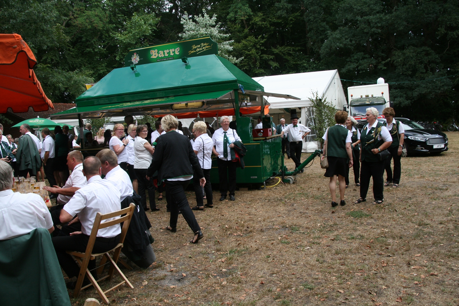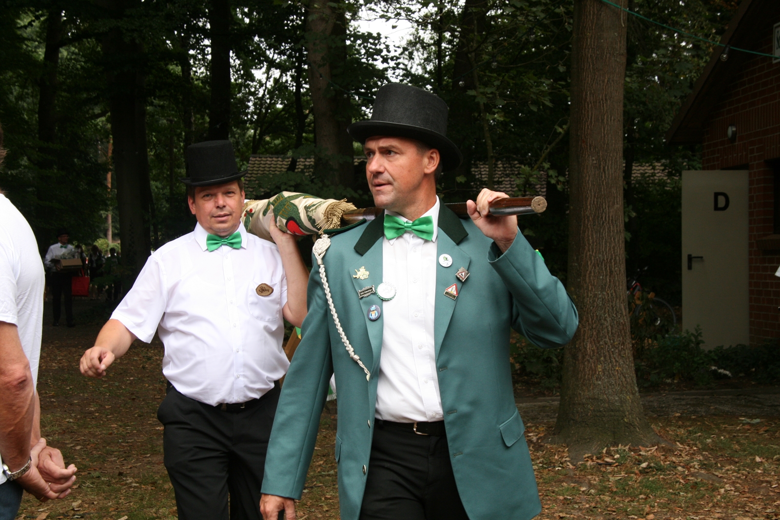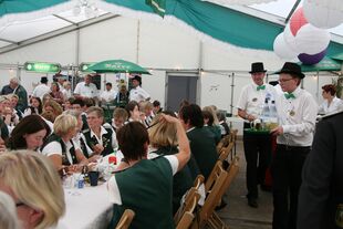 Rundumleuchten, hochgehalten, waren das Zeichen für die Schützenbrüder in ihrer tollen "Kellnertracht" schwarz-weiß mit Zylinder und grüner Fliege, Bestellungen der durstigen Schützenschwestern aufzunehmen...