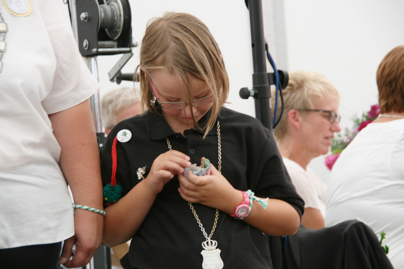 Die Majestätentitel der "Piedelpoggen" im Jubiläumsjahr in weiblicher Hand: Sandra Klinge "Die Jubilierende" und Kinderkönigin Janika Klinge.