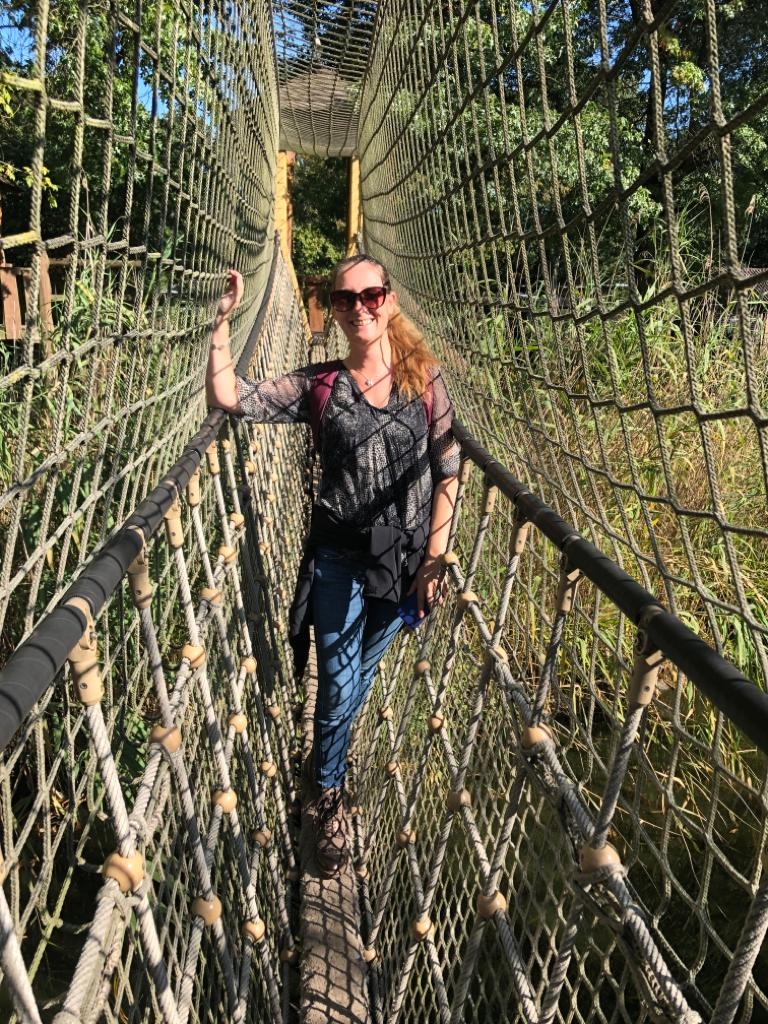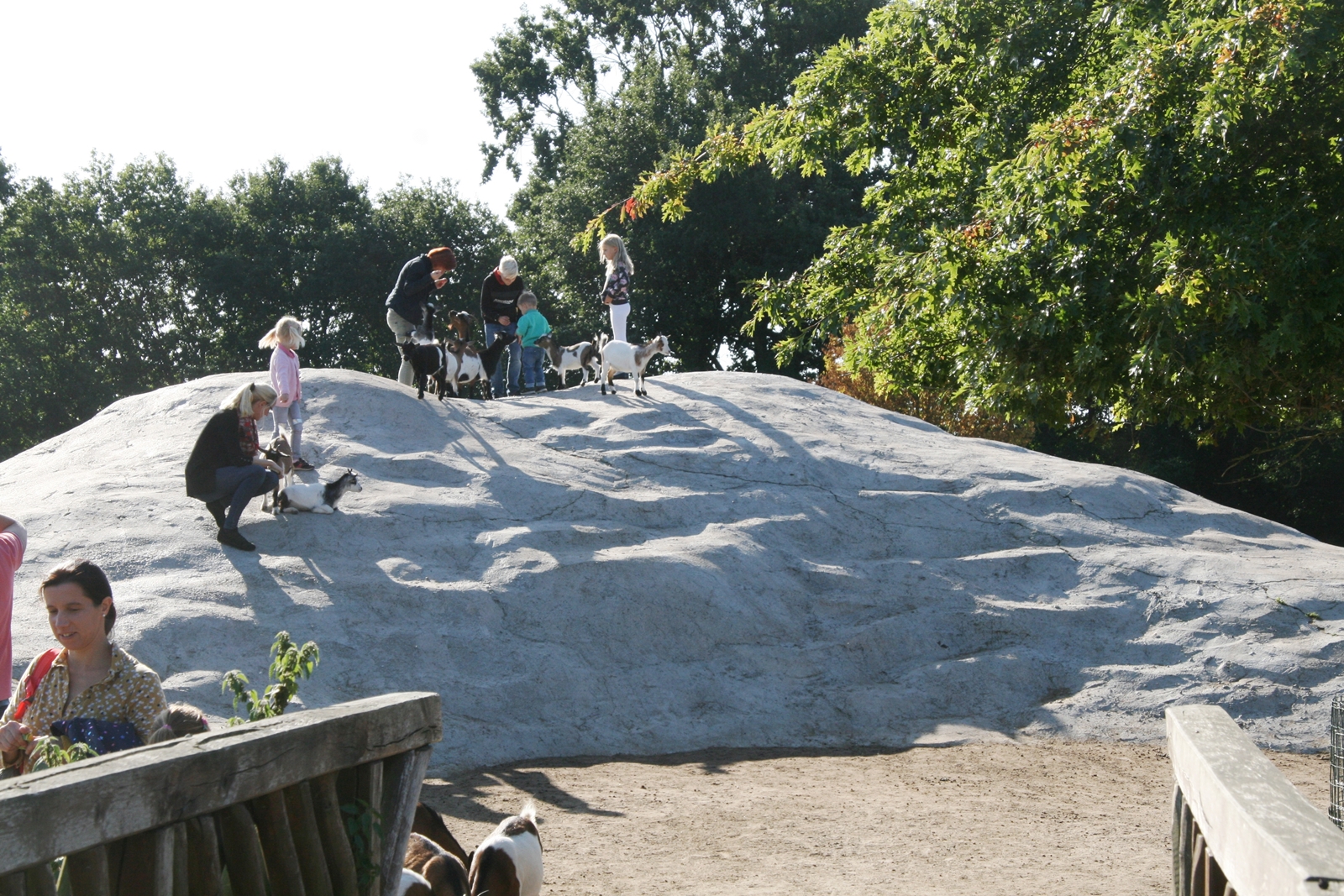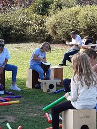 Eine Mitmachaktion war auch das Trommeln auf verschiedenen Instrumenten, es machte ihnen auch offensichtlich Spaß, nicht nur Ziegen zu streicheln. Dana Becker animierte sie zu einer Kletterpartie auf der "Hängebrücke".