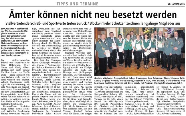 Bericht der SULINGER KREISZEITUNG vom 28. Januar 2016