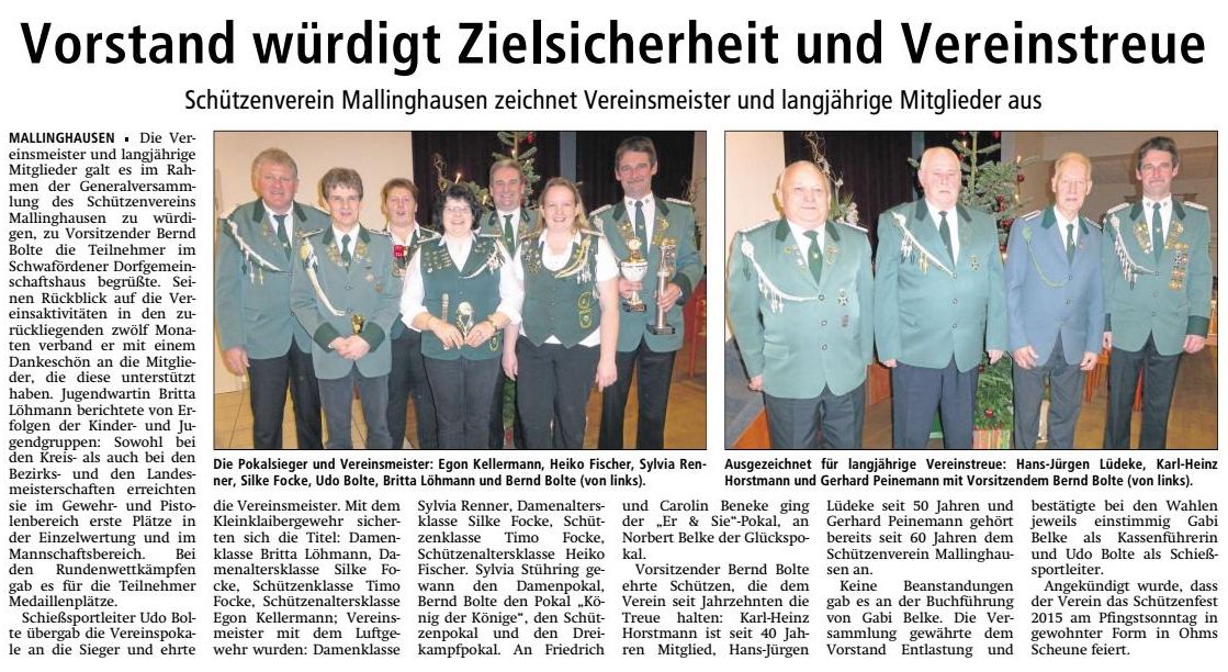 Bericht der SULINGER KREISZEITUNG vom 22. Dezember 2014