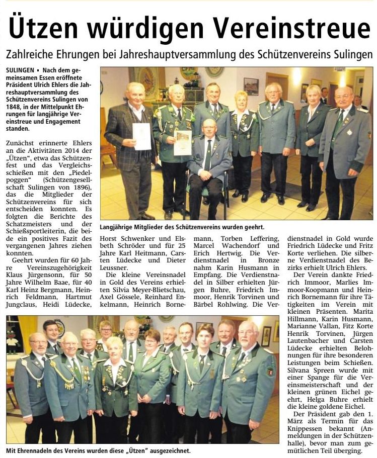 Bericht der SULINGER KREISZEITUNG vom 14. Februar 2015
