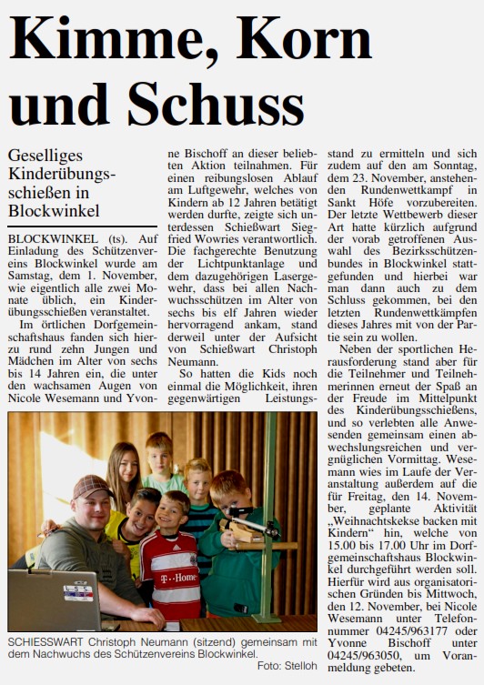 Siegfried Wowries und Christop Neumann waren für die fachgerechte Benutzung der Sportgeräte zuständig. Die Lichtpunktschützen trainierten für den 2. Durchgang Rundenwettkampf Lichtpunkt am 23. November in Sankt-Hülfe. Nicole Wesemann und Yvonne Bischoff hatten "ihre" Kinder zu diesem geselligen Kinderübungsschießen eingeladen.
