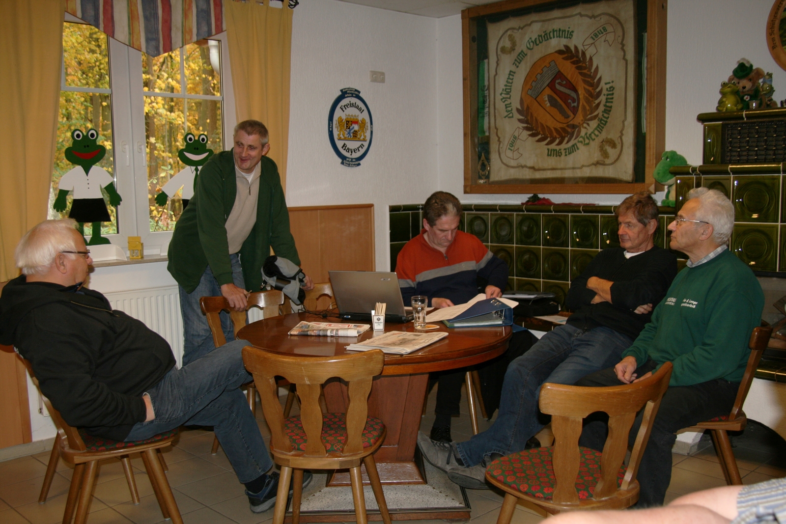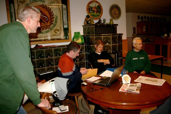 KV III-Sportleiter Udo Bolte (2. von links) mit Laptop und "Helfern" bei der Arbeit.
