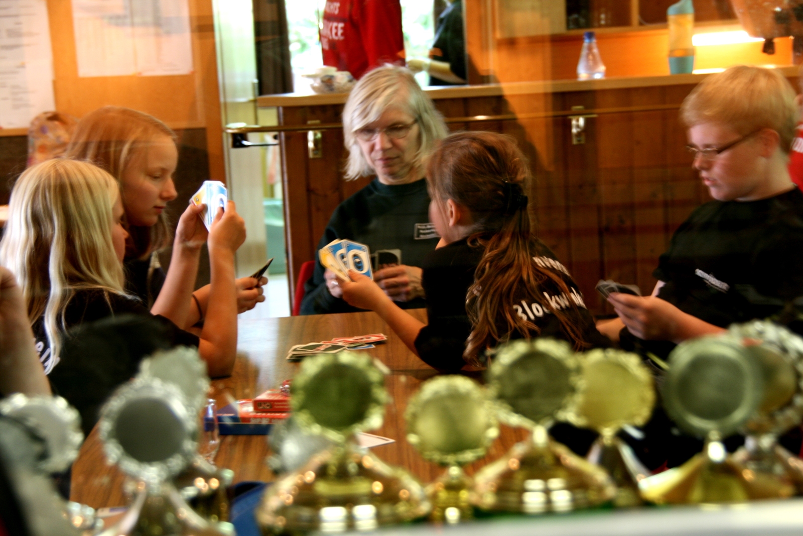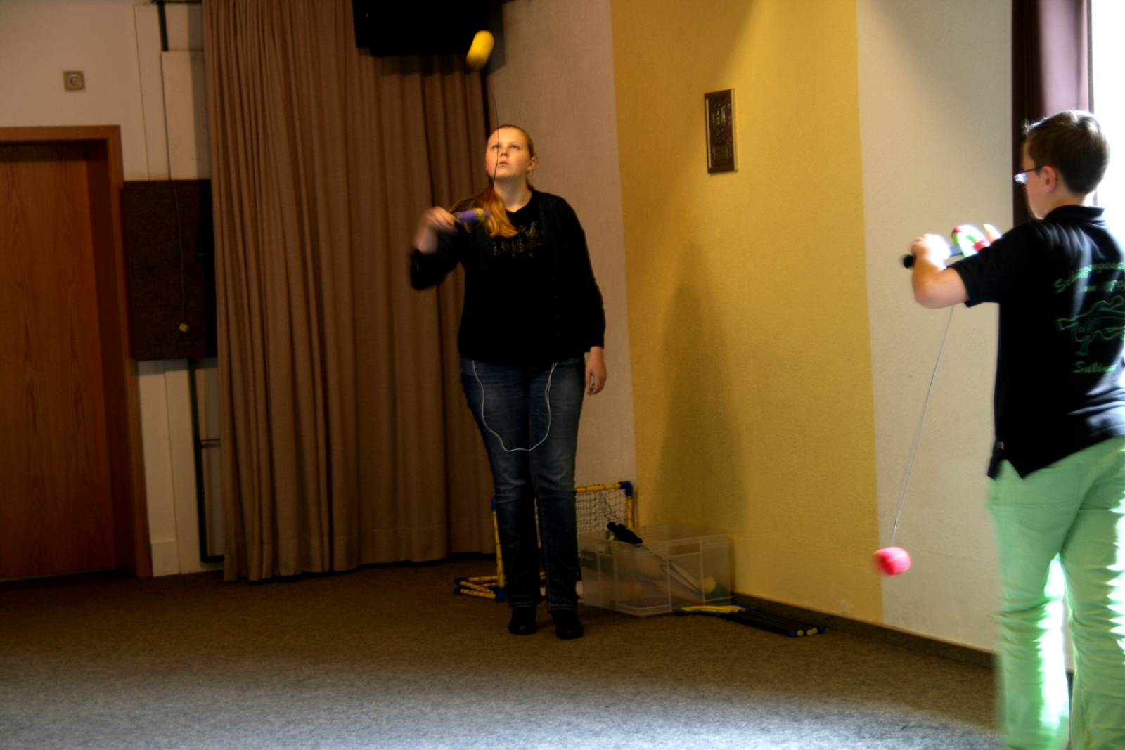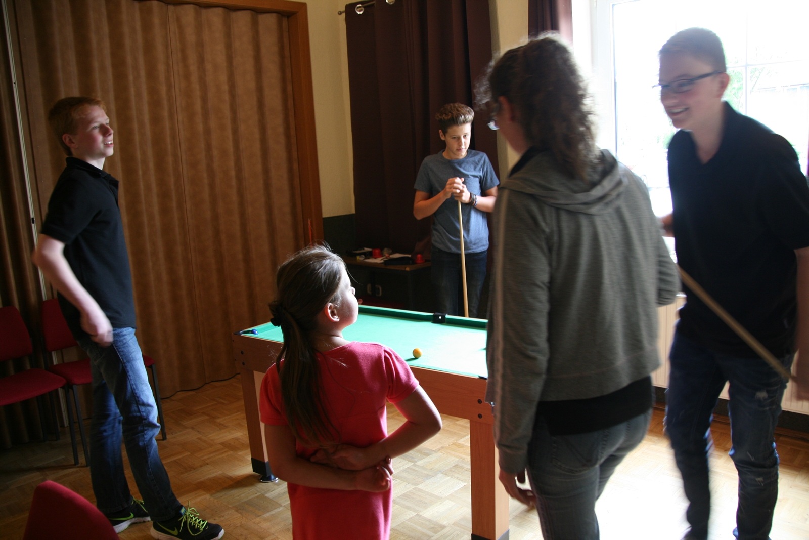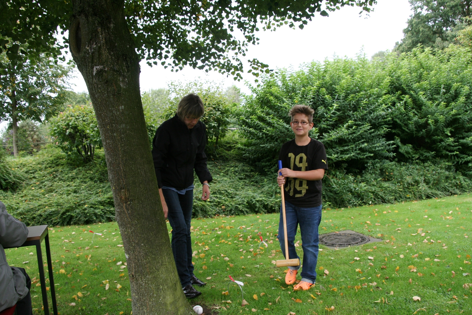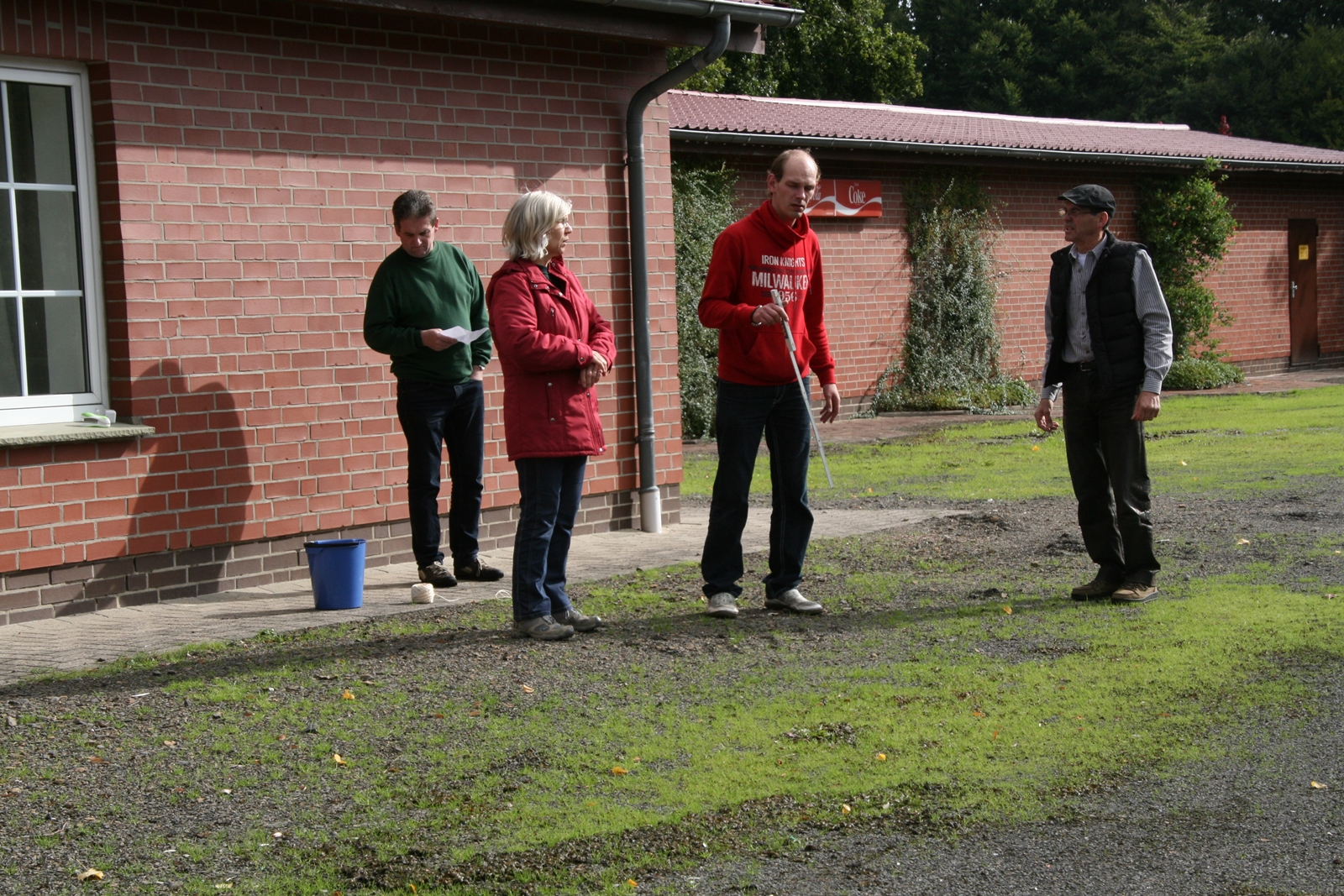 Im Aussenbereich wurden beim Cricket-Spiel die Schläge gezählt, das „Flaschendrehen“ erforderte viel Gefühl, den die Flaschen mussten sich beim Wurf einmal in der Luft “überschlagen“ und nach Möglichkeit auf dem Tisch stehen- oder liegenbleiben. Einen Tennisball mit einem auf dem Rücken befestigten Eimer auffangen, war auch nicht leicht. Das Dosenwerfen erforderte auch ein gewisses Maß an „Zielgenauigkeit“. Die Suche nach bestimmten Buchstaben in der richtigen Reihenfolge, im Aussenbereich, wurde mit „Geduld“ geschafft. Das Mikado-Spiel und der „Heiße Draht“, ist in der Schützenhalle absolviert worden. Unterbrochen wurden die Spiele leider durch ein Regenschauer, die Zeit wurde aber ausgenutzt um zu Essen, „Spaghetti Bolognese“.