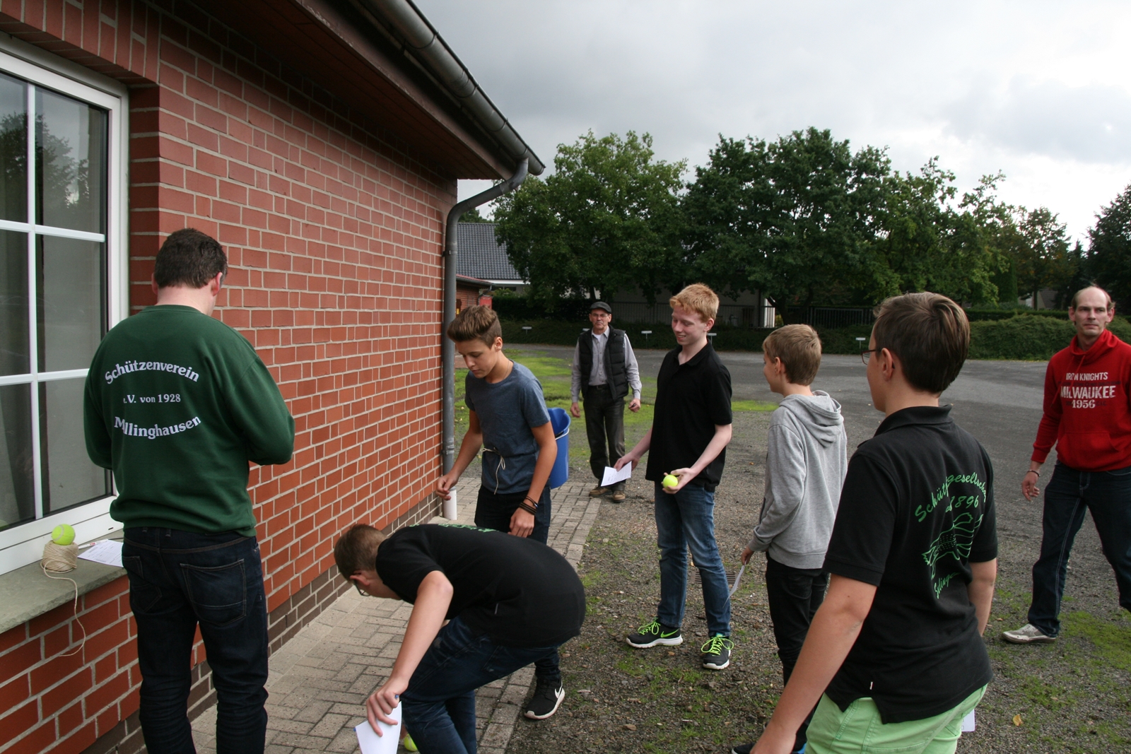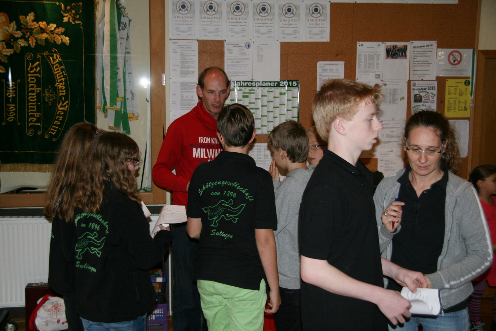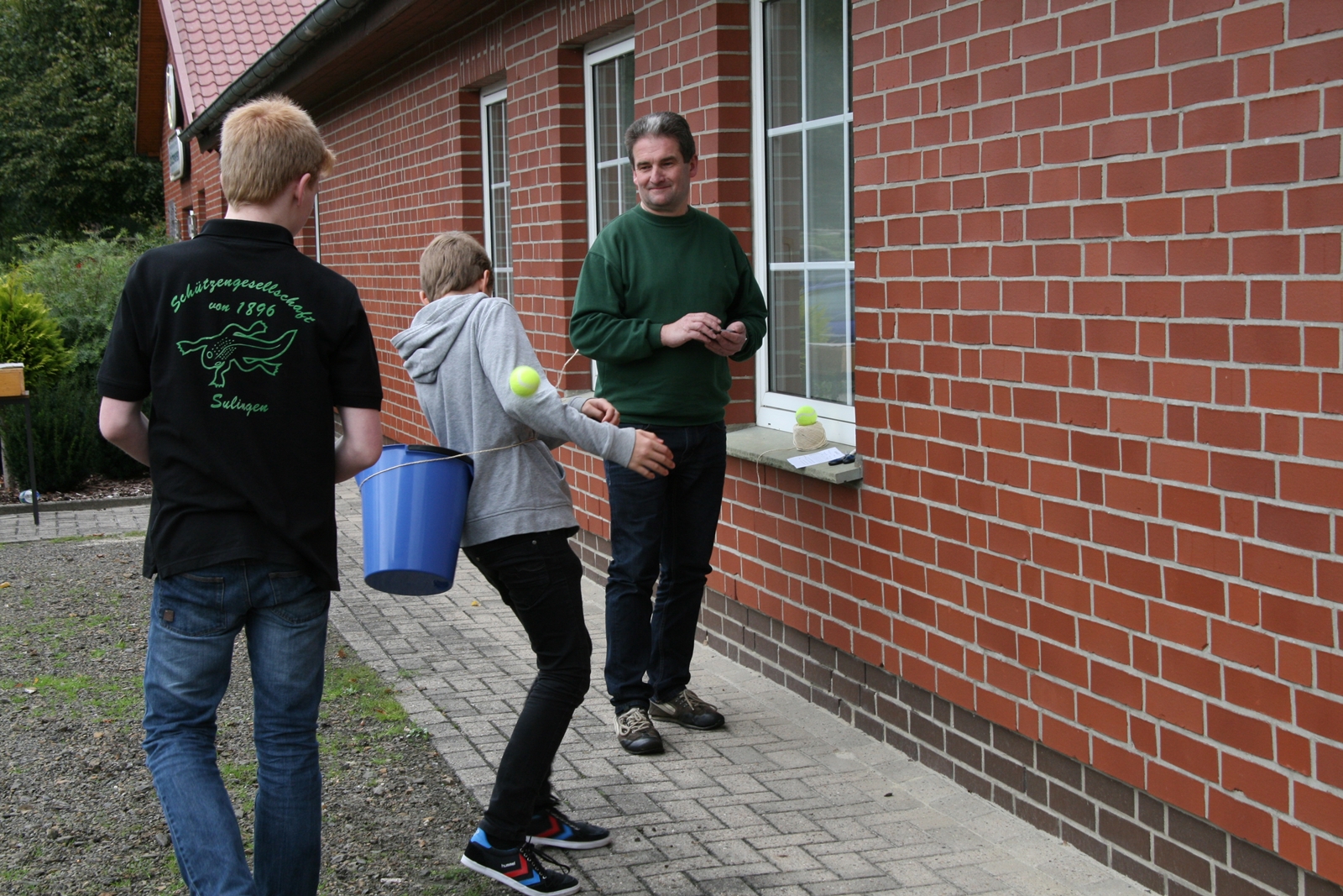 Jugendsportleiter Dominic Lüdeke entschuldigte sich zu Beginn für sein Zuspätkommen und vergab dann gleich die "Laufzettel", erklärte die verschiedenen Spiele. Die Punkte, welche man bei den Spielen erziele, würden in Verbindung mit den Schießergebnissen nachher die Platzierungen ergeben.