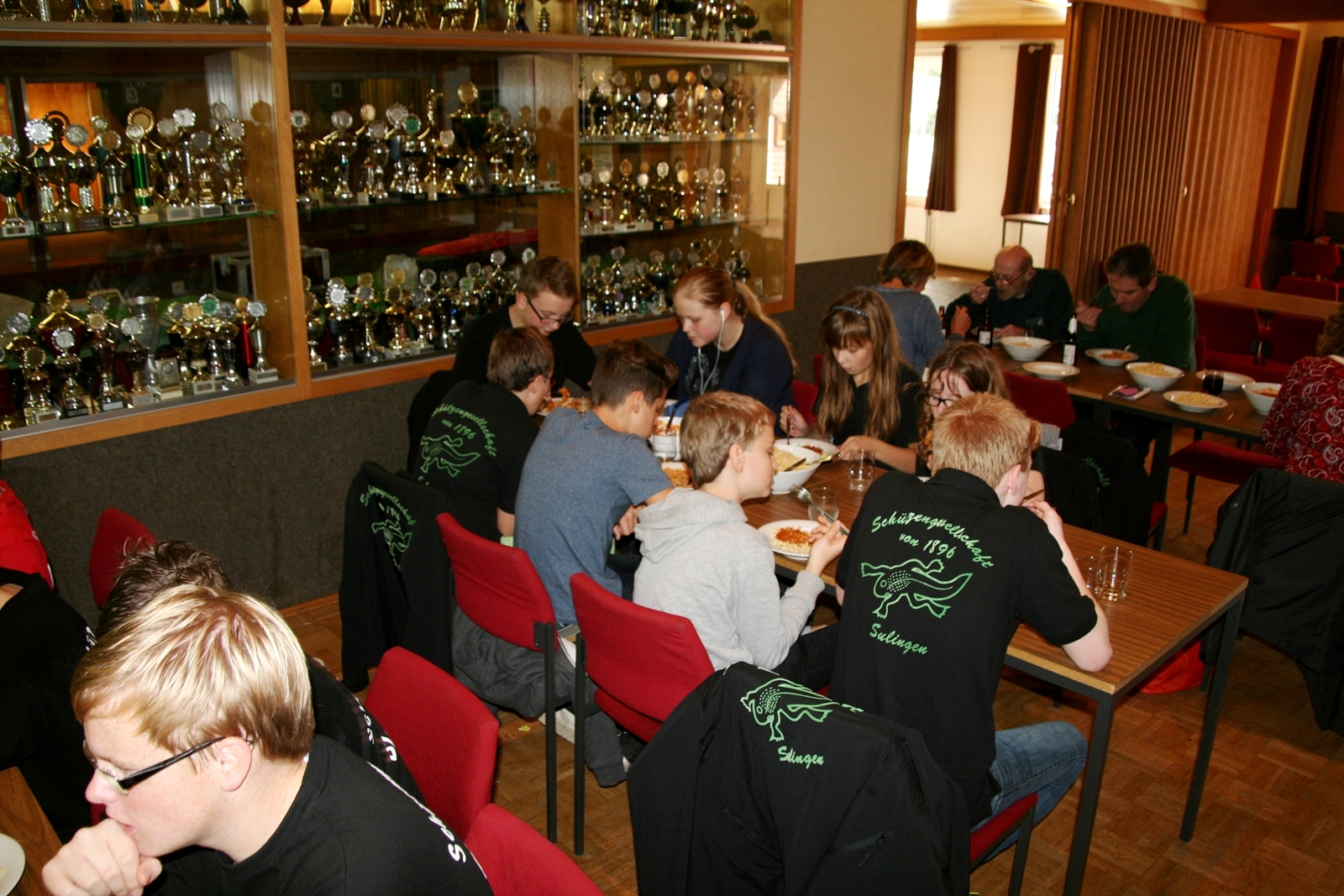 Ab dem Alter von12 bis 20 Jahren, wurde mit dem Luftgewehr geschossen. Obwohl verspätet angefangen, war man passend zum Siegerehrungstermin mit Allem „durch“.