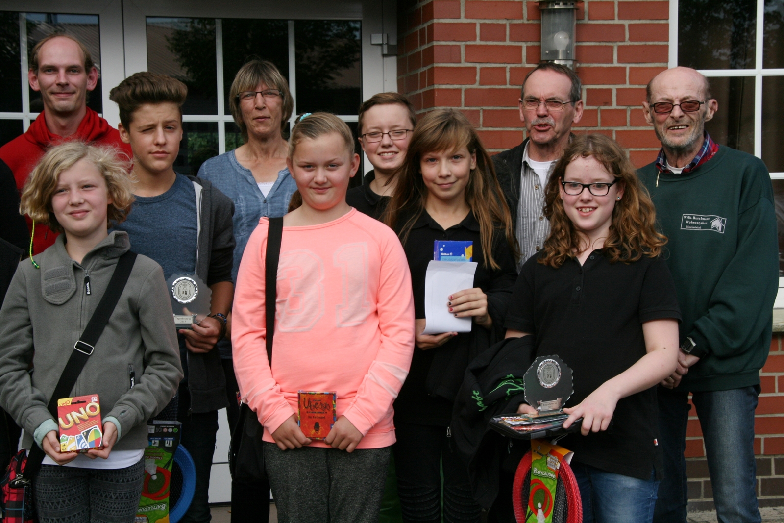 Fast alle Teilnehmer sind auf dem Abschlußfoto, unter ihnen unsere KV-Majestäten Lena und Lukas, sowie Stellv. Bezirkssportleiterin Britta Löhmann, Bezirkspräsident Karl-Friedrich Scharrelmann, Sportleiter Udo Bolte, Jugendsportleiter Dominic Lüdeke, Damensportleiterin Sabine Prochazka, Präsident Dieter Lüdeke, Stellv. Sportleiter Günther Prochazka.(von links)