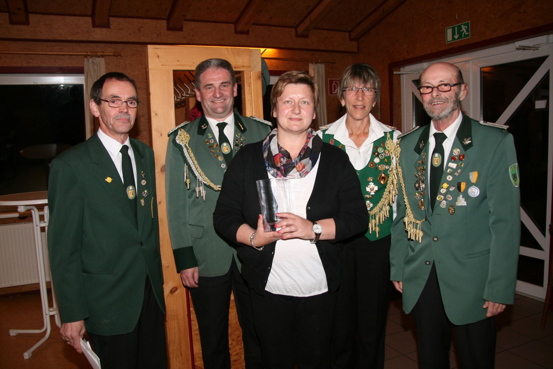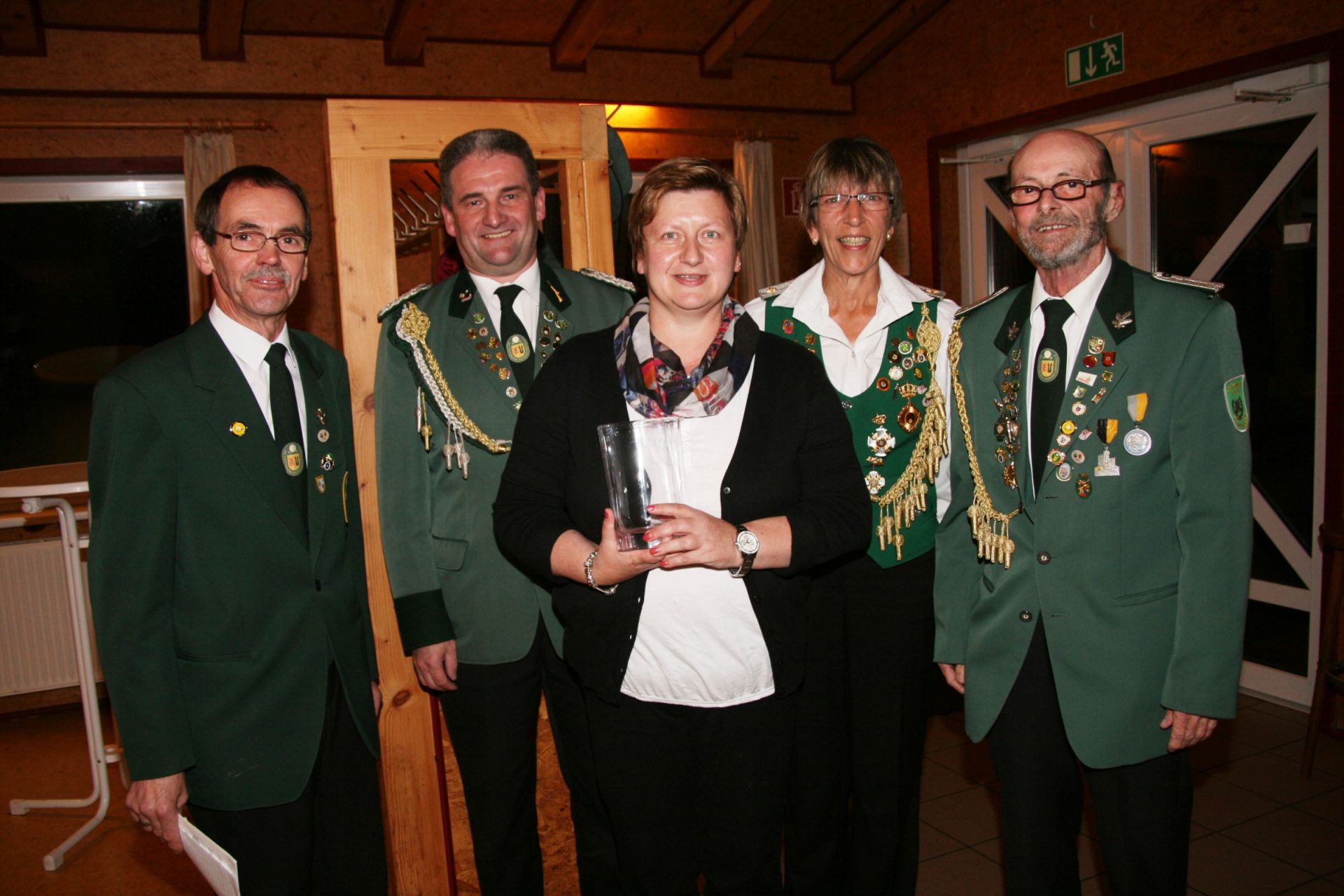Eine überglückliche Hella Denker, Kreiskönigin des Jahres 2014/2015, eingerahmt von Präsident Dieter Lüdeke, Sportleiter Udo Bolte, Sportleiterin Sabine Prochazka und Stellvertretenden Sportleiter Günther Prochazka.