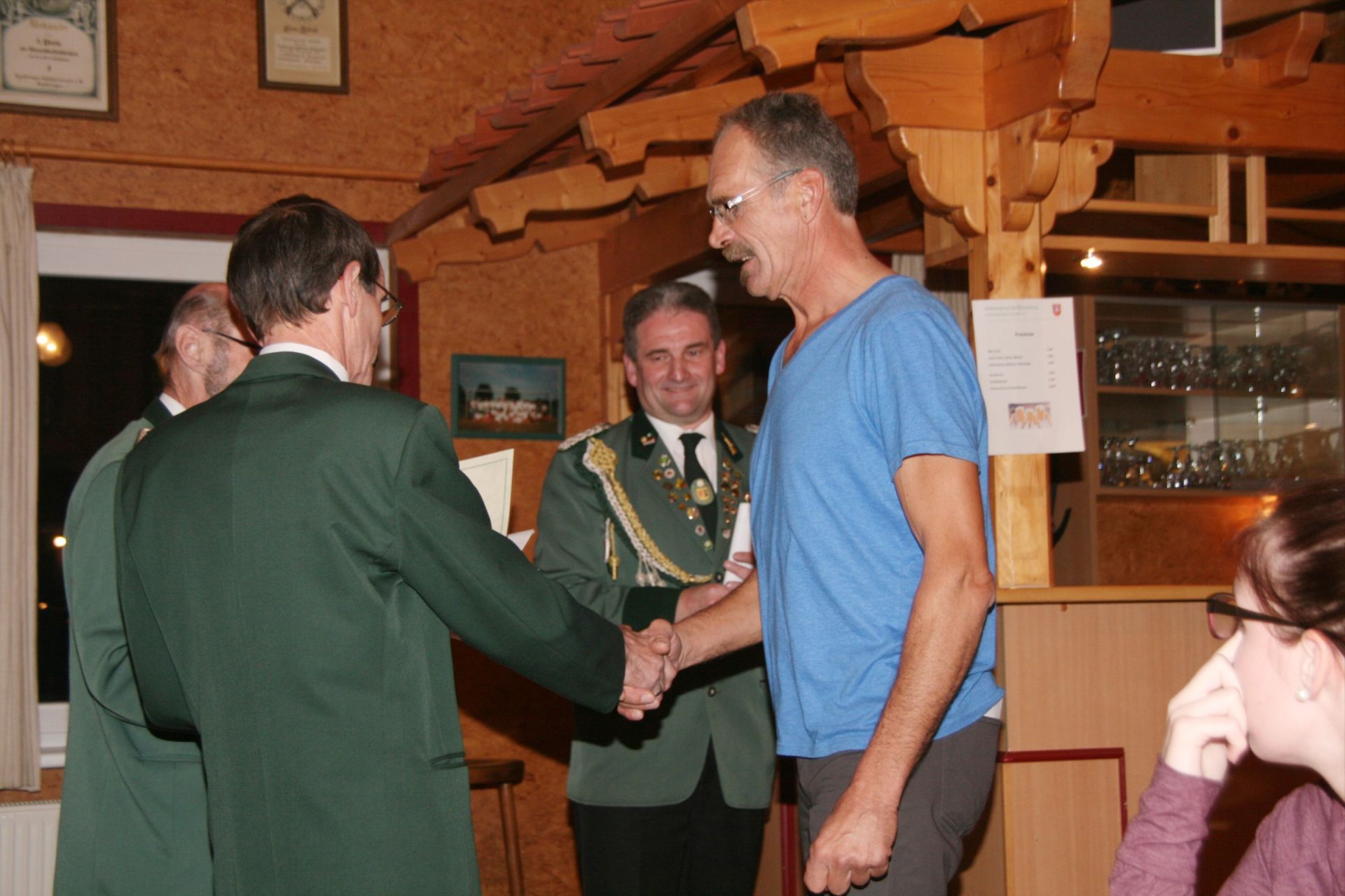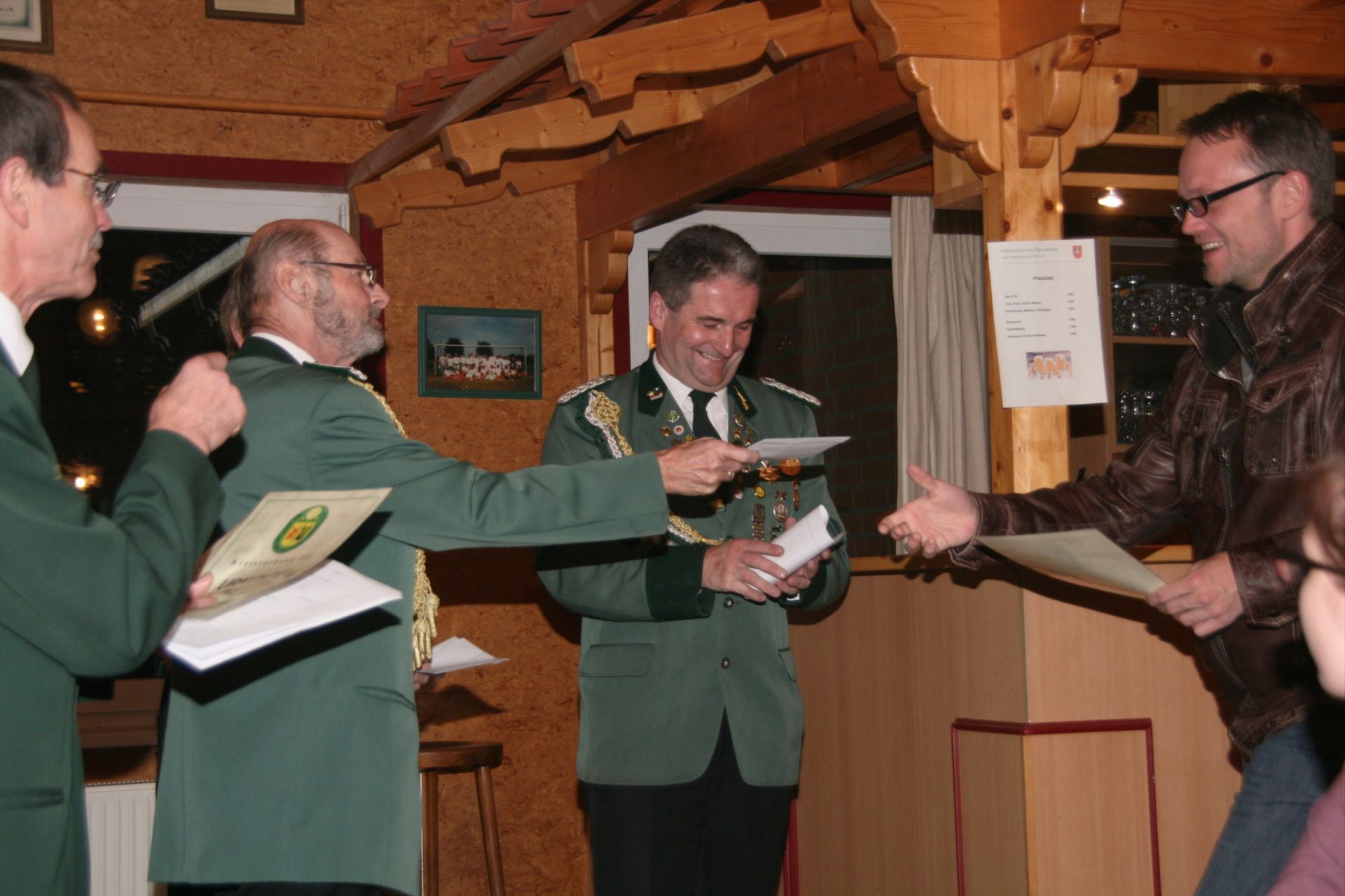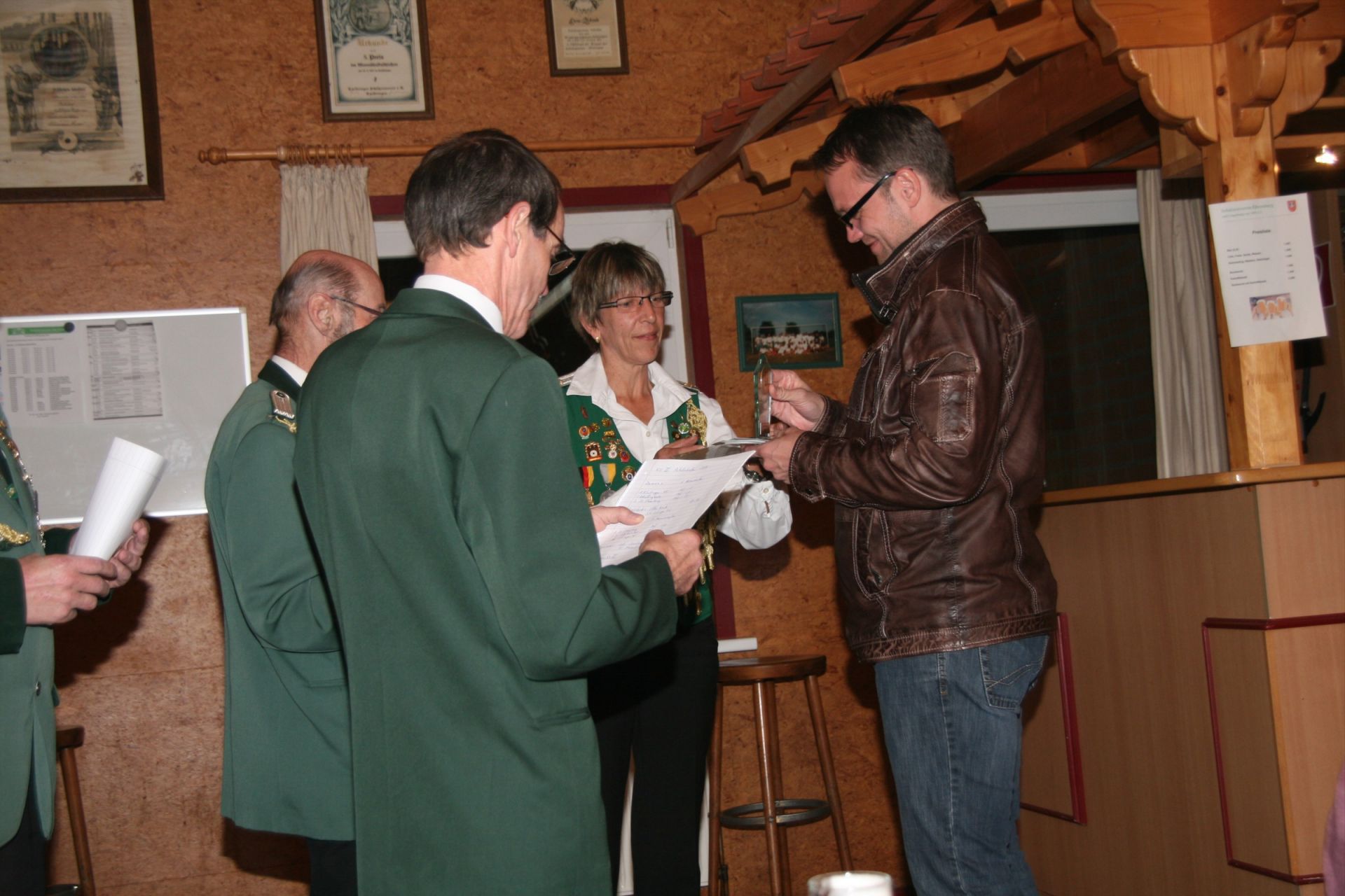Sportleiter Udo Bolte rief dann die Sieger des Preisschießens auf. Sabine und Günther Prochazka überreichten dann die Preisgelder: 1. Udo Jaschkowske SV Ehrenburg 5X30/29, 2. Carsten Lüllmann SG v. 1896 Sulingen 5X30/28, 3. Ellen Winte SG v. 1896 Sulingen 3X30/28, 4. Helmut Riedemann SV Blockwinkel 2X30/29, 5. Hella Denker SV Ehrenburg 2X30/29, 6. Timo Focke SV Mallinghausen 2X30/28, 7. Günter Raven SG v. 1896 Sulingen 2X30/27.