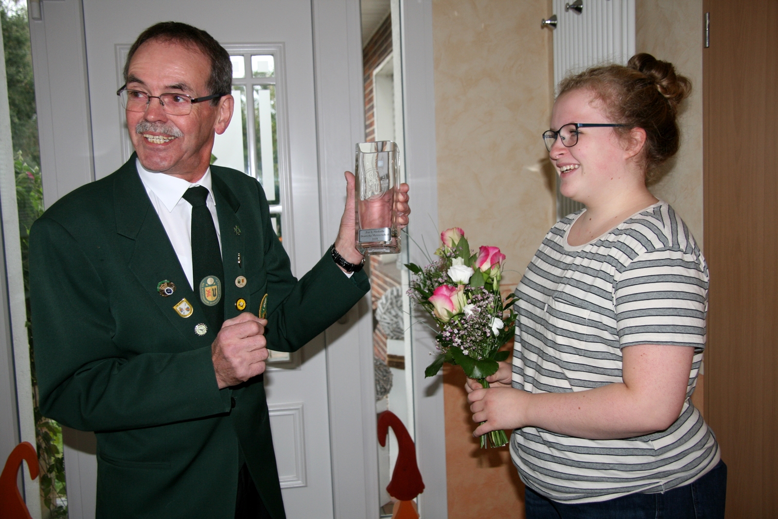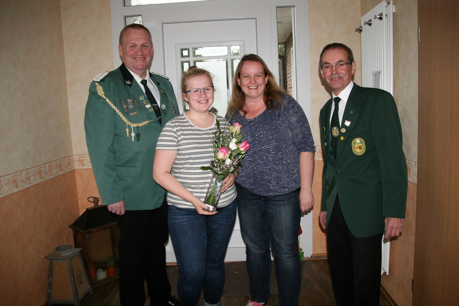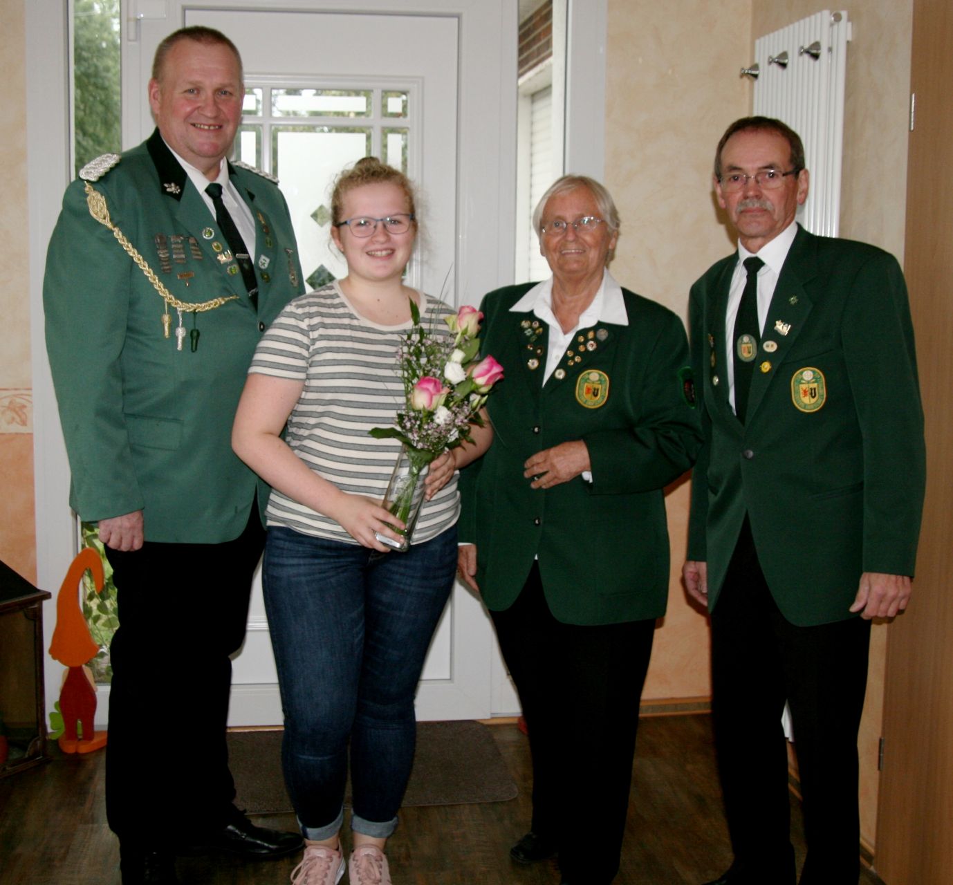 Kreisverbandspräsident Dieter Lüdeke, sein Vize Hartmut Osterloh und Pressewartin Marianne Vallan überraschten Lena Löhmann (Mutter Britta war eingeweiht), um ihr zur 1. Deutschen Meisterschaftsmedaille im Namen des Kreisverbandes III herzlich zu gratulieren.