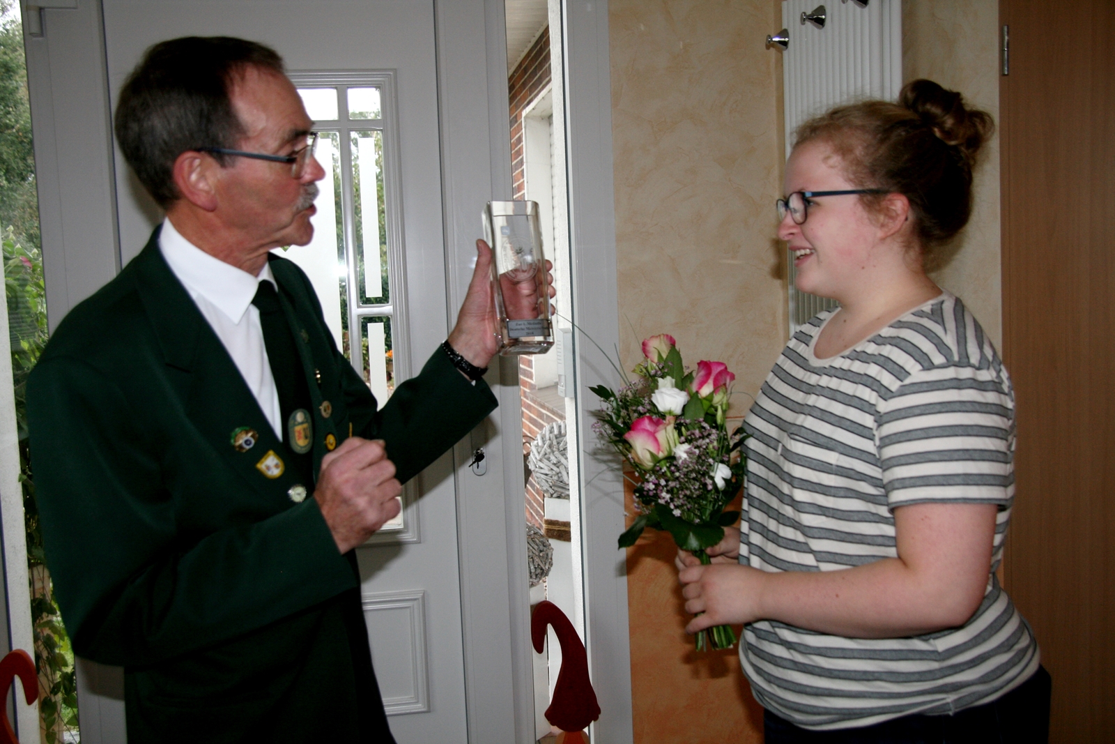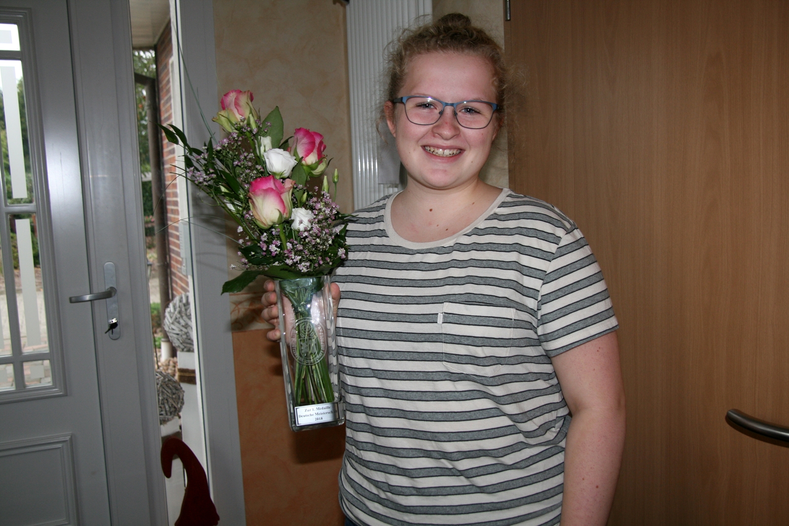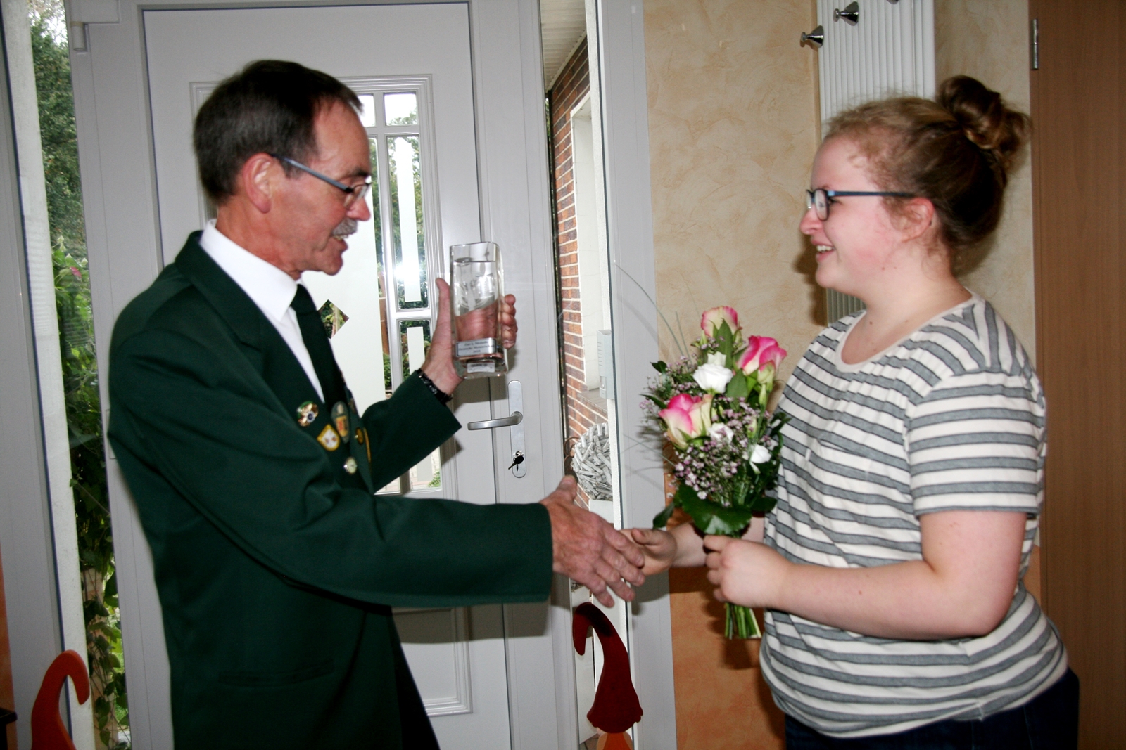Kreisverbandspräsident Dieter Lüdeke, sein Vize Hartmut Osterloh und Pressewartin Marianne Vallan überraschten Lena Löhmann (Mutter Britta war eingeweiht), um ihr zur 1. Deutschen Meisterschaftsmedaille im Namen des Kreisverbandes III herzlich zu gratulieren.