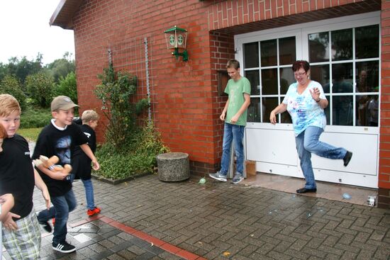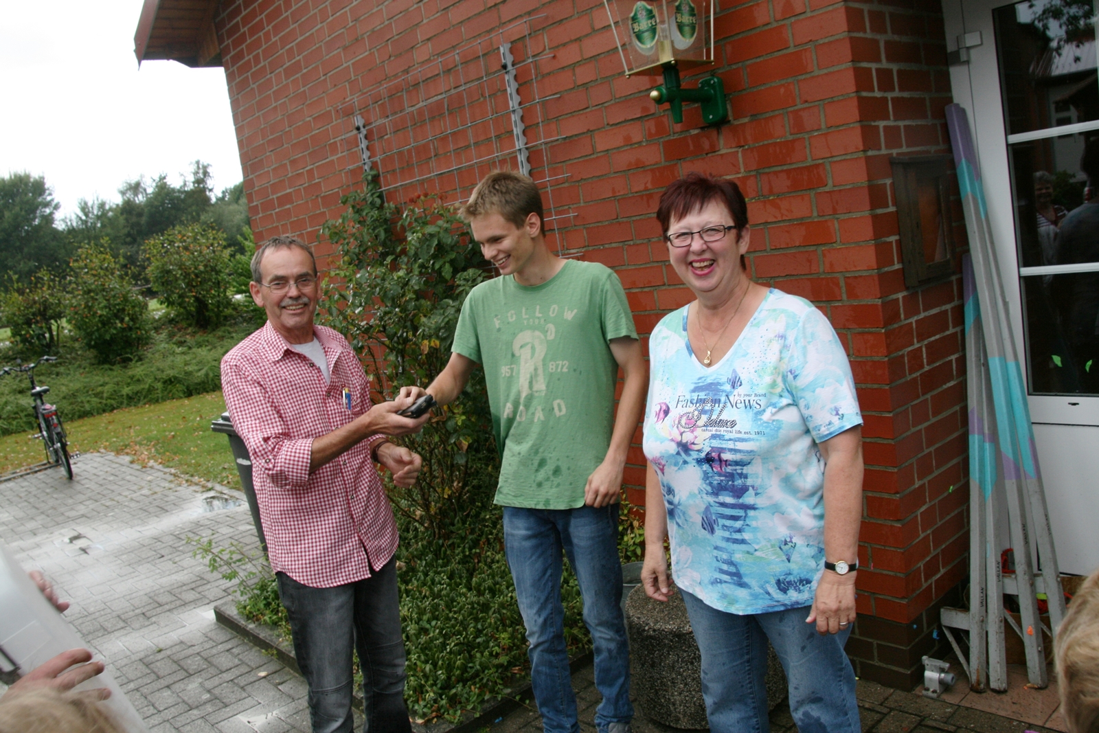 Eine besondere Überraschung gab es zum Abschluß für die „Neuen“ im Kreisverbandsvorstand Jonas Ehlers und Marita Hillmann, wie schon Tradition, wurden sie „getauft“. Die Kinder bewarfen sie zur Freude aller mit „Wasserbomben“.