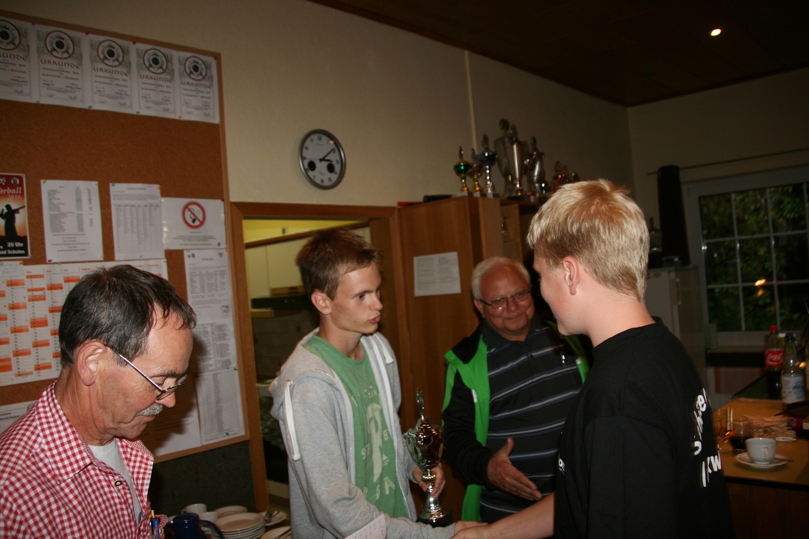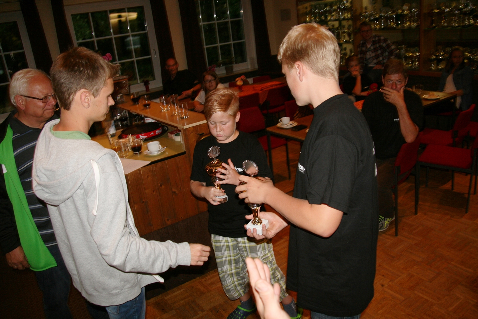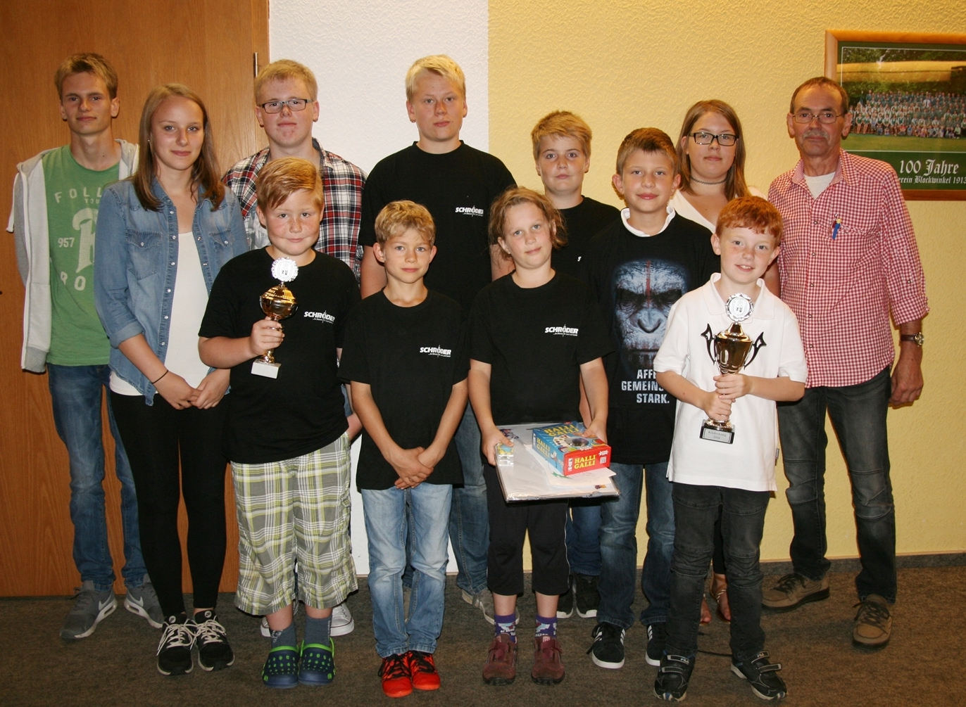 Jonas Ehlers übernahm dann den Part der Siegerehrung der Spiele. An den Spielen beteiligten sich in der Altersgruppe von 6 bis 14 Jahren acht Kinder aus den Vereinen Blockwinkel, Mallinghausen und Sulingen, mit Geschick und Ausdauer meisterten sie die Spiele die da waren: „Kegeln“, „Klöterbahn“, „Tennisbälle“, “Hütchen“, „Stromkreis“ und „Golfspiel“. Bei diesen Spielen wurden die Punkte gesammelt und addiert. Die Reihenfolge der Besten: 1. wurden Tim Bischoff und Paul Stein vom SV Blockwinkel; 2. Merle Beneke ebenfalls SV Blockwinkel; 3. Jannis Häbel Sulingen 1848; 4. Yasmin Nuxoll, Jonas Bischoff, alle SV Blockwinkel; 5. Erik Heitmann Sulingen 1848; 7. Marlon Wesemann, 8. Malte Wesemann beide SV Blockwinkel. Alle Teilnehmer durften sich, je nach Platzierung, einen Sachpreis aussuchen.