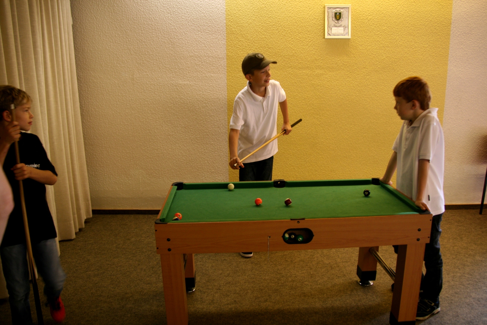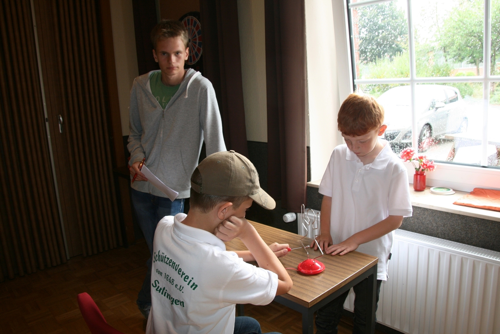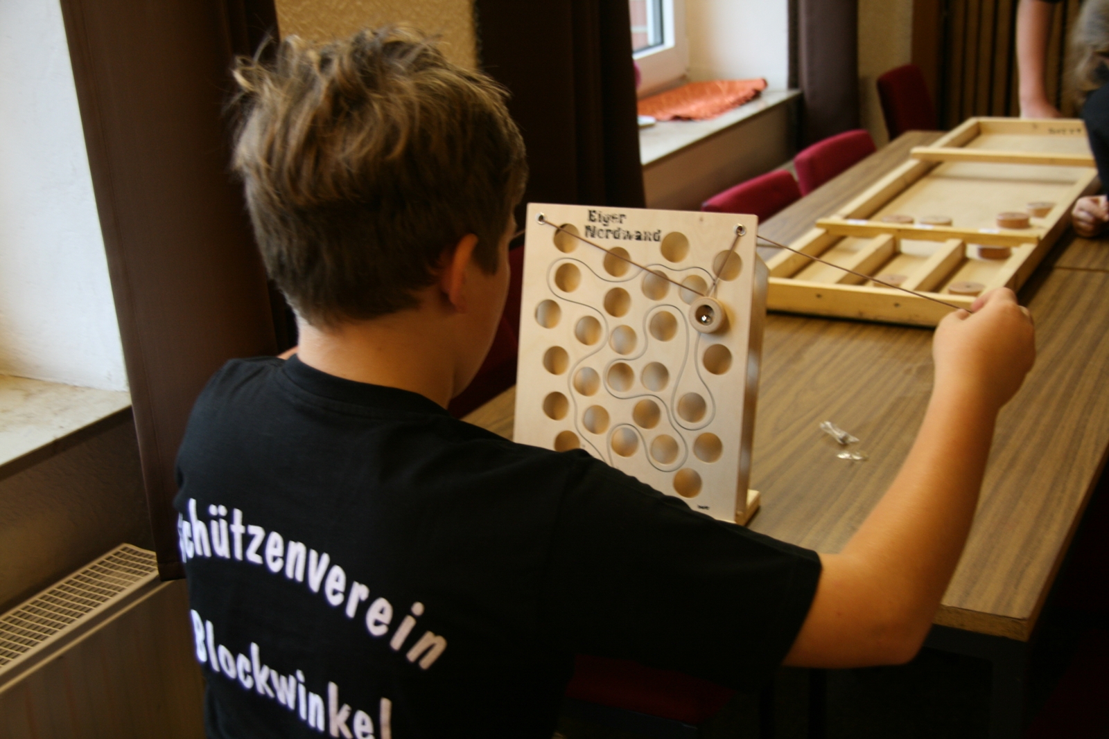 Um evtl. „Wartezeiten“ zu überbrücken konnten sich die Kinder mit „Tischbillard“, Kartenspielen, Malen oder auch, wenn es Trocken war, das „Stelzenlaufen“ ausprobieren. Die Spiele fanden wegen des Regens alle im Schützenhaus statt. Die „Betreuer“ vom Kreisverband waren Jonas Ehlers, Dieter Lüdeke, Sabine Prochazka, Marita Hillmann, Günter Herzig und Marianne Vallan.