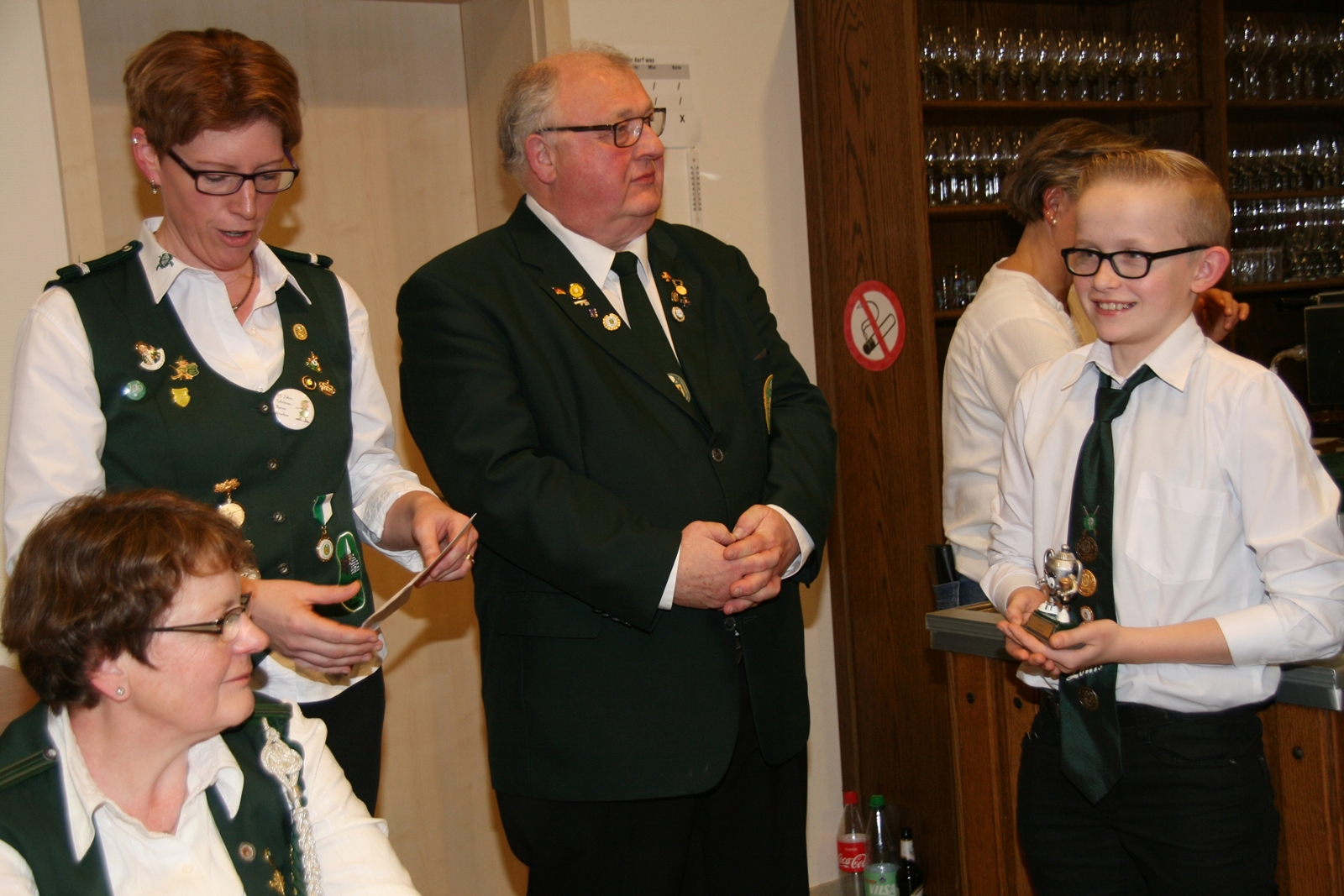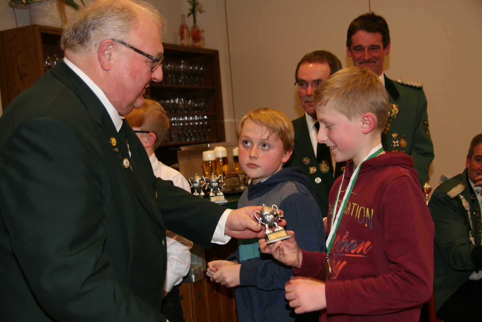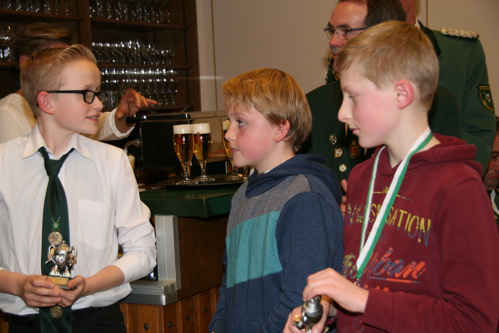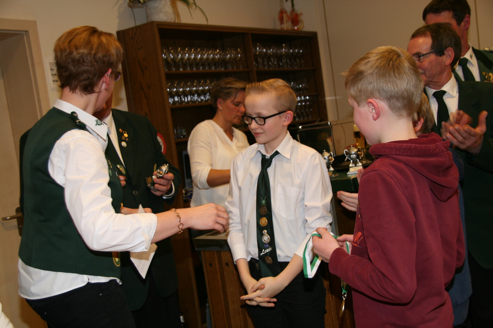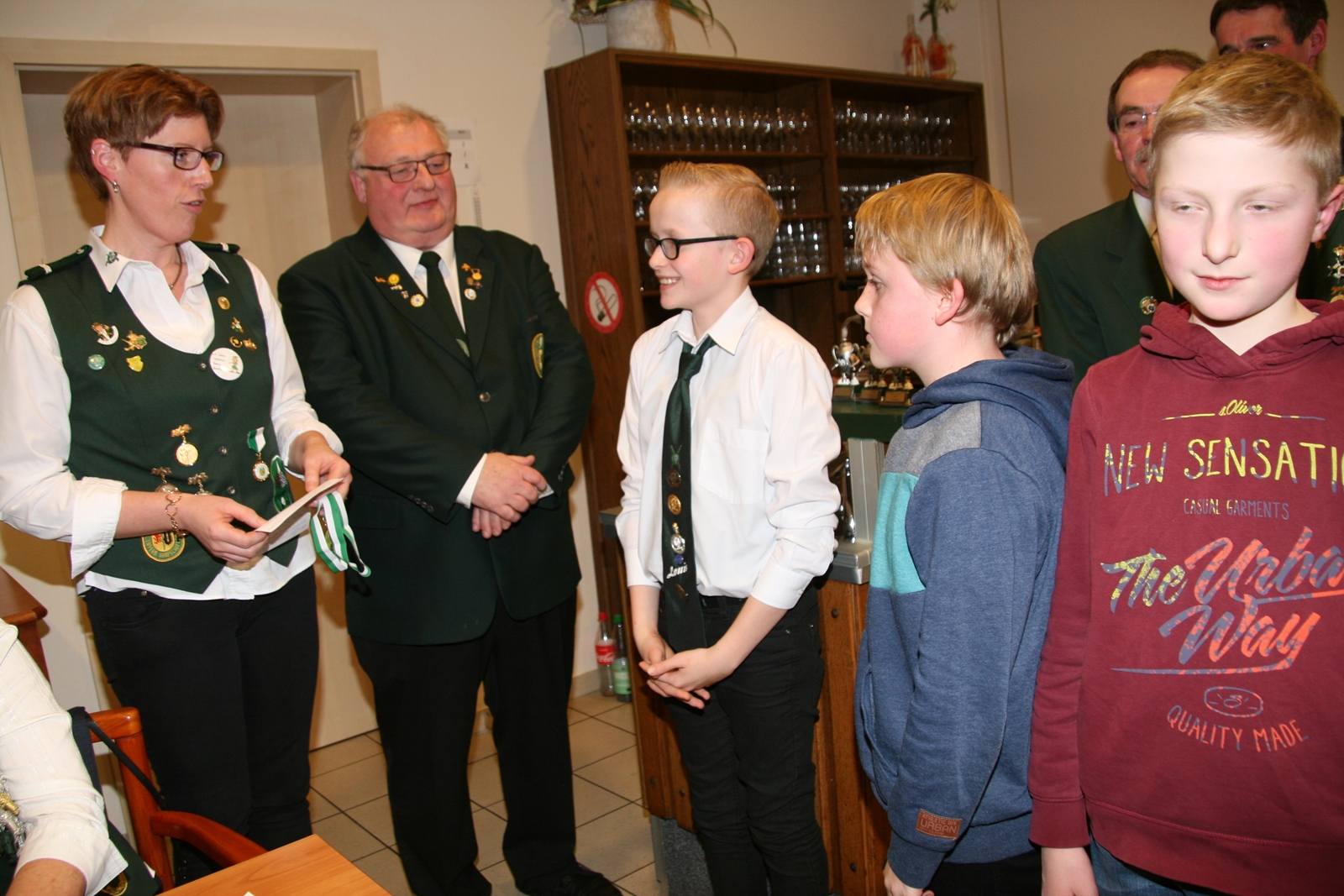 Claudia Reuter begann ihre Laudatio mit einem Rückblick auf die Leistungen der drei jungen Schützen. Jan Thiele, Konstantin Belke und Louis Löhmann bescheinigte sie auch für dieses Jahr eine tolle Steigerung ihrer Leistungen beim Lichtpunktschießen. Erfolgreich nahmen sie an der Kreis-, Bezirks- und Landesverbandsmeisterschaft teil, das Leistungszentrum des Nordwestdeutschen Schützenbundes (NWDSB - LLZ) in Bassum war auch ein gutes „Pflaster“ für sie. Zur Erinnerung: zum Norddeutschland Cup qualifizieren sich nur die besten Lichtpunktschützen aus den Landesverbänden! Es ist schon eine besondere Ehre, überhaupt daran teilnehmen zu dürfen für die noch recht jungen Sportschützen. In diesem Jahr wurden 155 Starts beim 3. Norddeutschland Cup gezählt. Mit der Lichtpunktpistole freihand Schüler B, errang Louis Löhmann eine Goldmedaille und in der gleichen Klasse nahm Jan Thiele die Silbermedaille in Empfang! Konstantin Belke errang mit der Lichtpunktpistole Auflage in der Schülerklasse C eine Goldmedaille. Das ist schon sehr bemerkenswert, bei solch einer großen Konkurrenz auf dem „Treppchen“ zu stehen! Louis und Jan nahmen zudem auch noch am 1. NWDSB Lichtpunkt Target Sprint Kids Cup teil (Biathlon ähnlich), in der Schülerklasse B hatte sich Jan auf den ersten- und Louis auf den dritten Platz „vorgeschoben“!
