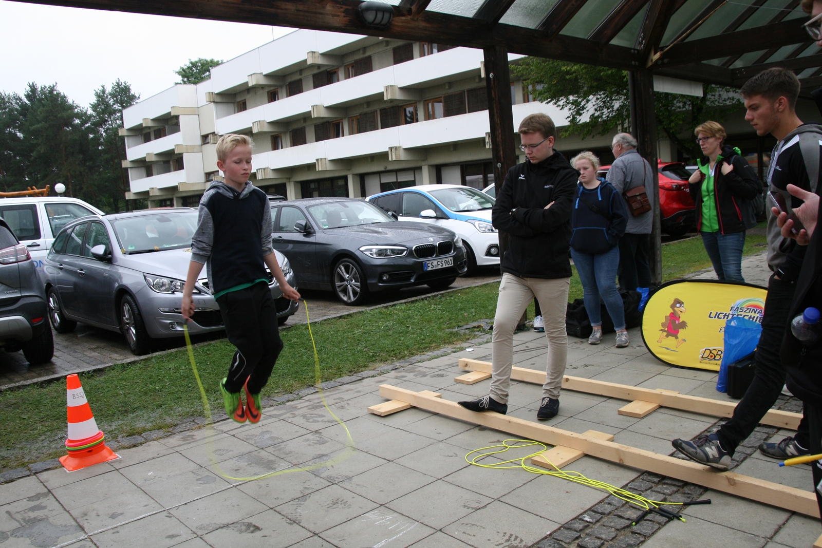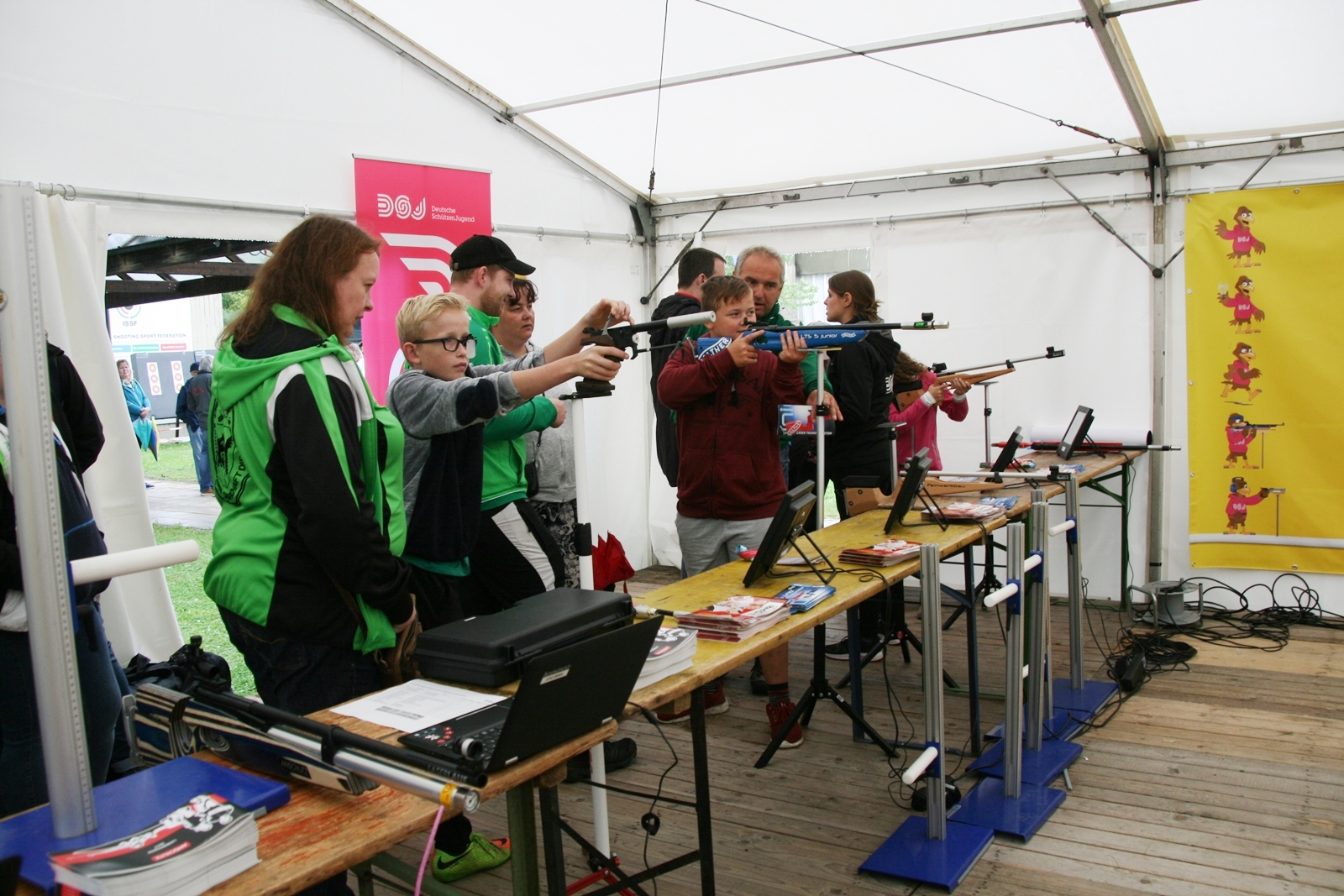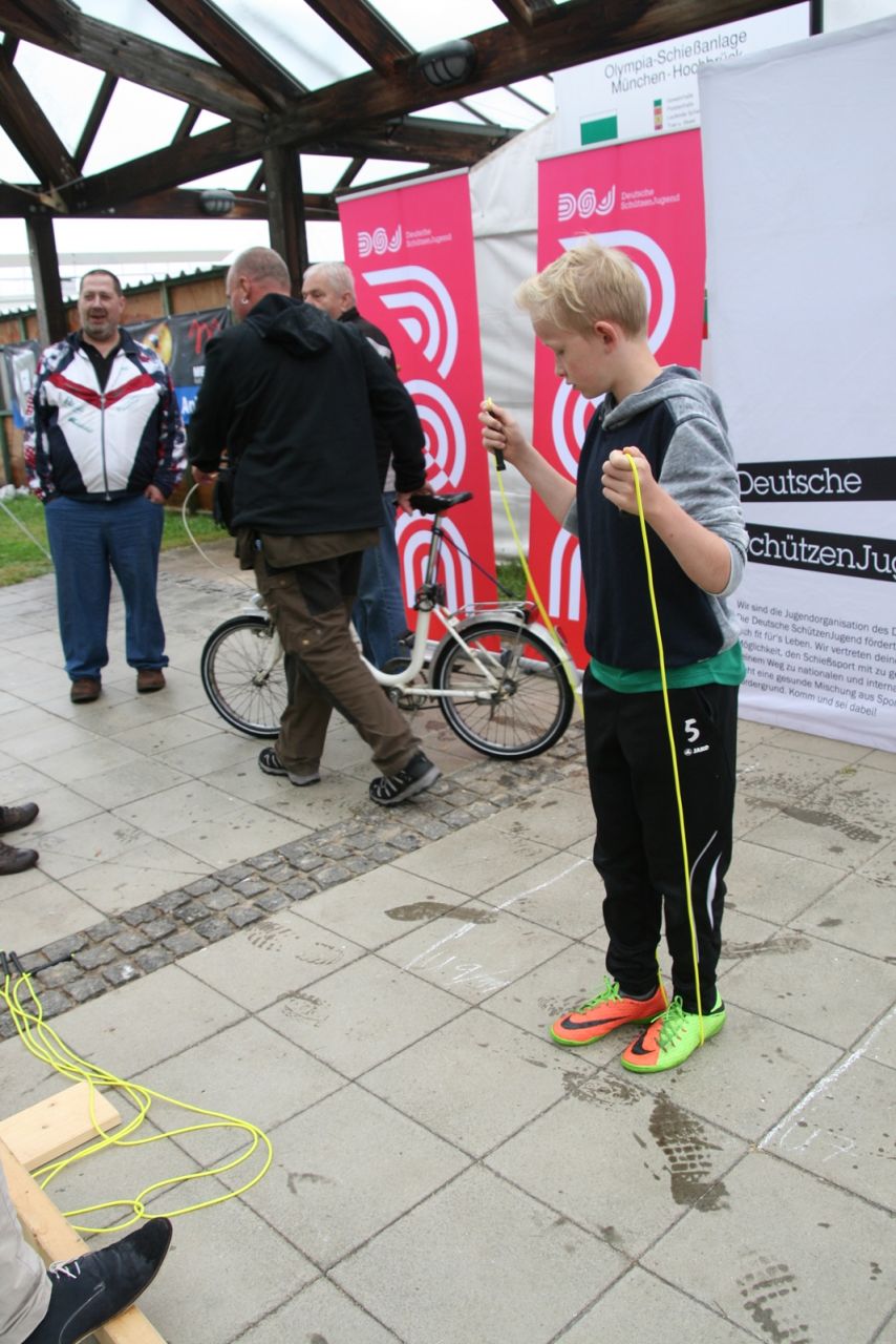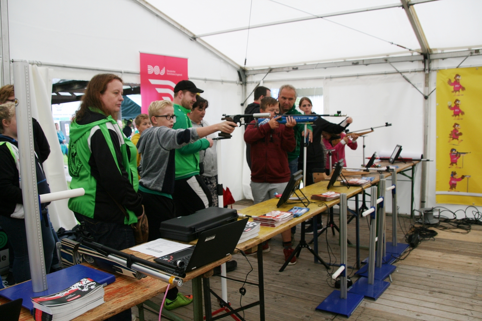 Louis Löhmann hatte am 1. September ab 12:00 Uhr seinen Lichtpunktwettkampf bestritten. Es wurden allgemein-sportliche Disziplinen ausgetragen. Auf das Laufen wurde wegen der regnerischen Witterung verzichtet. So standen den Kindern in den verschiedenen Altersgruppen mehrere Spiele zur Auswahl. Louis wählte Seilspringen, Ringzählwerfen, Puzzlespiel und am Schluß Lichtpunktpistole Auflage. Insgesamt reichten zum Sieg in seiner Altersgruppe U11 276 Punkte. Dafür erhielt er eine Goldmedaille, einen Gutschein und ein Lichtpunktgewehr. Das nicht nur er sich darüber sehr freute, ist klar.