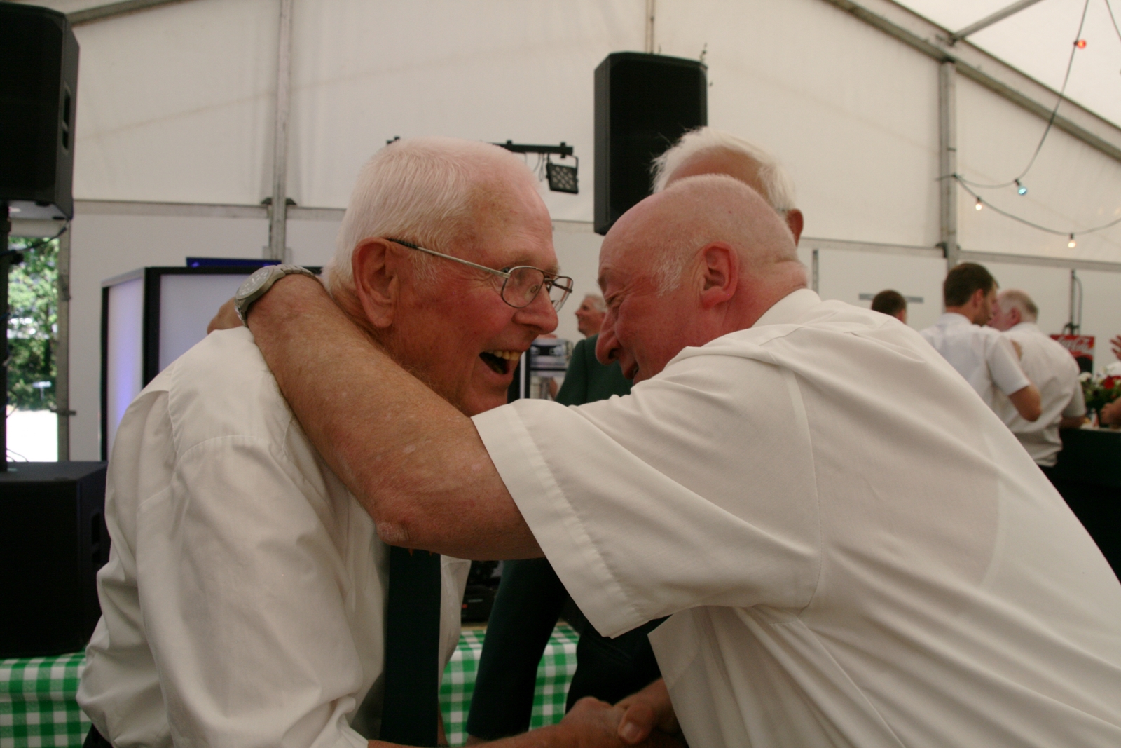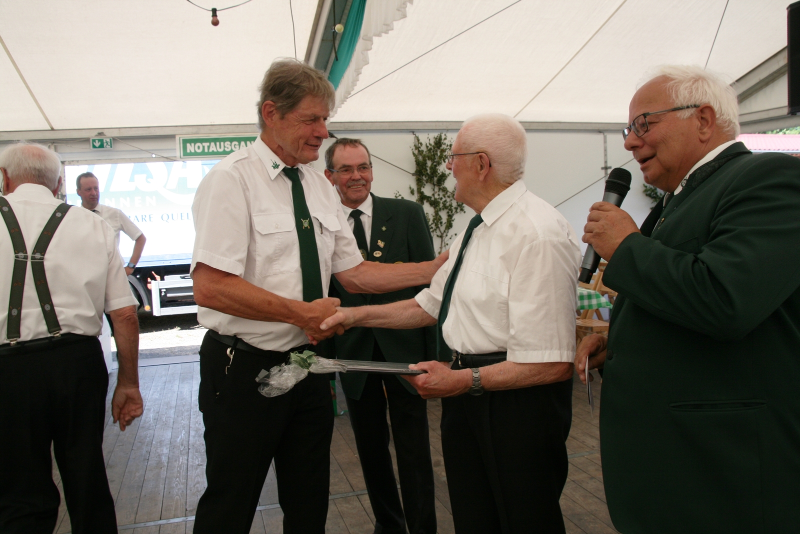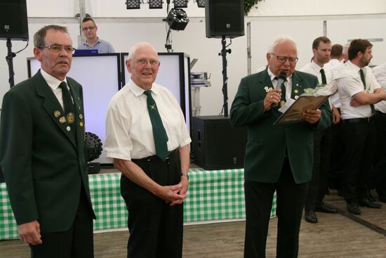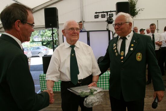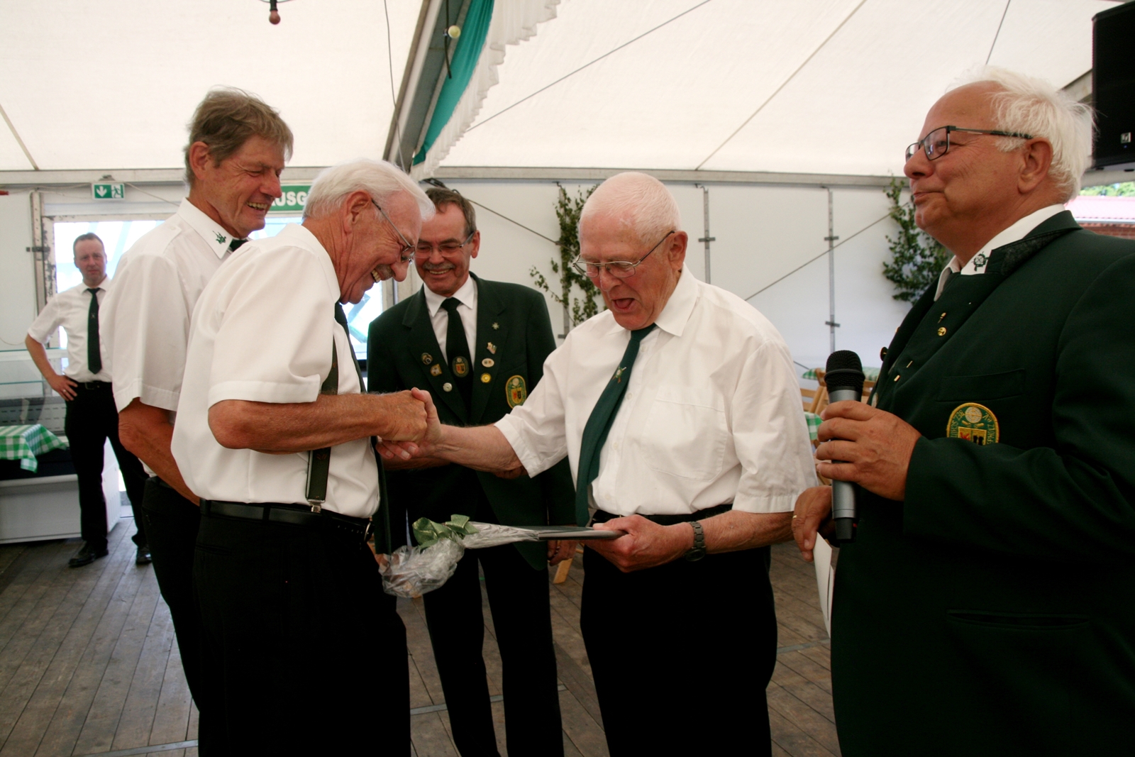 Günter Herzig und Dieter Lüdeke waren die ersten Gratulanten, welche ihm zu dieser Auszeichnung herzlich die Hand schüttelten, viele Schützinnen und Schützen folgten diesem Beispiel. Unter ihnen Vereinspräsident Christoph Neumann, sowie die „alten Vereinspräsidenten“ Horst Schröder und Helmut Riedemann.