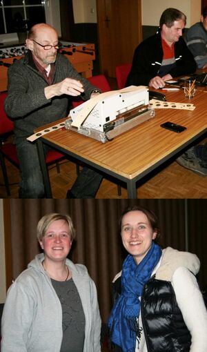 Das "Kombifoto" zeigt Aufnahmen aus dem vergangenen Jahr. Günther Prochazka und Udo Bolte bei der Auswertung der Scheibenbänder, sowie Heike Meyer vom SV Sulingen 48 und Ellen Winte von der SG Sulingen 96. Die beiden haben sich schon im Vorjahr einen "heißen" Kampf geliefert (waren Letzte auf Rang 8 und 9), das haben sie aber in diesem Jahr "richtiggestellt": Ellen wurde mit 855 Ringen Zweite und Heike wurde mit 840 Ringen Dritte. Glückwunsch!