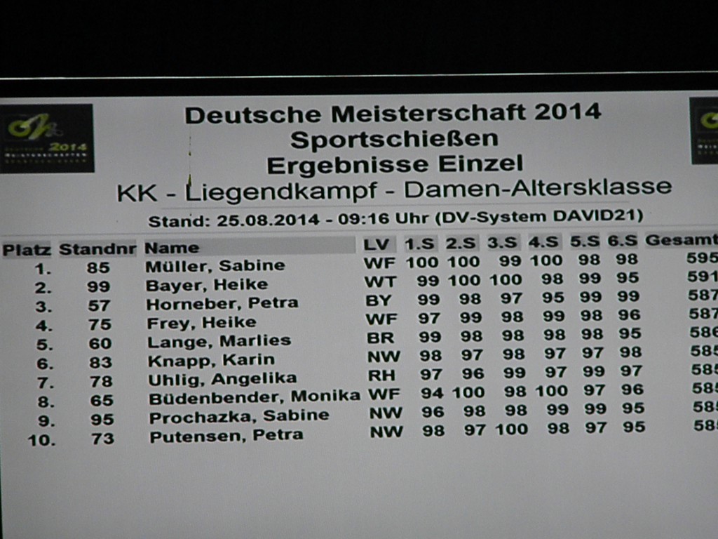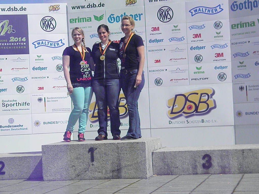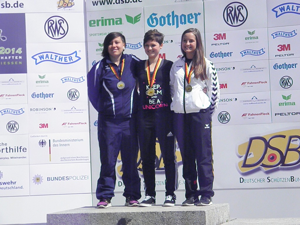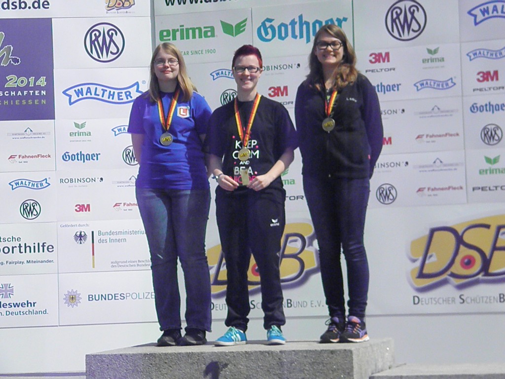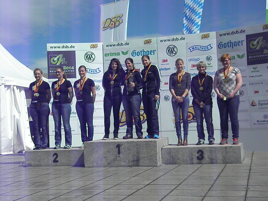 Die Damen des SV Echem waren hier eigentlich eine Bank auf eine Medaille. Sie machten dann auch das „Ding“ perfekt. Mit 1751 Ringen holten Karin Knapp, Petra Putensen und Anja Linn Silber in der Teamwertung. Gleich 2 Damen aus dem Team waren zu dem noch unter den ersten Zehn – Karin Knapp mit 585 Ringen auf Rang 6 und Petra Putensen auf Platz 10. Bei ihrer ersten DM-Teilnahme überraschte Sabine Prochazka vom SV Blockwinkel mit ebenfalls 585 Ringen auf Rang 9!