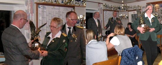 Dirk Rauschkolb überreicht als Bürgermeister der Stadt Sulingen den „Adler“ an Herta Ehlers...mit einem neuangebrachten Sockel für weitere Namensschilder der künftigen "Tophäenjäger" aus der Stadt Sulingen. Gestiftet und angebracht wurde er vom letztjährigen Adlergewinner Rainer Gaumann als König vom SV Groß Lessen.